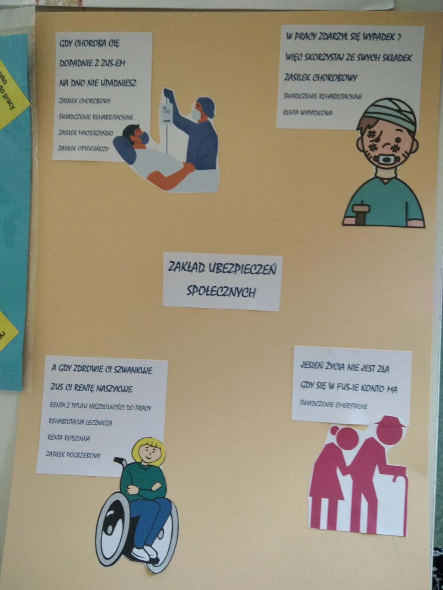 Wychodząc naprzeciw oczekiwaniom współczesnego świata, który oczekuje od młodego człowieka postawy aktywnego obywatela, panie B. Woźniak i A. Smarz zdecydowały się na realizację projektu, którego celem było upowszechnienie wiedzy o ubezpieczeniach społecznych. „Projekt z ZUS” przeprowadzony został przez koordynatorki w klasach VIlla, VIIIb i Vb.