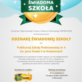 Z dumą dzielimy się naszym sukcesem! Nasza szkoła otrzymała Odznakę Świadomej Szkoły – to dla nas ogromne wyróżnienie i motywacja do dalszych działań na rzecz zdrowia naszych uczniów. Udział w programie „Zdrowa Klasa” był...