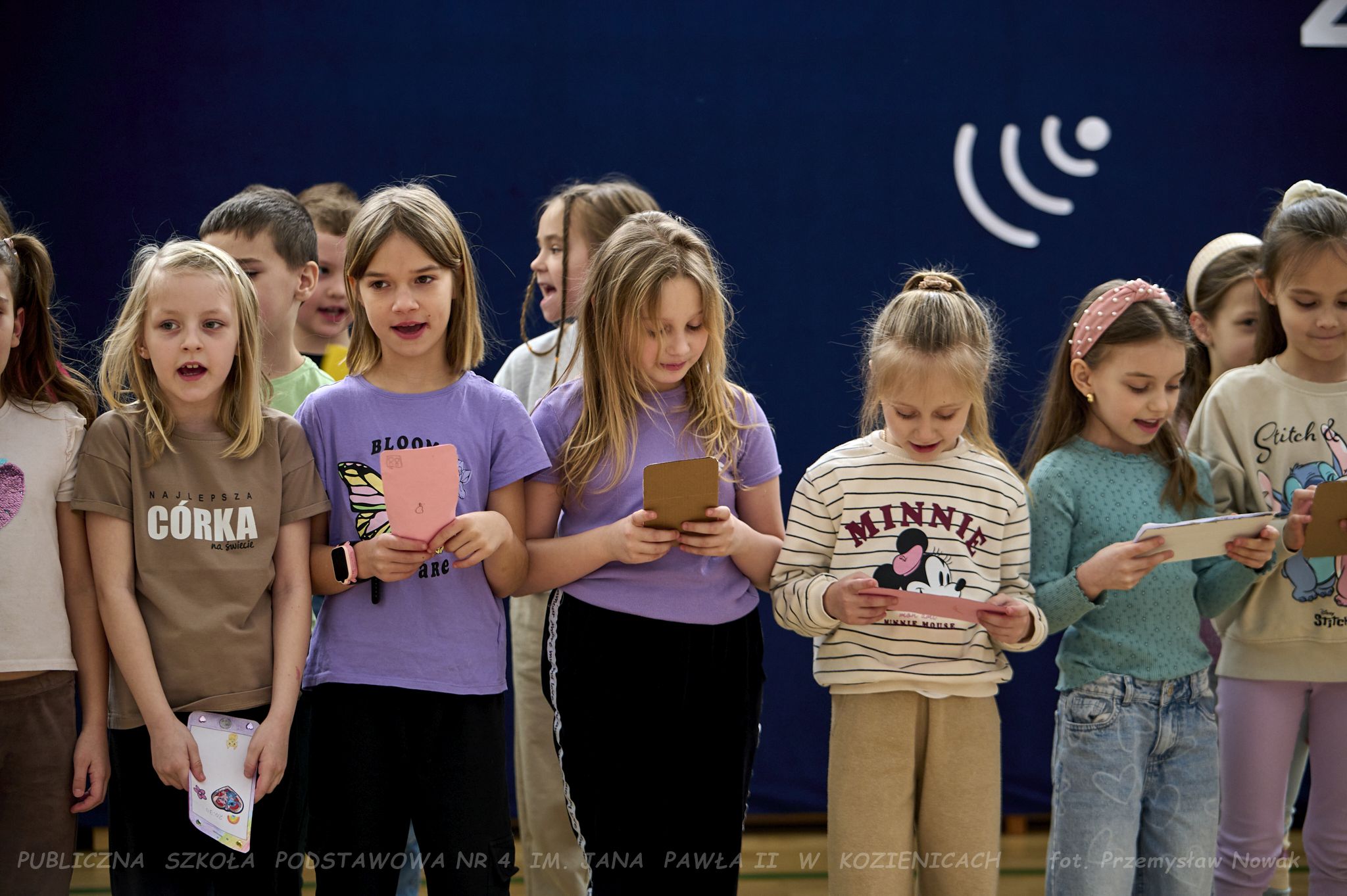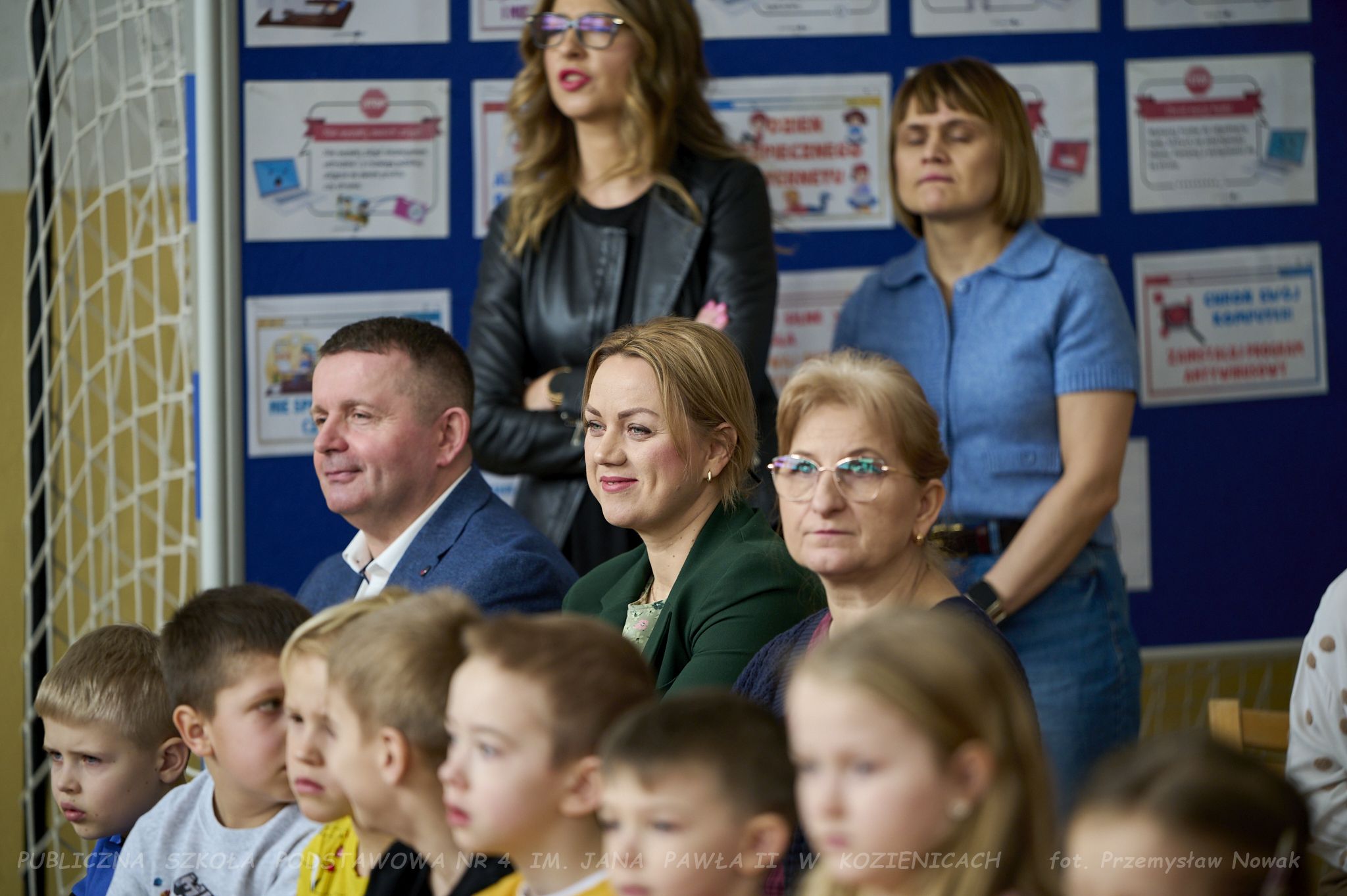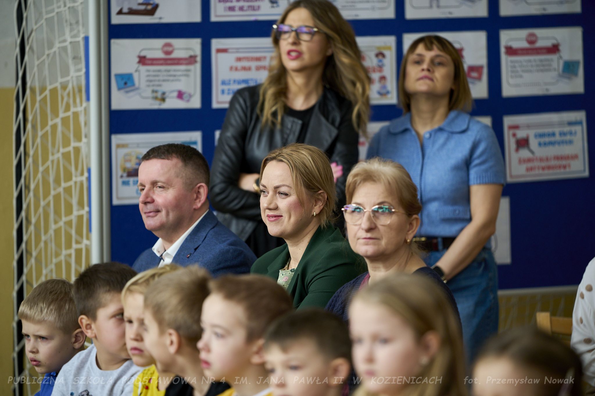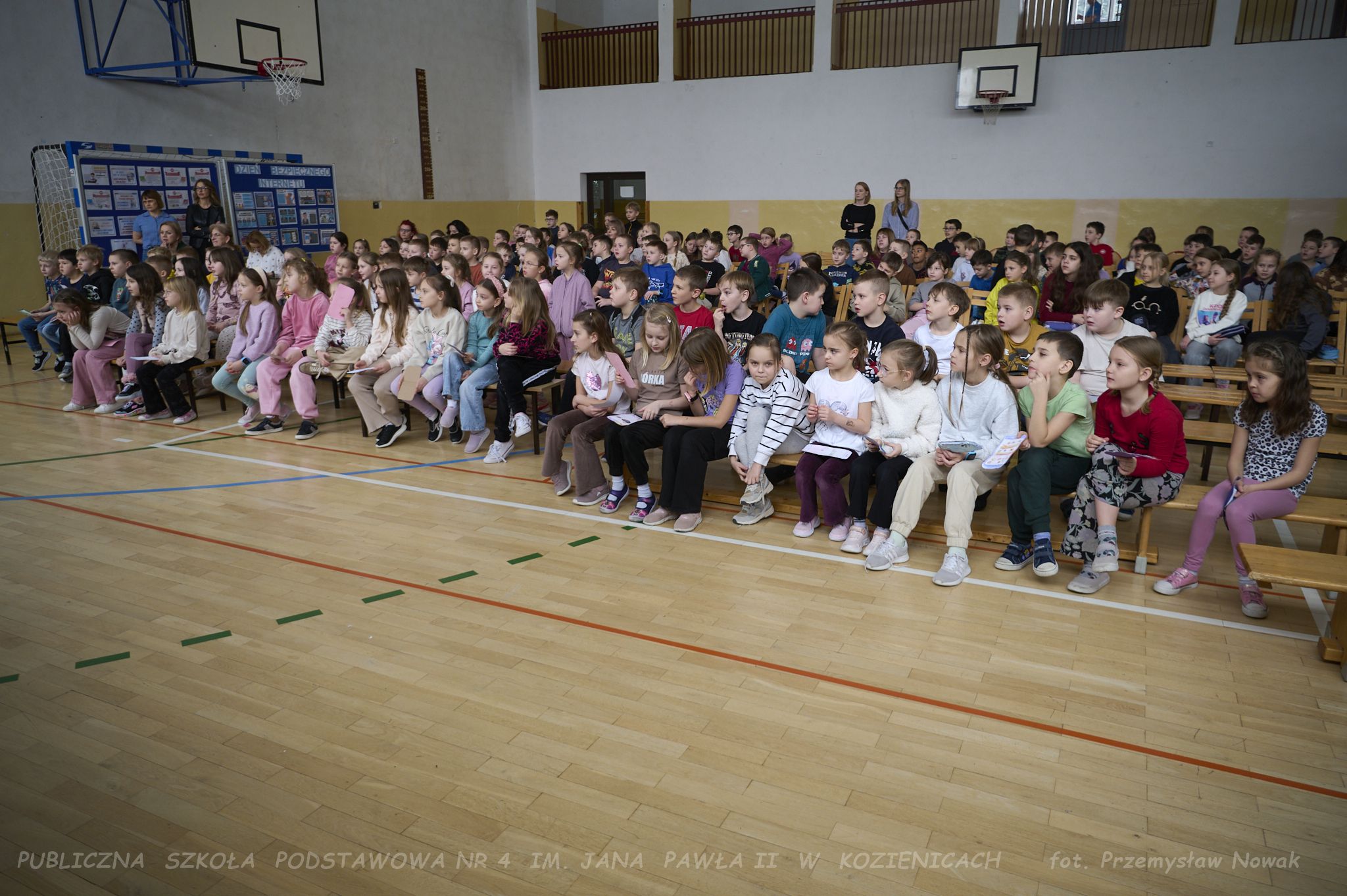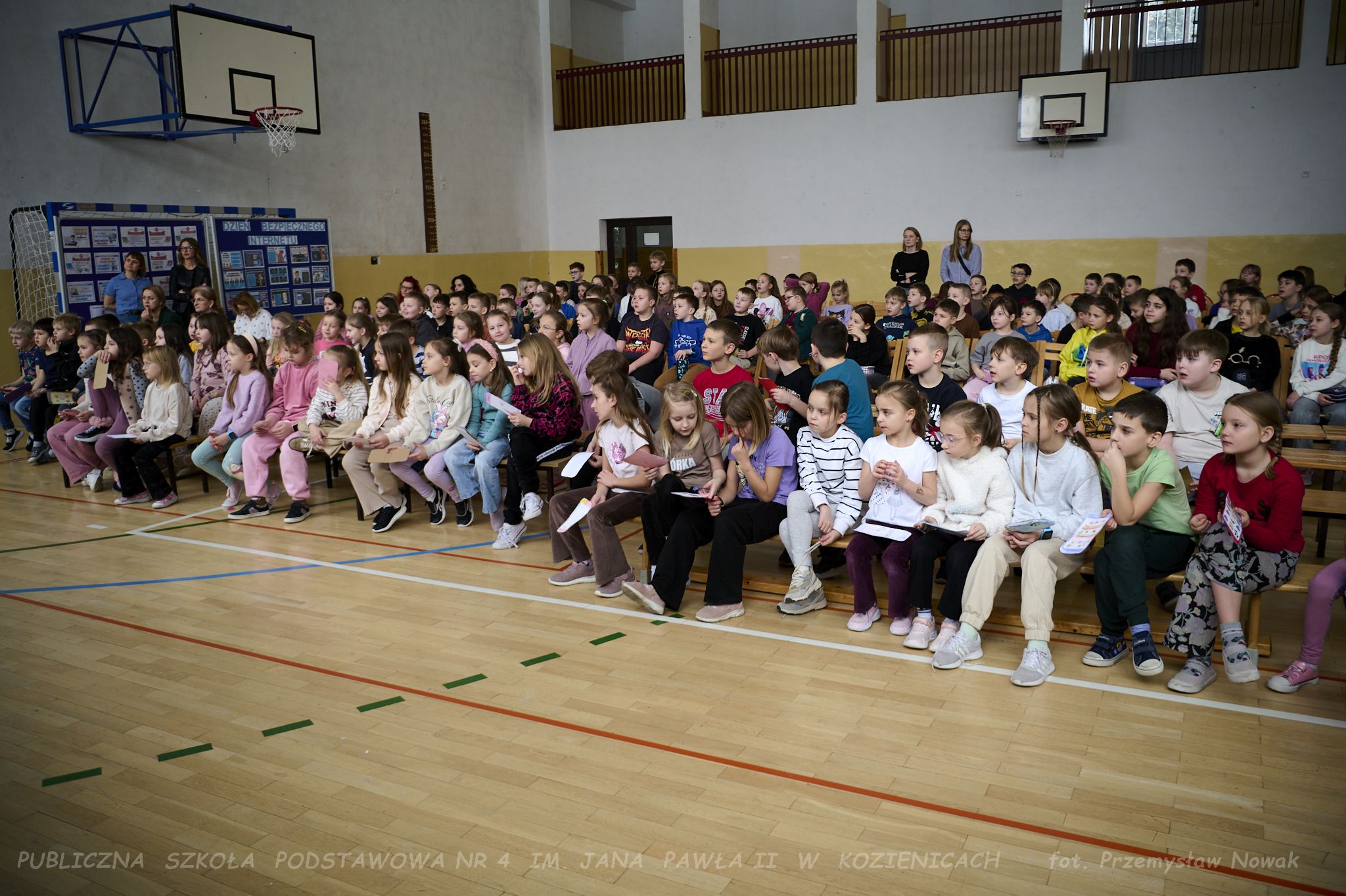 i przedstawił organizatorów wydarzenia: panią Joannę Lenarczyk, panią Małgorzatę Sienkiewicz oraz pana Sebastiana Kotlarka. Dzieci z klasy 1a i 1c zaśpiewały piosenkę “Z internetem Świat jest bliski”, a następnie spotkanie poprowadził nauczyciel informatyki
