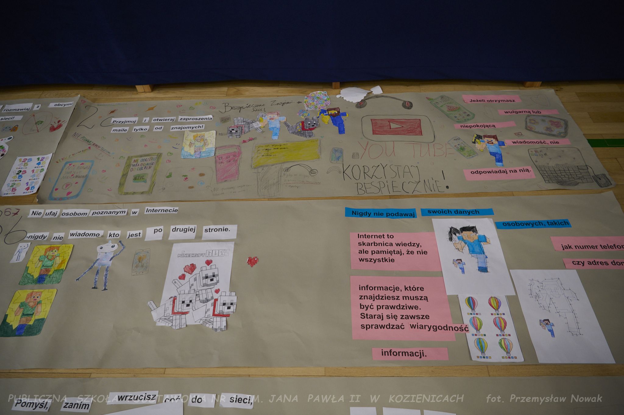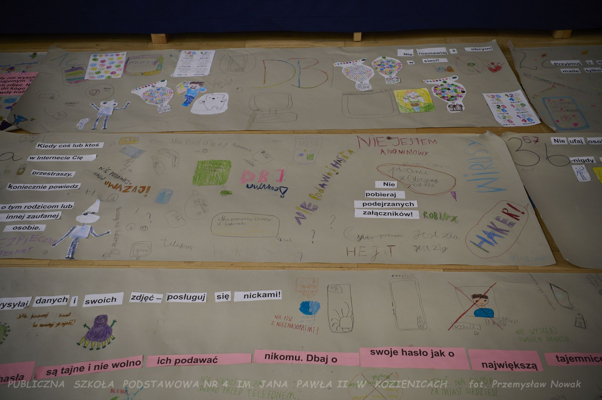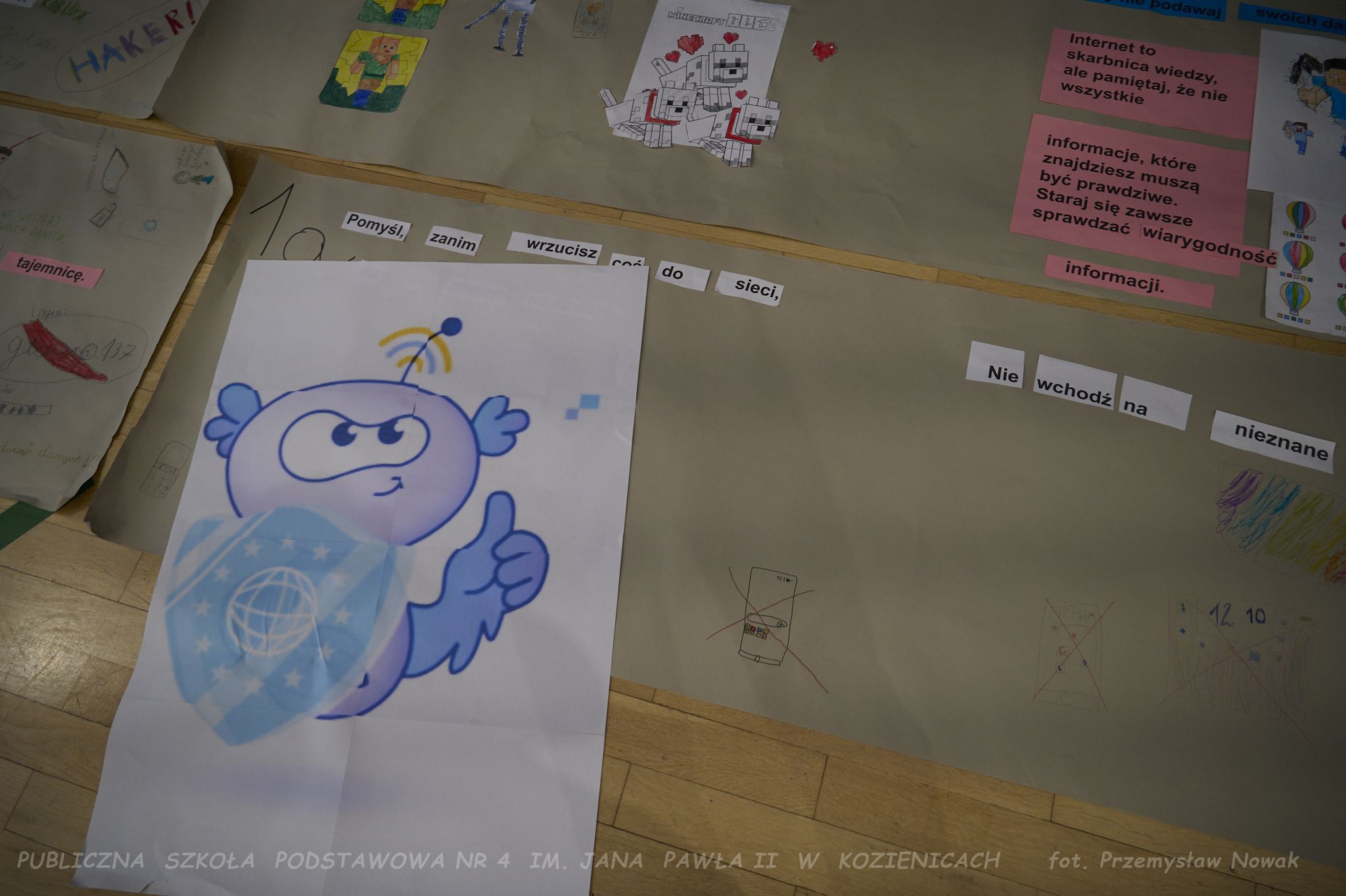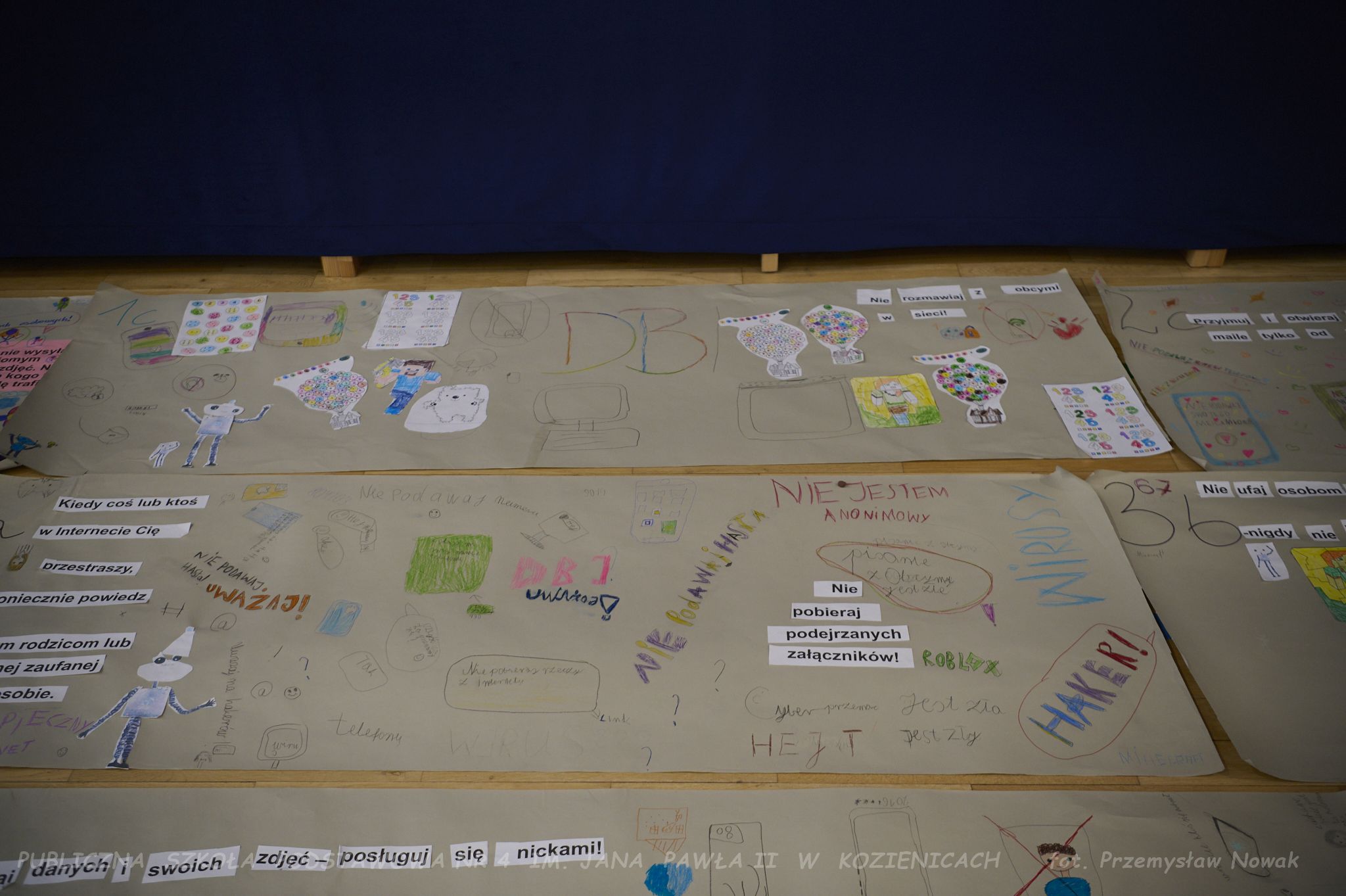przygotowywali plakaty z hasłami promującymi bezpieczne korzystanie z sieci. Odwiedziła nas również pani policjantka,