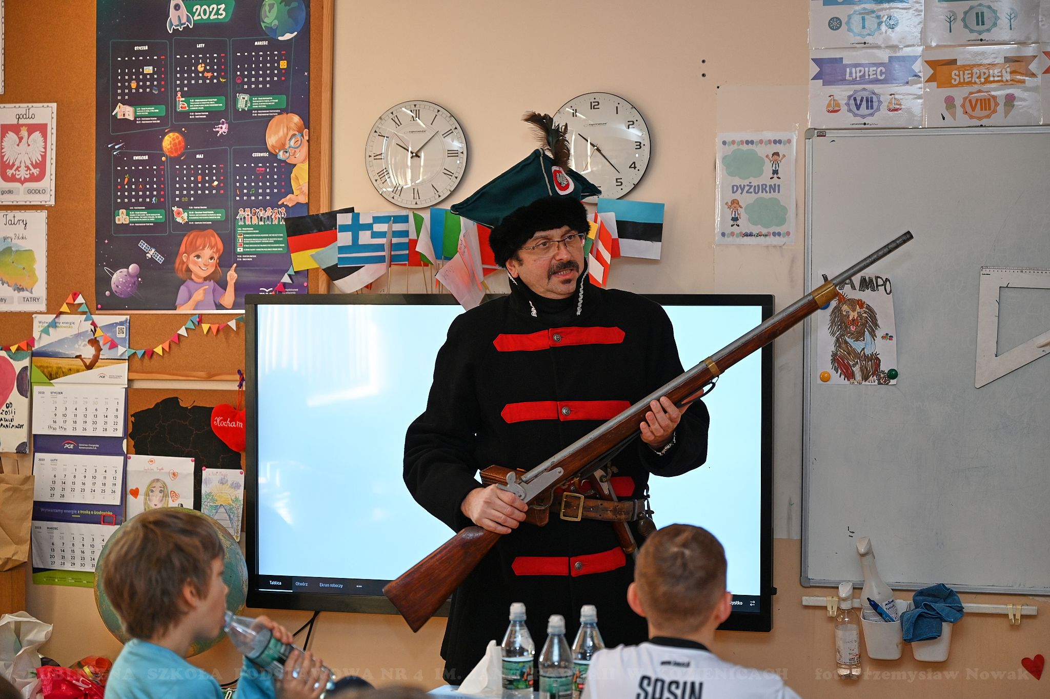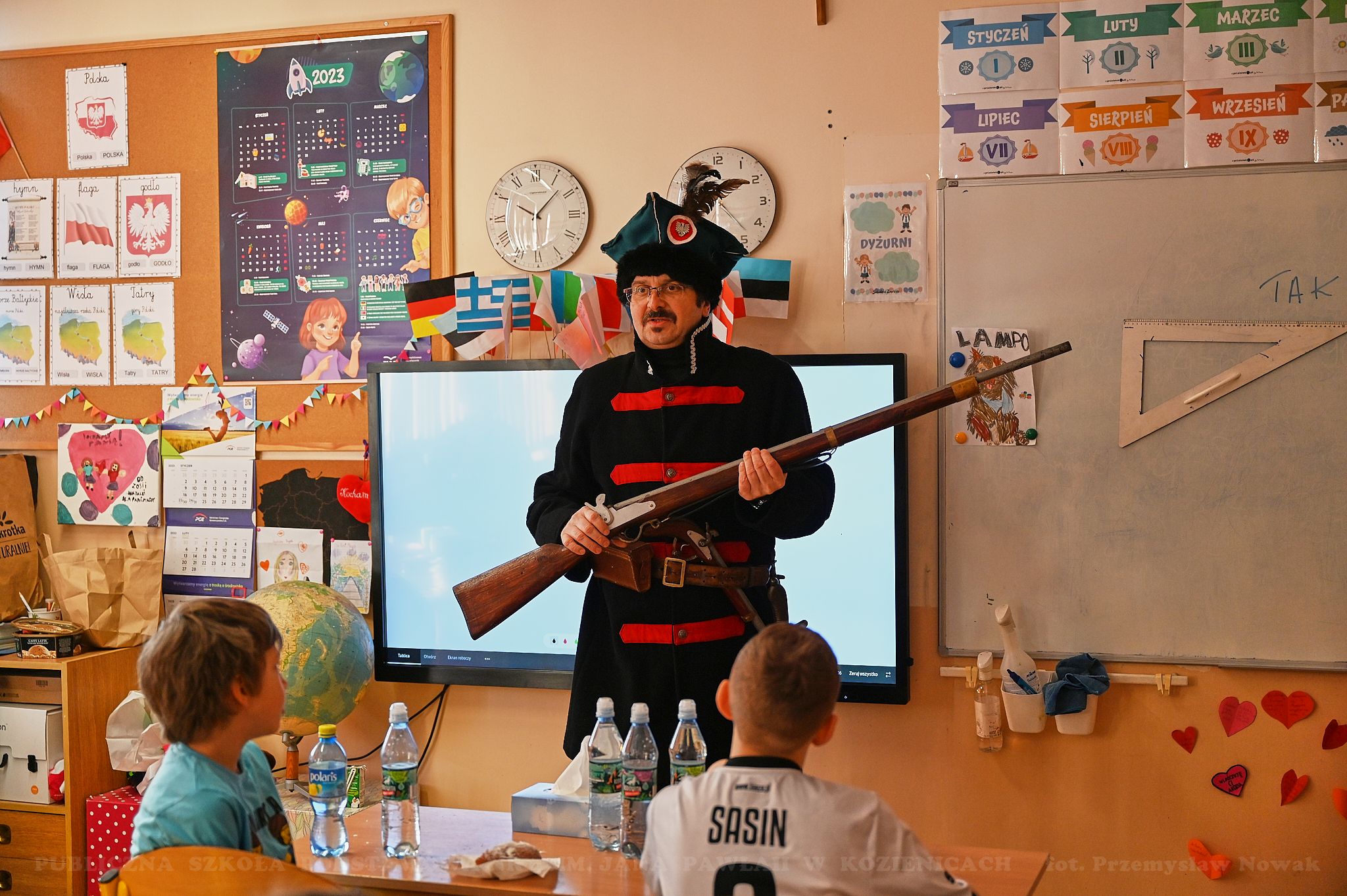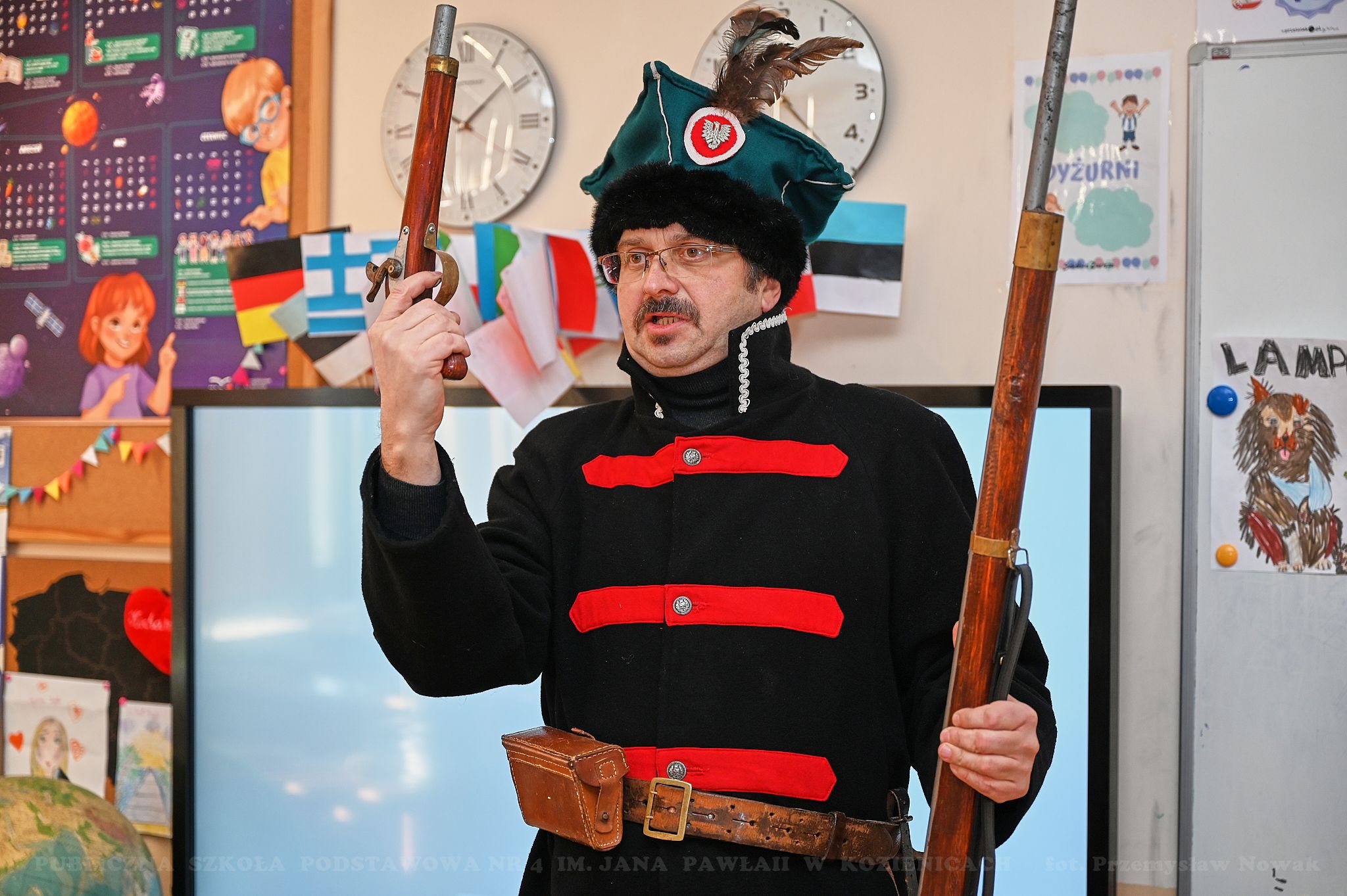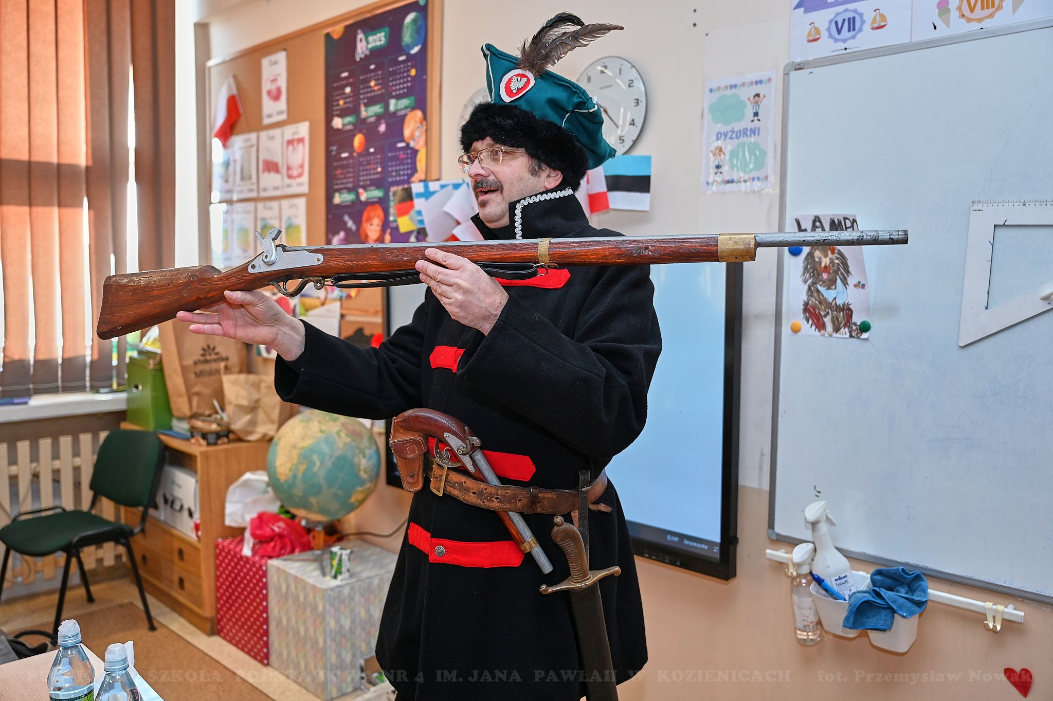 W 2023 roku mija 160 lat od wybuchu powstania styczniowego. W związku z tą ważną rocznicą uczniowie naszej szkoły mogli zapoznać się z wyposażeniem i uzbrojeniem powstańca styczniowego. Rekonstruktor i nauczyciel historii, Pan Grzegorz Kocyk przypomniał także uczniom kilka dat związanych z tym zrywem niepodległościowym. O dacie 22 stycznia 1863 r. będziemy długo pamiętać.