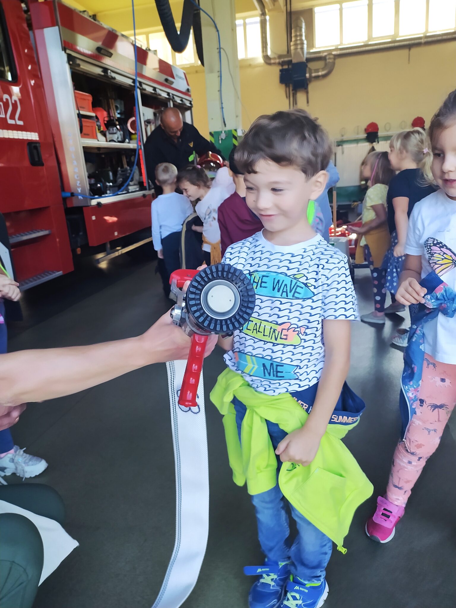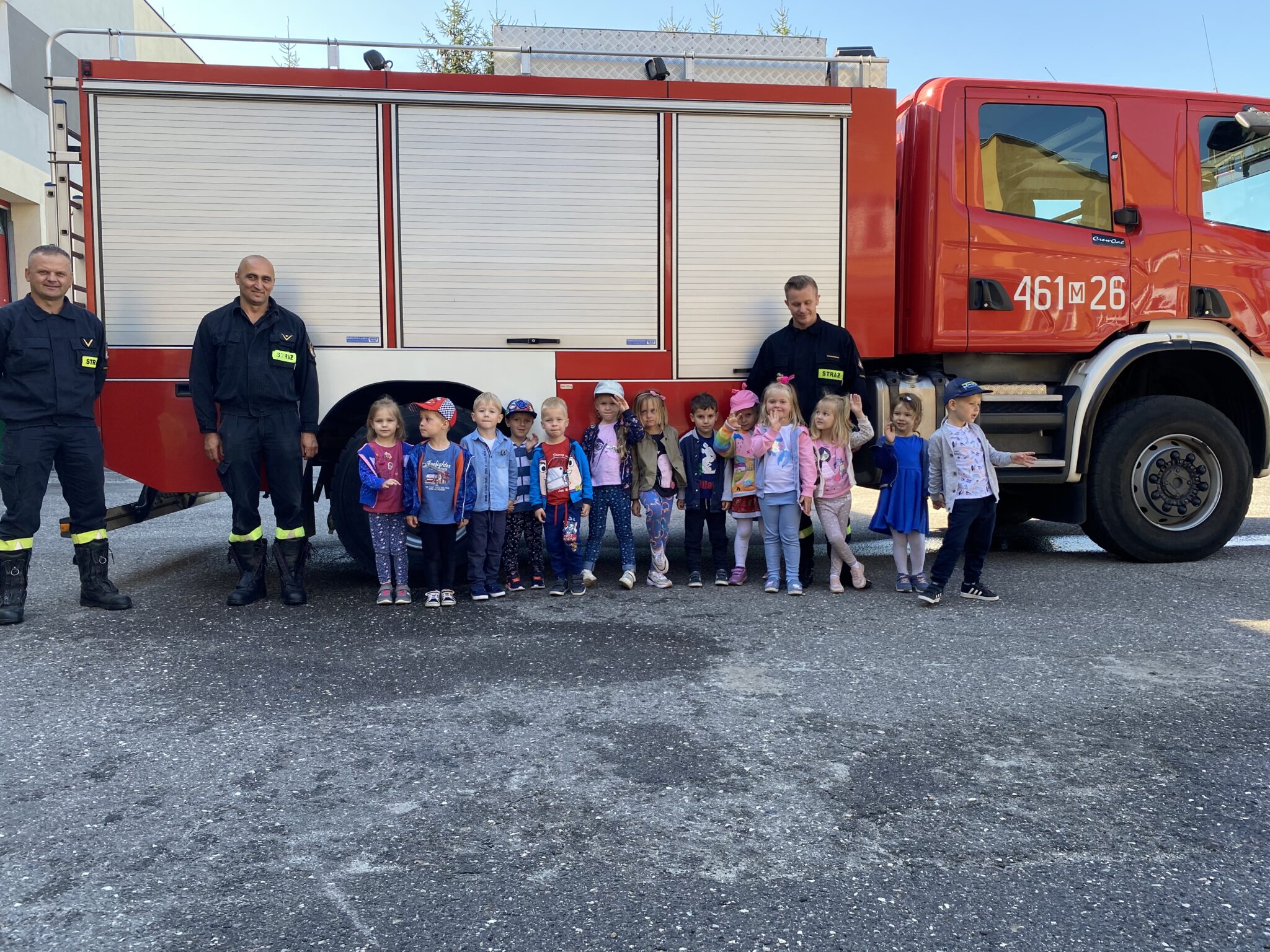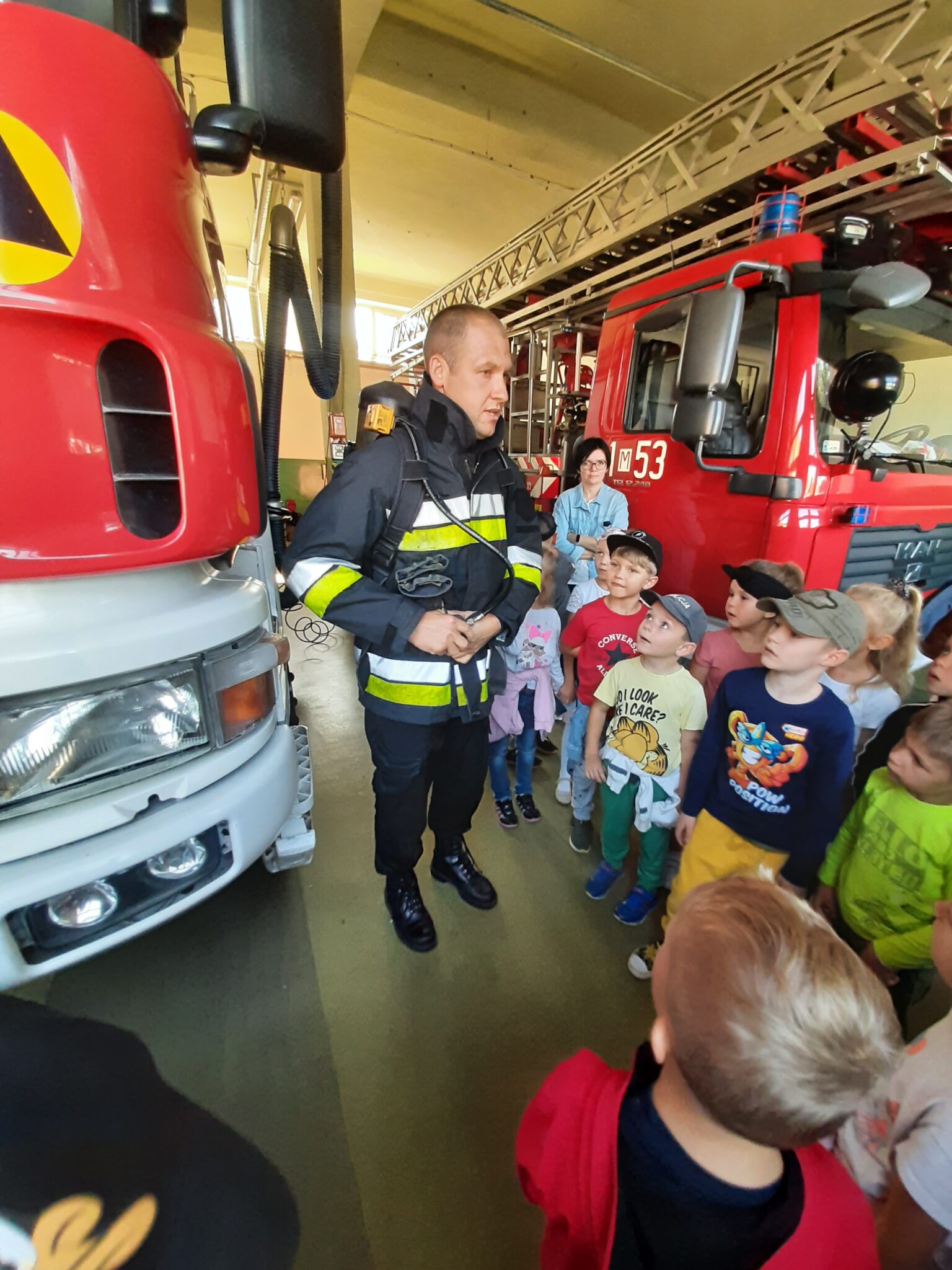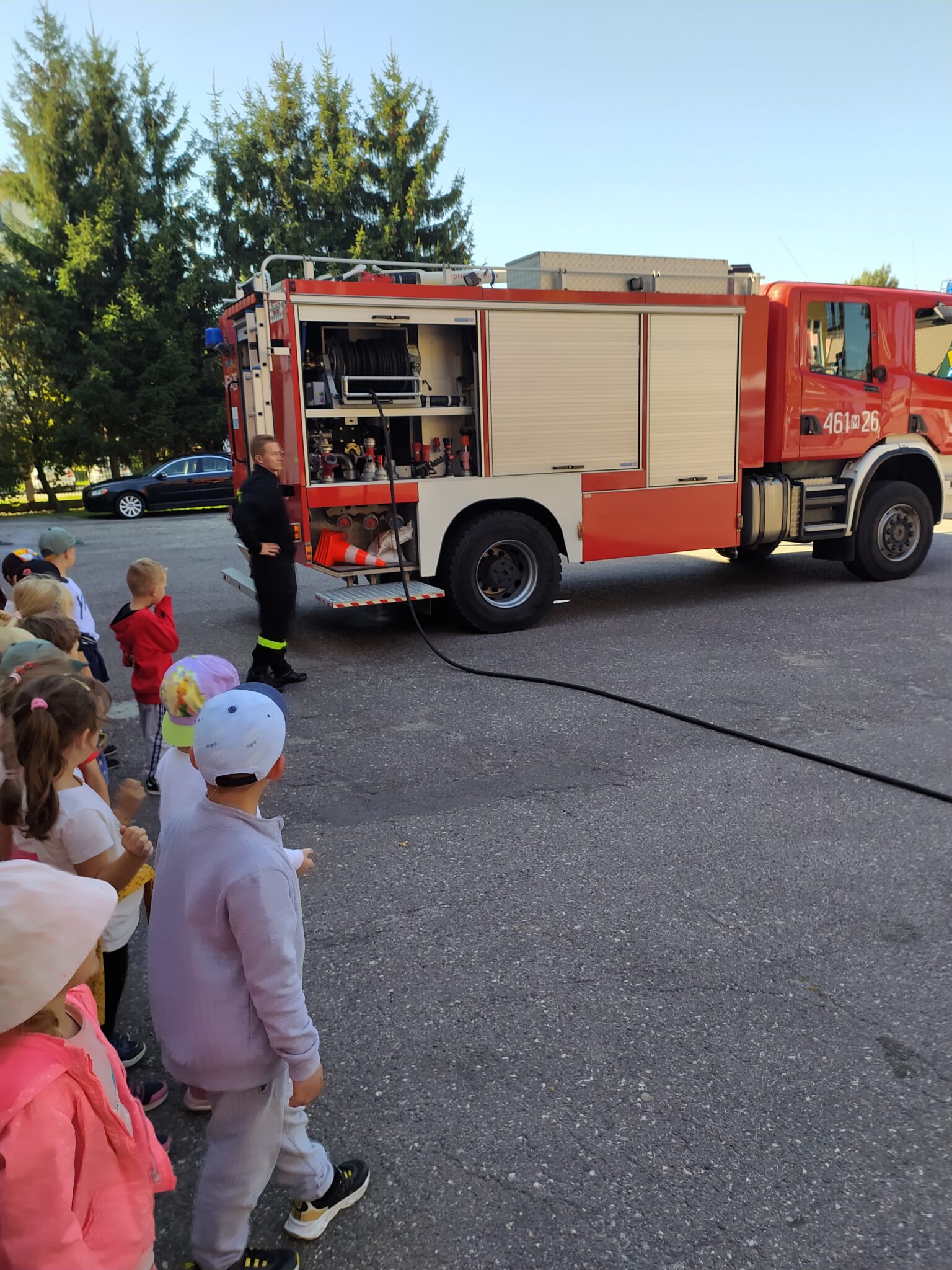 9 września dzieci z oddziałów przedszkolnych z PSP nr 4 z grup Żabki, Krasnoludki, Motylki oraz Delfinki wybrały się z wizytą do pobliskiej siedziby Państwowej Straży Pożarnej, aby zapoznać się z tajnikami pracy strażaka.