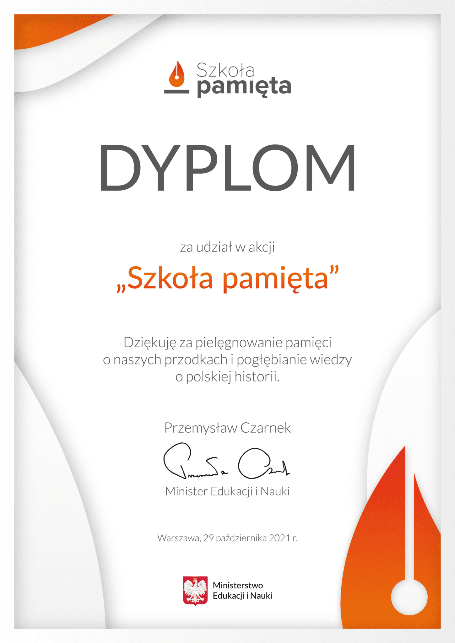 Za czynny udział w akcji nasza szkoła otrzymała pamiątkowy dyplom.