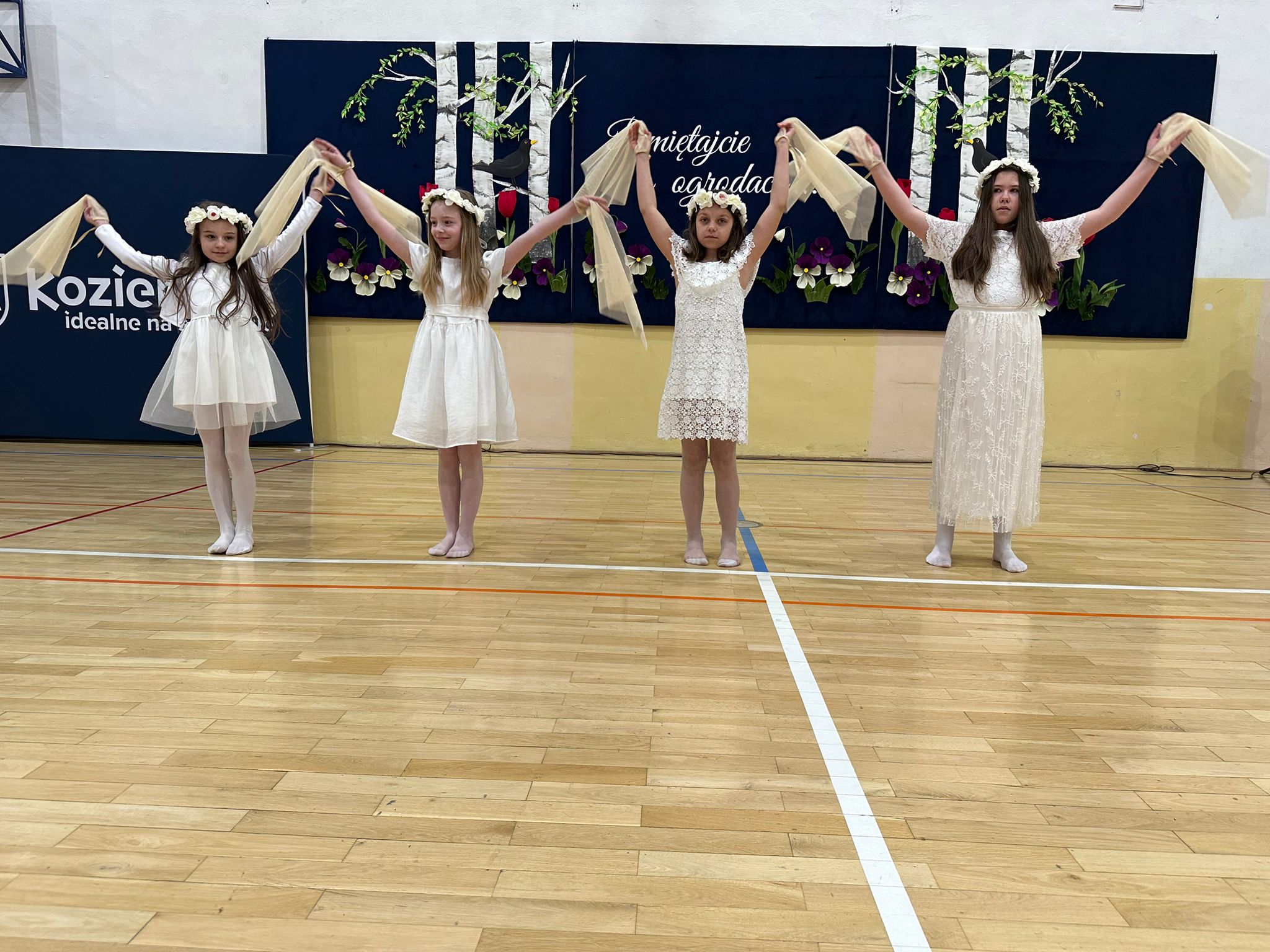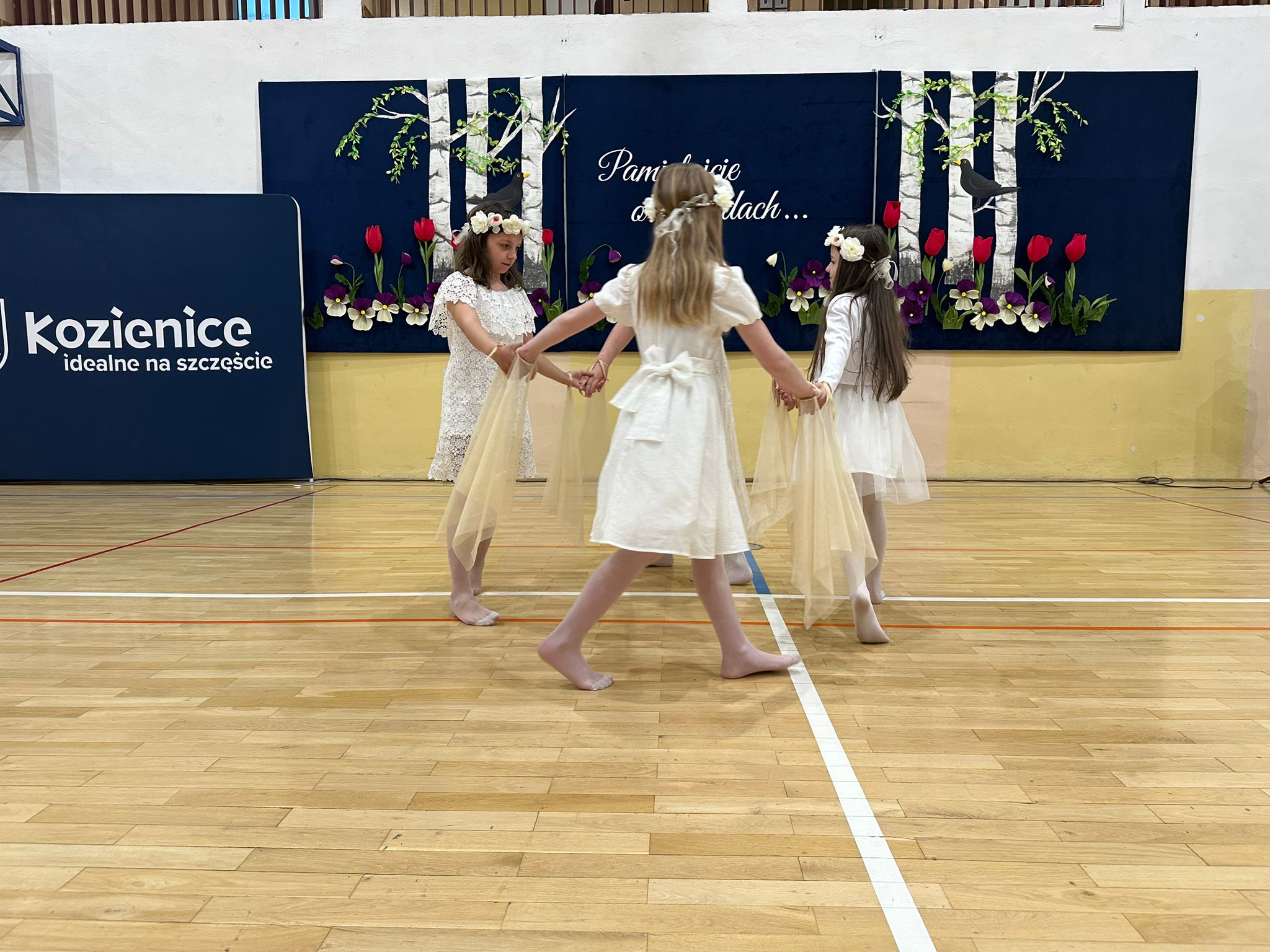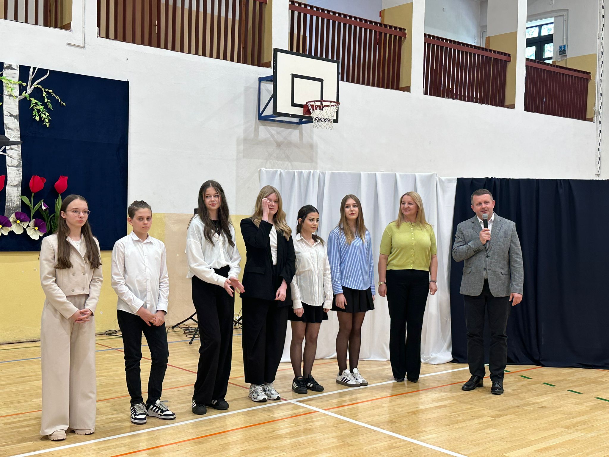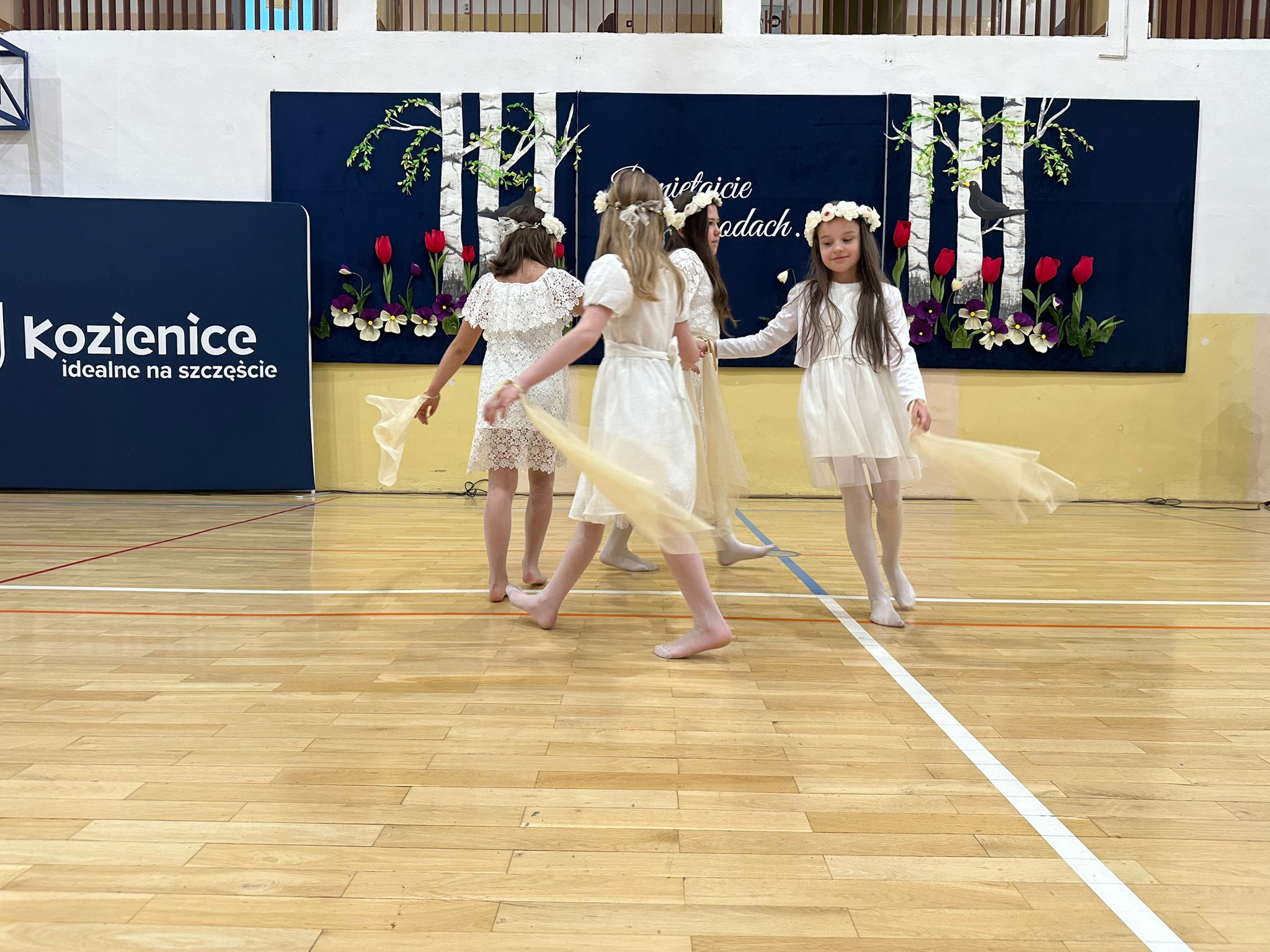 Punktem kulminacyjnym podjętych działań był montaż słowno-muzyczny, który odbył się w czwartek 23 kwietnia. Występ artystyczny „Pamiętajcie o ogrodach…” był wyjątkowym wydarzeniem, które skłoniło widzów zgromadzonych w sali gimnastycznej do refleksji nad pięknem natury, harmonią świata oraz miejscem człowieka w przyrodzie. Odbiorcami spektaklu byli Dyrektor Pan Andrzej Suwała, Wicedyrektor Pani Magdalena Prygiel, Dyrektor Wydziału Edukacji Urzędu Miejskiego w Kozienicach Pani Małgorzata Wolszczak, Doradca metodyczny MSCDN Wydział w Radomiu Pani Anna Janowska, Przewodniczący Rady Rodziców Pan Łukasz Słyk, nauczyciele oraz uczniowie klas IV – VIII naszej szkoły. Program łączył w sobie różnorodne formy wyrazu – poezję, muzykę, elementy teatralne oraz taniec – tworząc spójną i poruszającą całość. Motyw ogrodu, obecny w całym przedstawieniu, symbolizował nie tylko naturę, ale także życie człowieka oraz wartości takie jak: dobro, spokój, pamięć i wrażliwość. Występujący z dużym zaangażowaniem młodzi aktorzy zaprezentowali swoje umiejętności, oddając nastrój radości, refleksji i nostalgii, a jednocześnie przypominając o codziennej potrzebie troski o otaczający nas świat.
