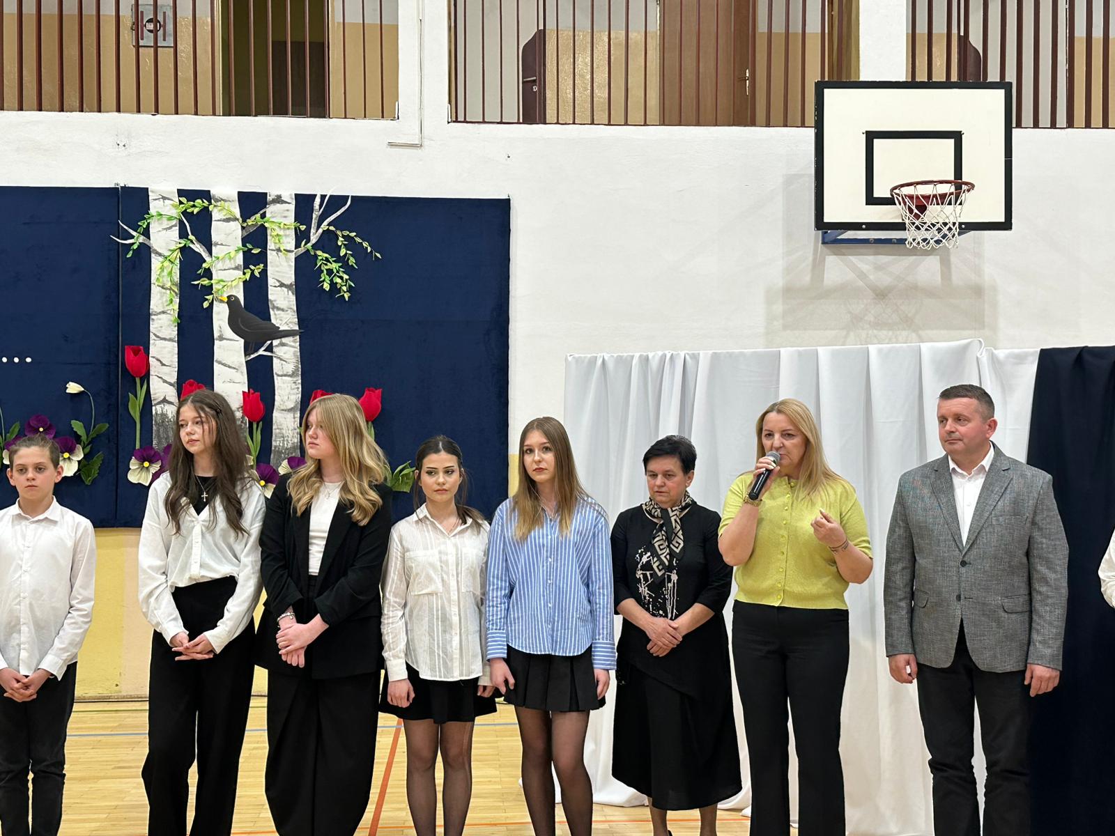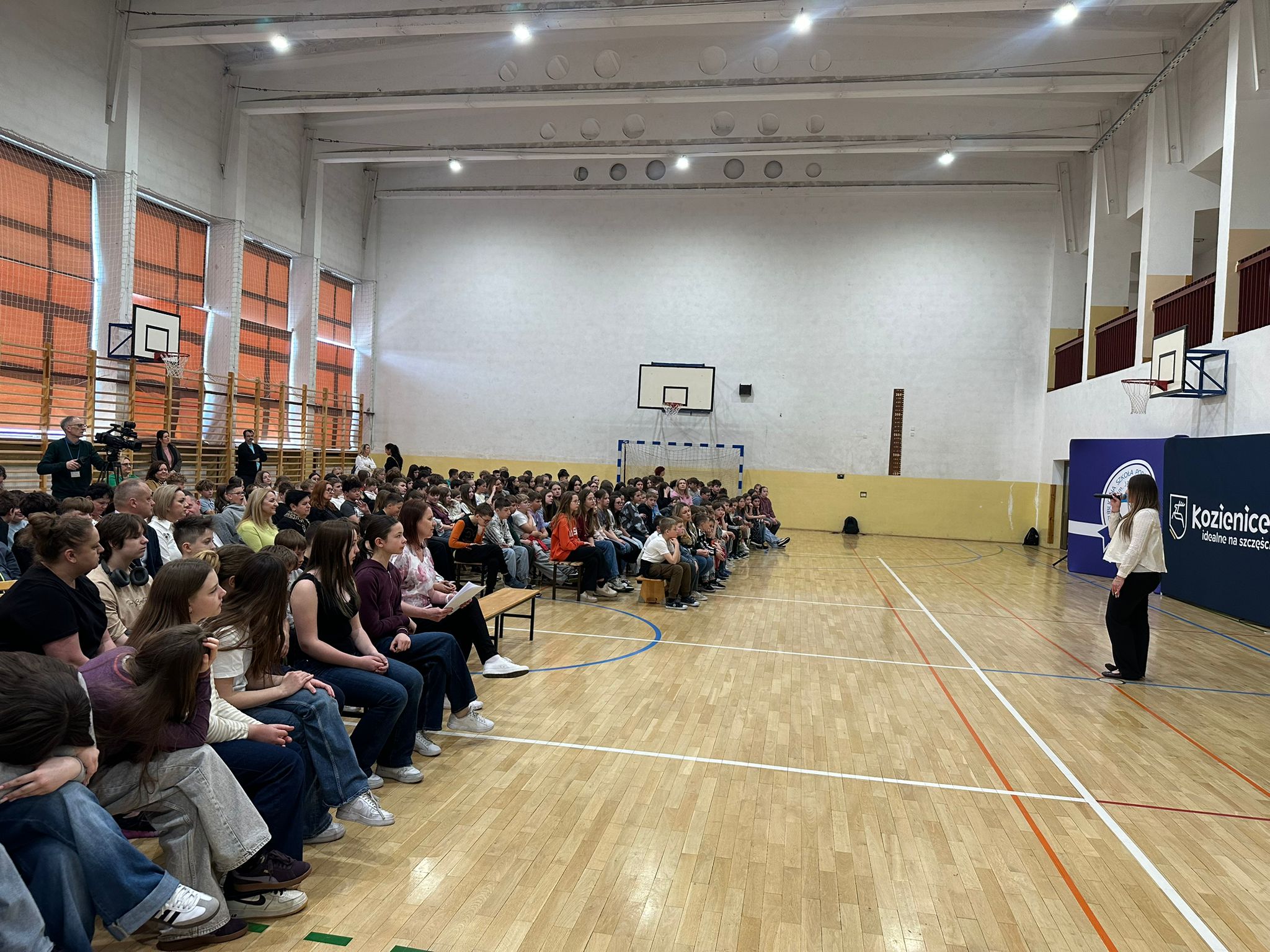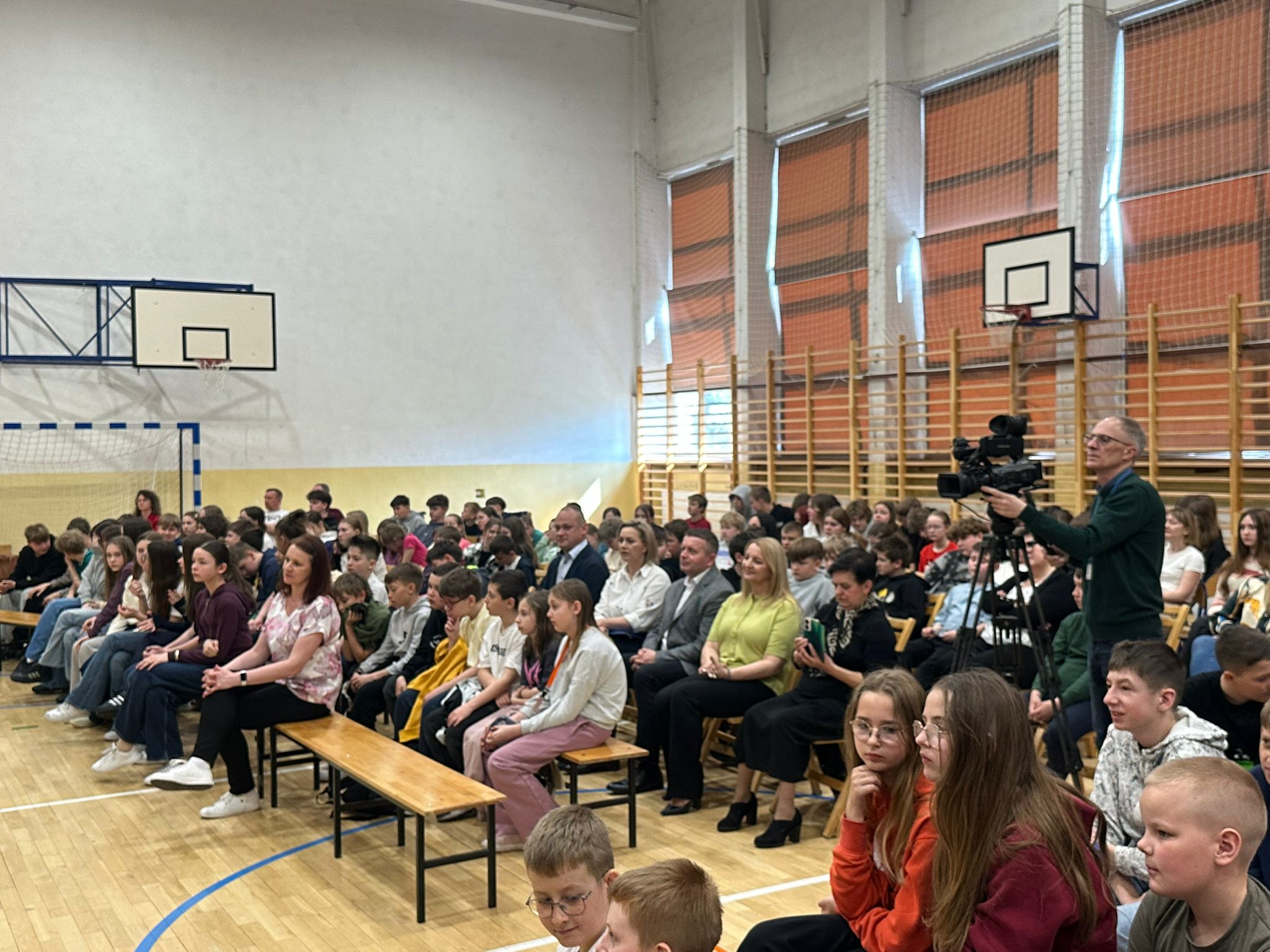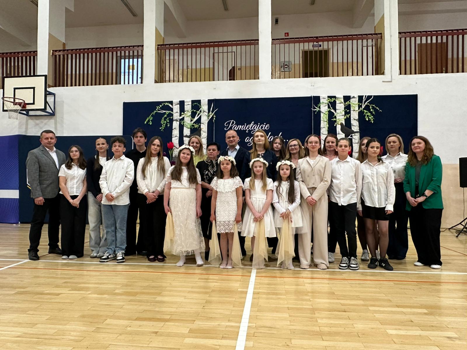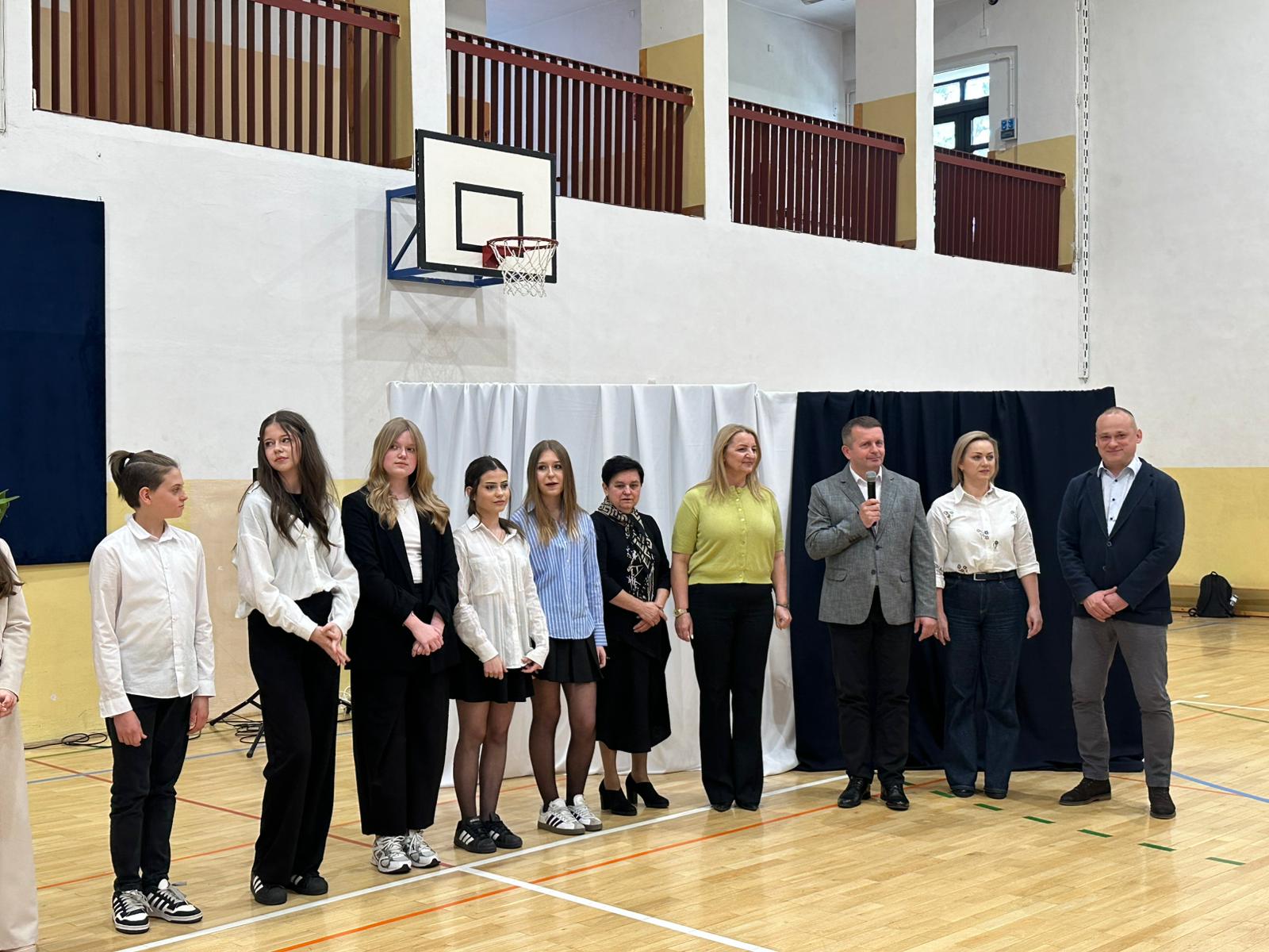 Punktem kulminacyjnym podjętych działań był montaż słowno-muzyczny, który odbył się w czwartek 23 kwietnia. Występ artystyczny „Pamiętajcie o ogrodach…” był wyjątkowym wydarzeniem, które skłoniło widzów zgromadzonych w sali gimnastycznej do refleksji nad pięknem natury, harmonią świata oraz miejscem człowieka w przyrodzie. Odbiorcami spektaklu byli Dyrektor Pan Andrzej Suwała, Wicedyrektor Pani Magdalena Prygiel, Dyrektor Wydziału Edukacji Urzędu Miejskiego w Kozienicach Pani Małgorzata Wolszczak, Doradca metodyczny MSCDN Wydział w Radomiu Pani Anna Janowska, Przewodniczący Rady Rodziców Pan Łukasz Słyk, nauczyciele oraz uczniowie klas IV – VIII naszej szkoły. Program łączył w sobie różnorodne formy wyrazu – poezję, muzykę, elementy teatralne oraz taniec – tworząc spójną i poruszającą całość. Motyw ogrodu, obecny w całym przedstawieniu, symbolizował nie tylko naturę, ale także życie człowieka oraz wartości takie jak: dobro, spokój, pamięć i wrażliwość. Występujący z dużym zaangażowaniem młodzi aktorzy zaprezentowali swoje umiejętności, oddając nastrój radości, refleksji i nostalgii, a jednocześnie przypominając o codziennej potrzebie troski o otaczający nas świat.