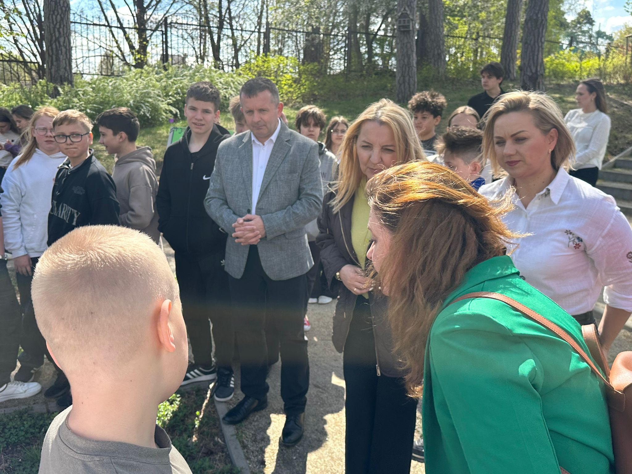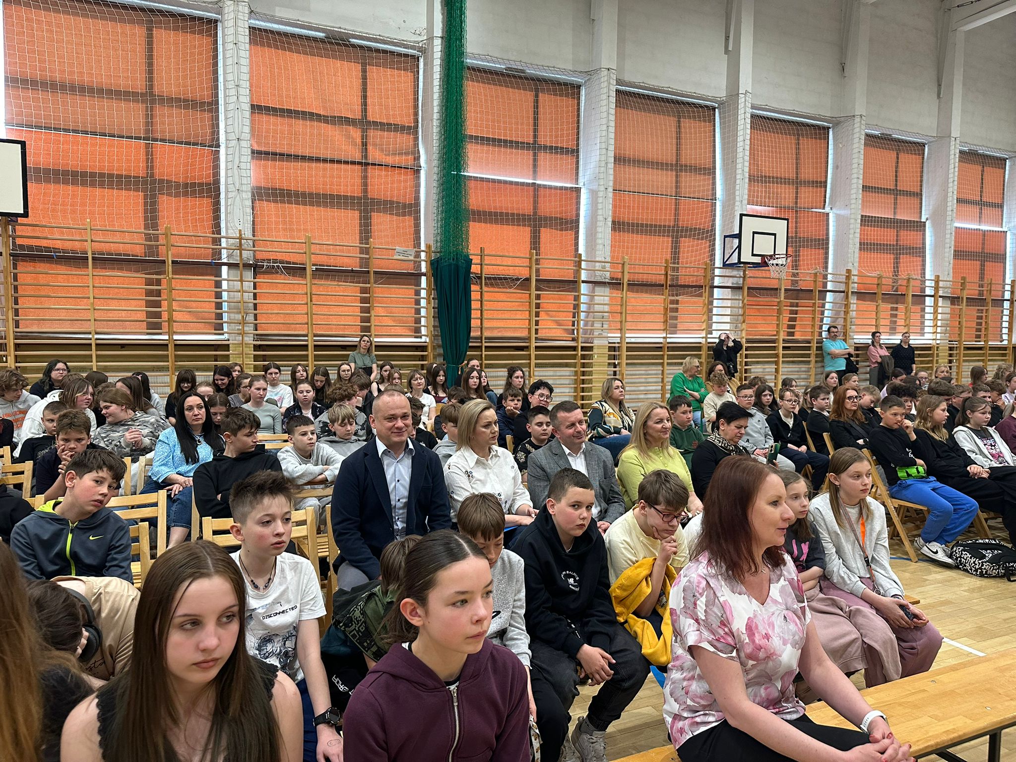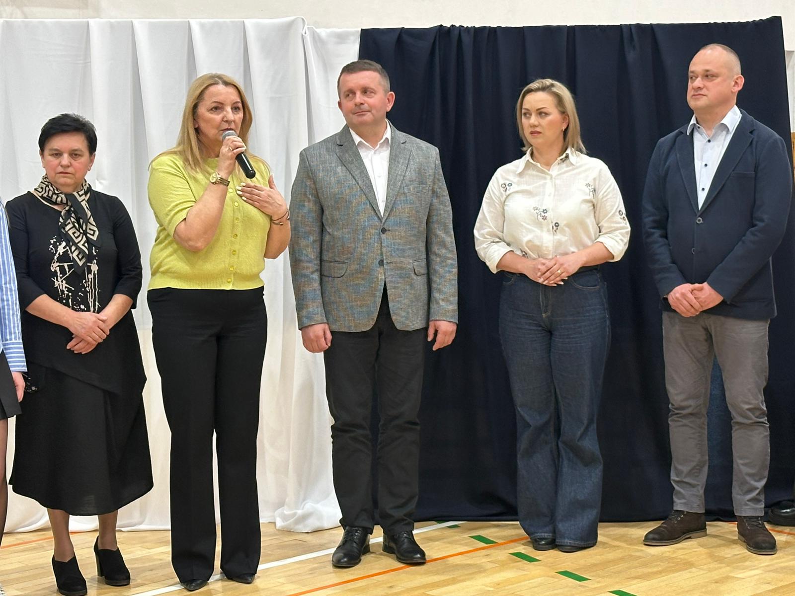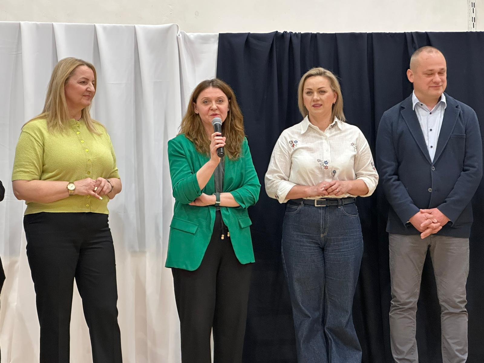 Po zakończonym występie głos zabrał dyrektor szkoły pan Andrzej Suwała, który serdecznie podziękował aktorom za wspaniałe przedstawienie. Następnie poprosił o zabranie głosu zaproszonych gości: Panią Małgorzatę Wolszczak – Dyrektor Wydzialu Edukacji Urzędu Miejskiego w Kozienicach, Panią Annę Janowską – doradcę MSCDN w Radomiu oraz Pana Łukasza Słyka – Przewodniczącego Rady Rodziców. Goście pogratulowali młodym artystom wspaniałego występu, a także pochwalili ich proekologiczne postawy. Głos zabrała również Pani Ewa Włodarczyk, koordynatorka całego wydarzenia, która krótko opowiedziała o przygotowaniach do dzisiejszej prezentacji. Dyrektor szkoły Andrzej Suwała podziękował także wszystkim nauczycielom zaangażowanym w organizację uroczystości i zaprosił zgromadzonych na edukacyjny spacer po przyszkolnej ścieżce przyrodniczej w Edukacyjnych Strefach Zielonych.