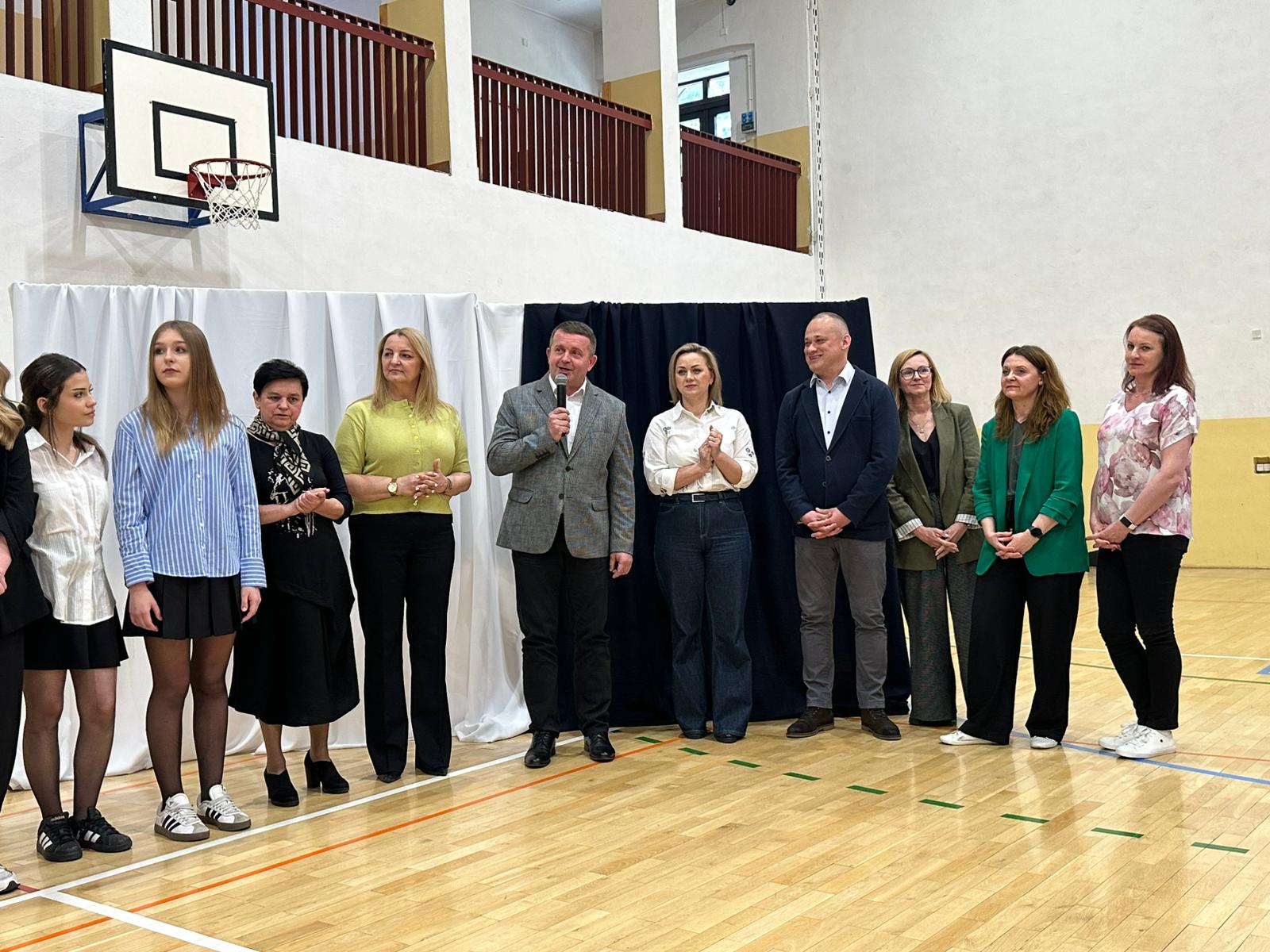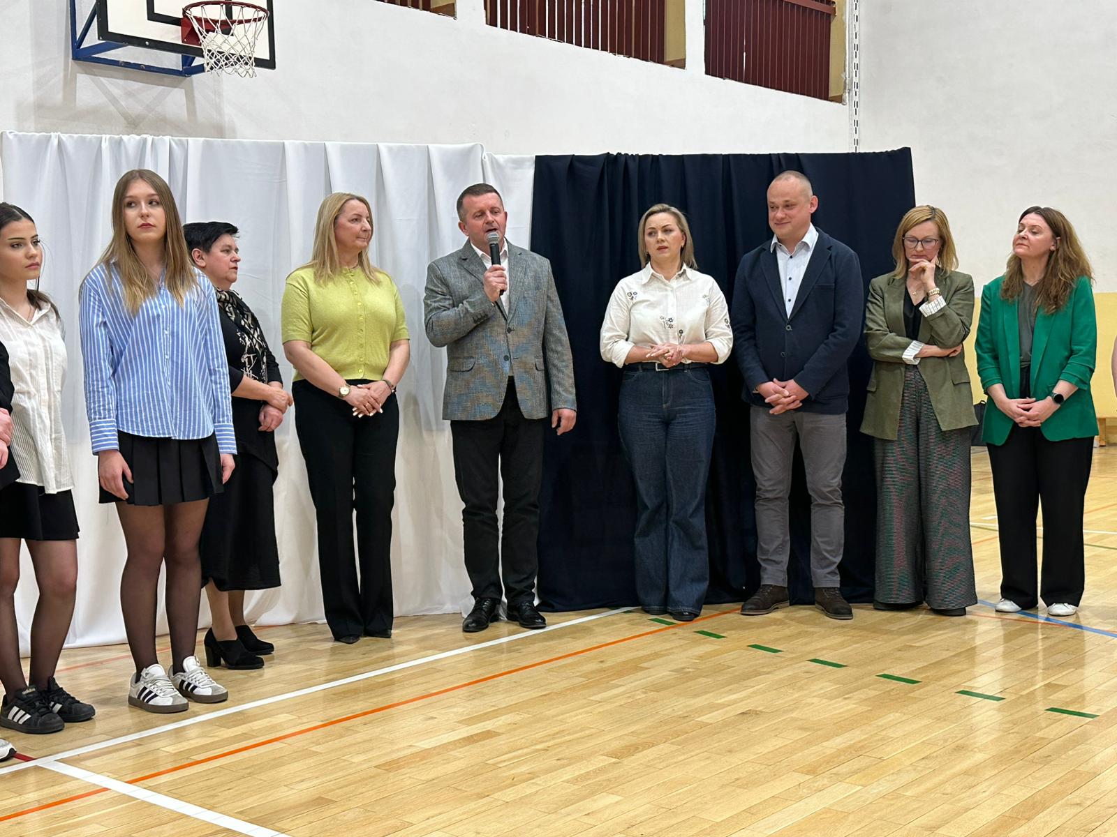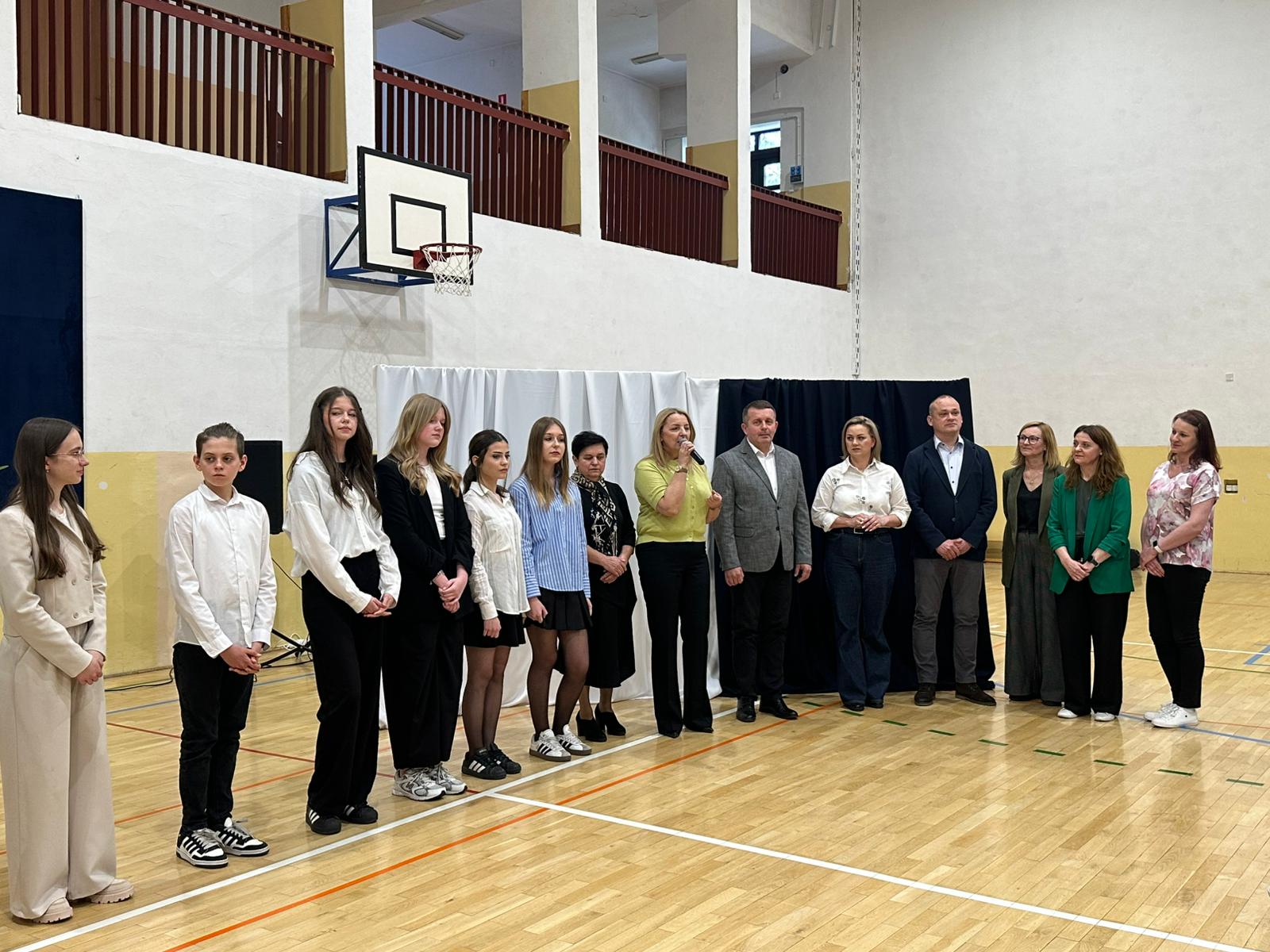 Po zakończonym występie głos zabrał dyrektor szkoły pan Andrzej Suwała, który serdecznie podziękował aktorom za wspaniałe przedstawienie. Następnie poprosił o zabranie głosu zaproszonych gości: Panią Małgorzatę Wolszczak – Dyrektor Wydzialu Edukacji Urzędu Miejskiego w Kozienicach, Panią Annę Janowską – doradcę MSCDN w Radomiu oraz Pana Łukasza Słyka – Przewodniczącego Rady Rodziców. Goście pogratulowali młodym artystom wspaniałego występu, a także pochwalili ich proekologiczne postawy. Głos zabrała również Pani Ewa Włodarczyk, koordynatorka całego wydarzenia, która krótko opowiedziała o przygotowaniach do dzisiejszej prezentacji. Dyrektor szkoły Andrzej Suwała podziękował także wszystkim nauczycielom zaangażowanym w organizację uroczystości i zaprosił zgromadzonych na edukacyjny spacer po przyszkolnej ścieżce przyrodniczej w Edukacyjnych Strefach Zielonych.