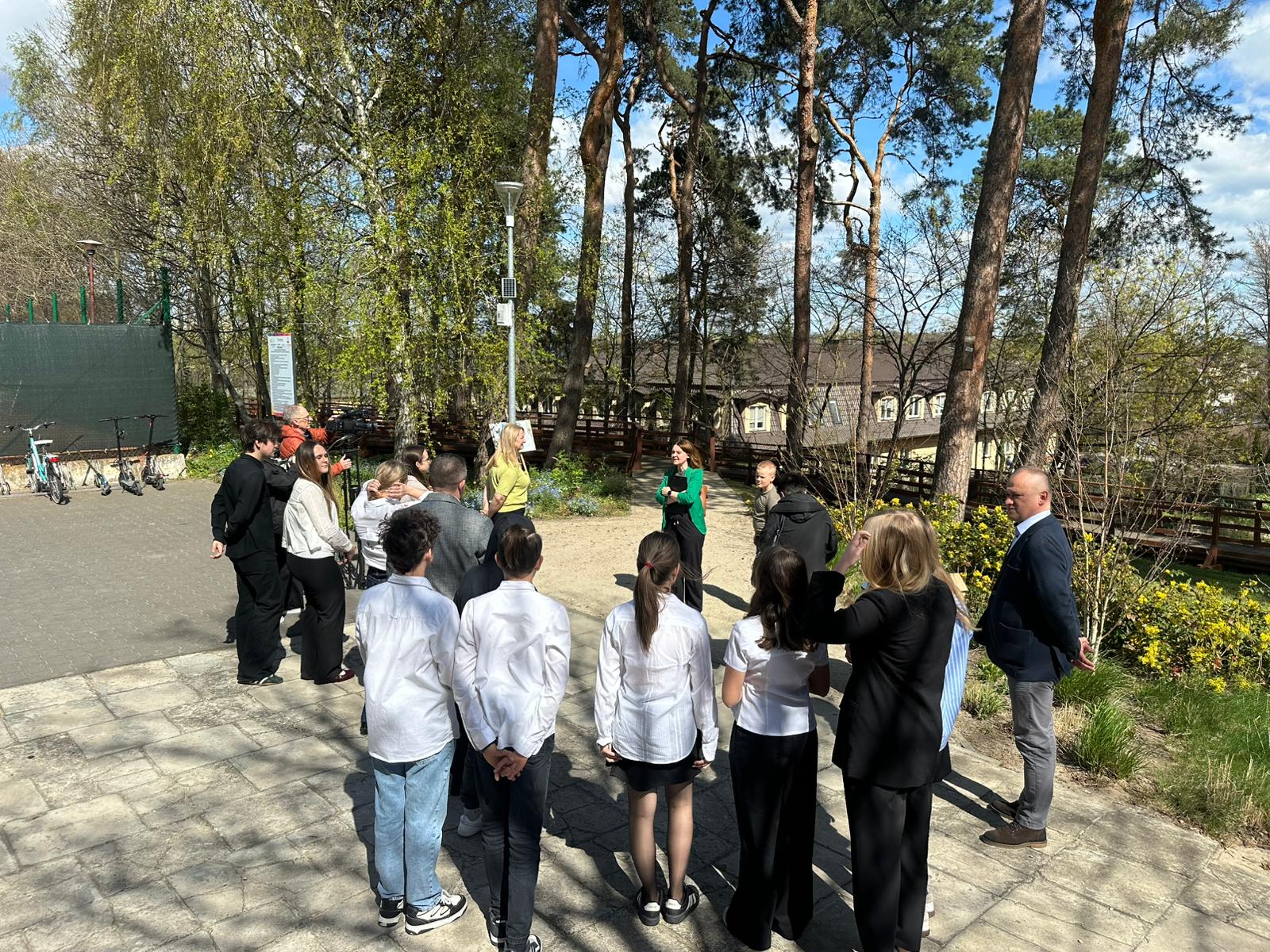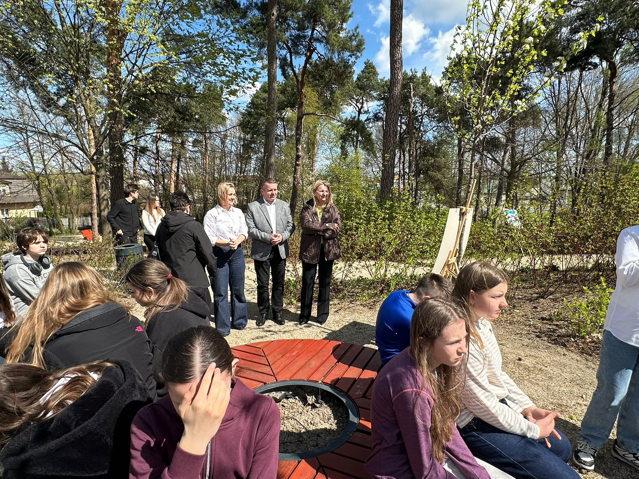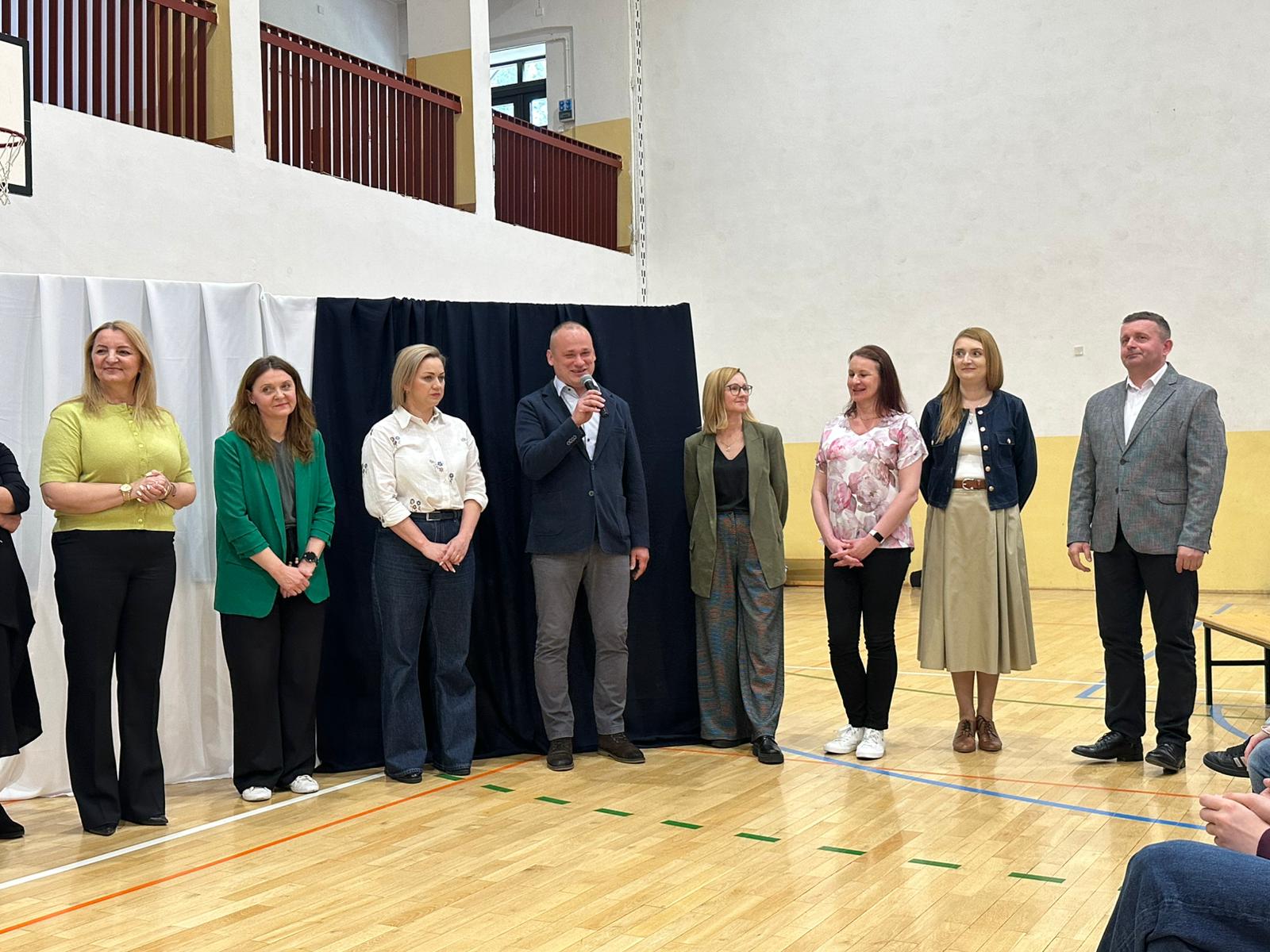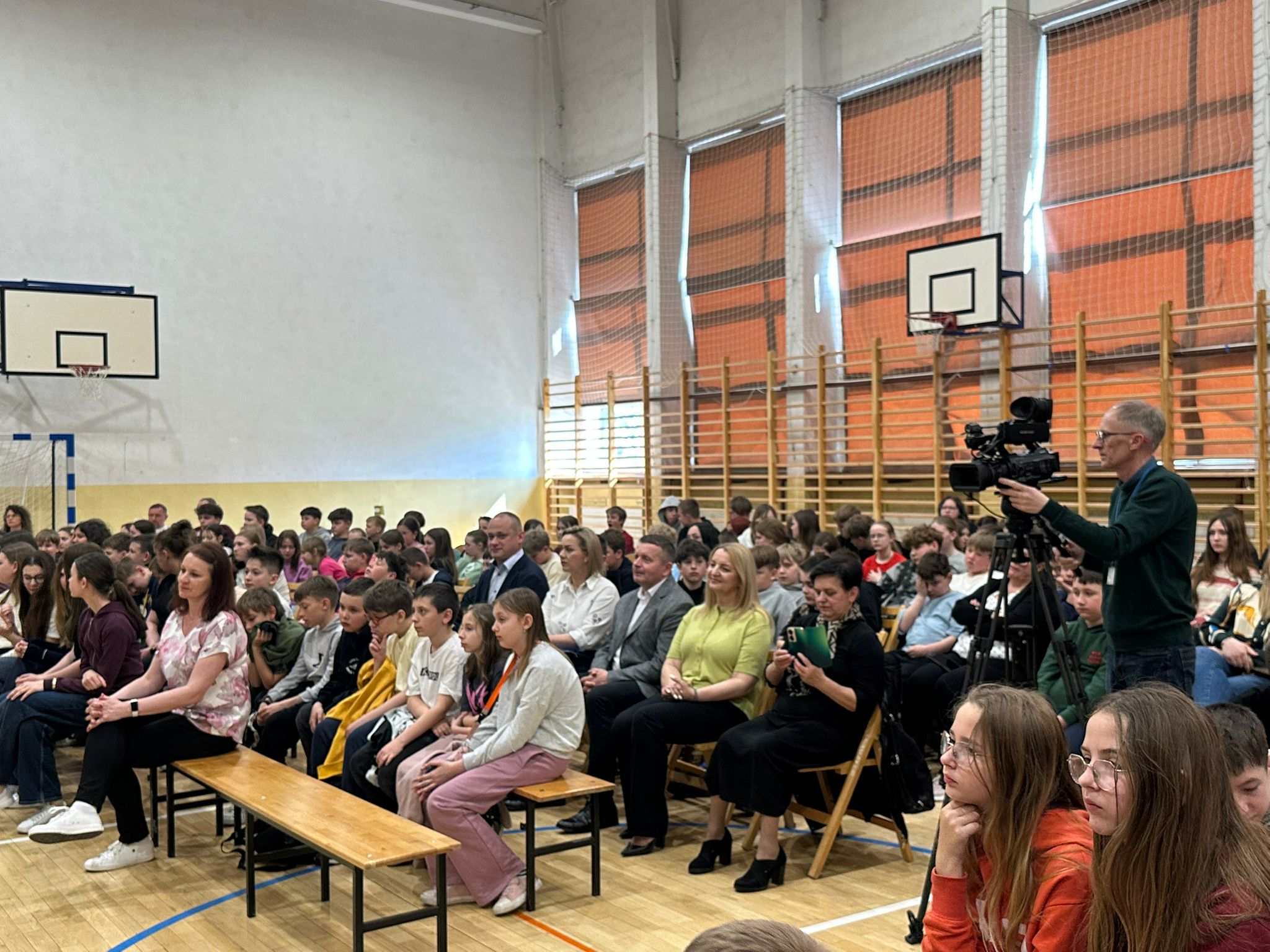 Po zakończonym występie głos zabrał dyrektor szkoły pan Andrzej Suwała, który serdecznie podziękował aktorom za wspaniałe przedstawienie. Następnie poprosił o zabranie głosu zaproszonych gości: Panią Małgorzatę Wolszczak – Dyrektor Wydzialu Edukacji Urzędu Miejskiego w Kozienicach, Panią Annę Janowską – doradcę MSCDN w Radomiu oraz Pana Łukasza Słyka – Przewodniczącego Rady Rodziców. Goście pogratulowali młodym artystom wspaniałego występu, a także pochwalili ich proekologiczne postawy. Głos zabrała również Pani Ewa Włodarczyk, koordynatorka całego wydarzenia, która krótko opowiedziała o przygotowaniach do dzisiejszej prezentacji. Dyrektor szkoły Andrzej Suwała podziękował także wszystkim nauczycielom zaangażowanym w organizację uroczystości i zaprosił zgromadzonych na edukacyjny spacer po przyszkolnej ścieżce przyrodniczej w Edukacyjnych Strefach Zielonych.