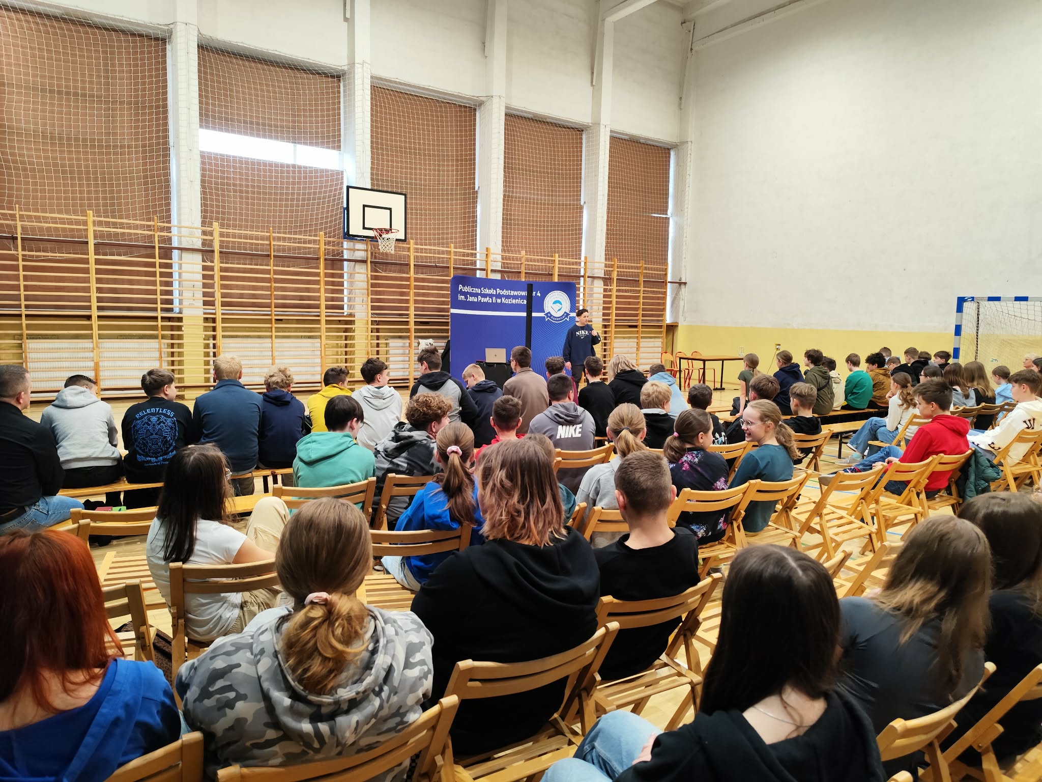 Nie była to zwykła pogadanka – uczniowie poznali prawdziwe historie oraz konkretne mechanizmy związane z uzależnieniami. W przystępny i angażujący sposób poruszone zostały tematy zagrożeń wynikających z używania alkoholu, narkotyków, dopalaczy oraz innych substancji psychoaktywnych.