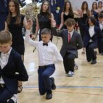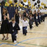 ✨️Kulminacyjnym momentem był uroczysty polonez – przygotowany specjalnie na tę okazję przez uczniów pod czujnym okiem naszych nauczycieli wychowania fizycznego. Układ był pełen finezji i wdzięku, zachwycając wszystkich obecnych. Ten wyjątkowy pokaz ze wzruszeniem oglądali rodzice, którzy zadbali o piękne dekoracje i gustowną oprawę imprezy.