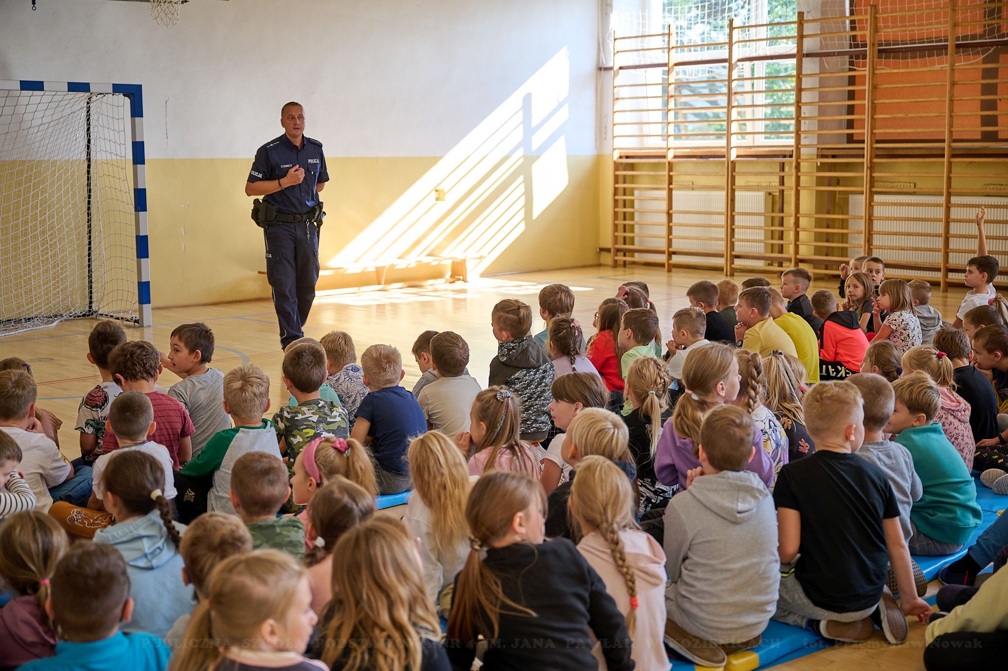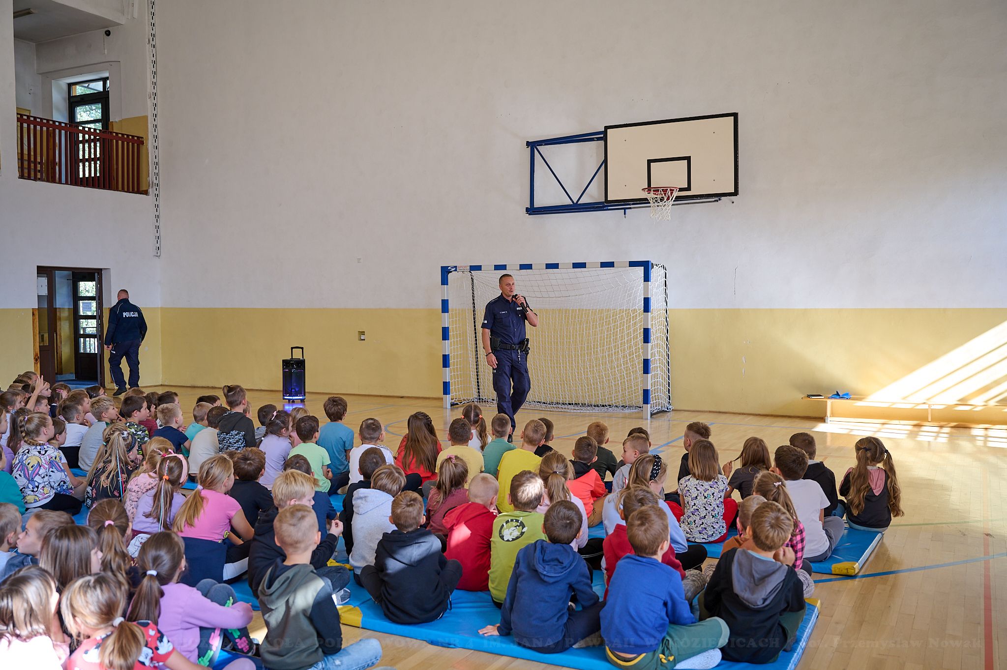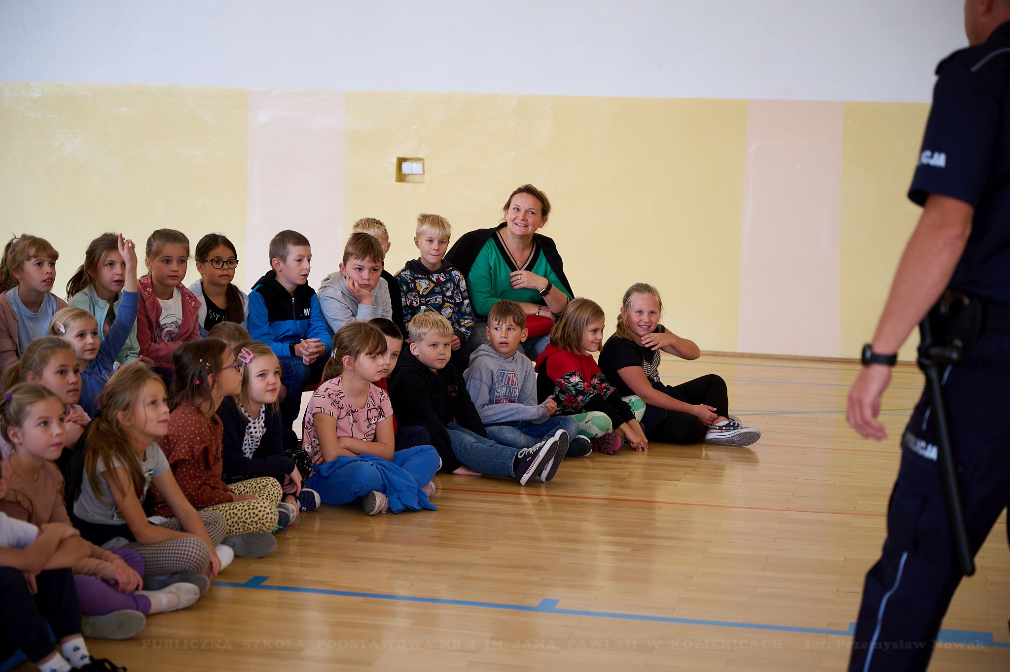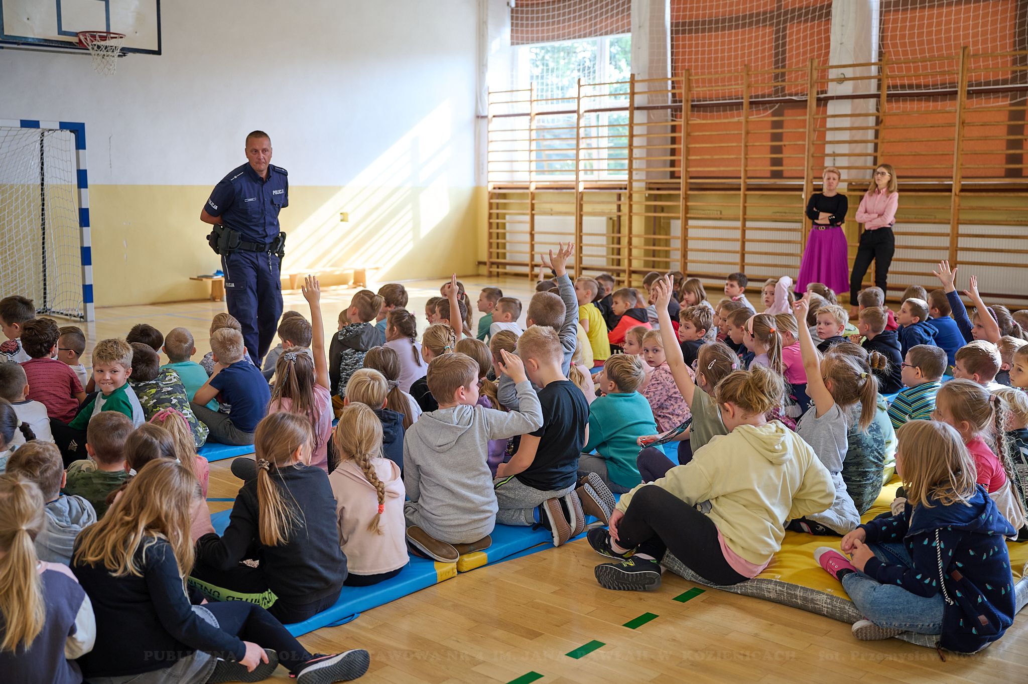 W poniedziałek 19.09.22 r. policjanci z Komendy Powiatowej Policji w Kozienicach przeprowadzili pogadanki z uczniami Szkoły Podstawowej nr 4 w Kozienicach w ramach akcji „Bezpieczna droga do szkoły”. Spotkania z dziećmi były podzielone na 2 grupy, klasy I-III i IV – VIII. Prelekcje miały na celu podniesienie świadomości dzieci na temat zagrożeń, jakie niesie ze sobą niewłaściwe i nieostrożne korzystanie z drogi. Funkcjonariusze wskazali zasady bezpiecznego przechodzenia przez jezdnię oraz jazdy rowerem. Takie zajęcia są dla dzieci zawsze dużą atrakcją, co zachęca je do poznawania zasad ruchu drogowego. Nie do przecenienia jest wiedza funkcjonariuszy , którzy poza omówieniem najważniejszych przepisów, potrafią udzielić dzieciom porad praktycznych oraz wskazać najbardziej niebezpieczne miejsca w rejonie szkoły. Kształtowanie u dzieci właściwych nawyków to żmudna praca, ale opłaca się ją wykonać, bo nawyki te zostają na całe życie .