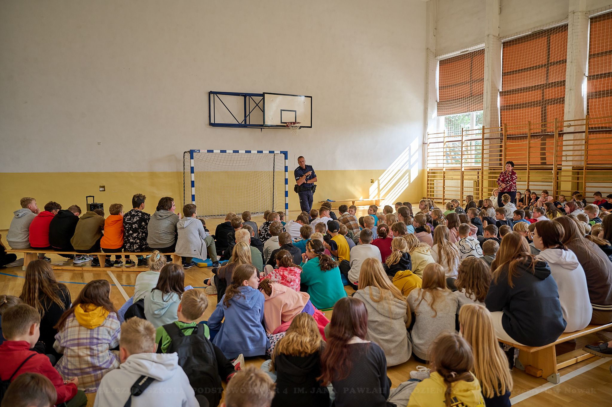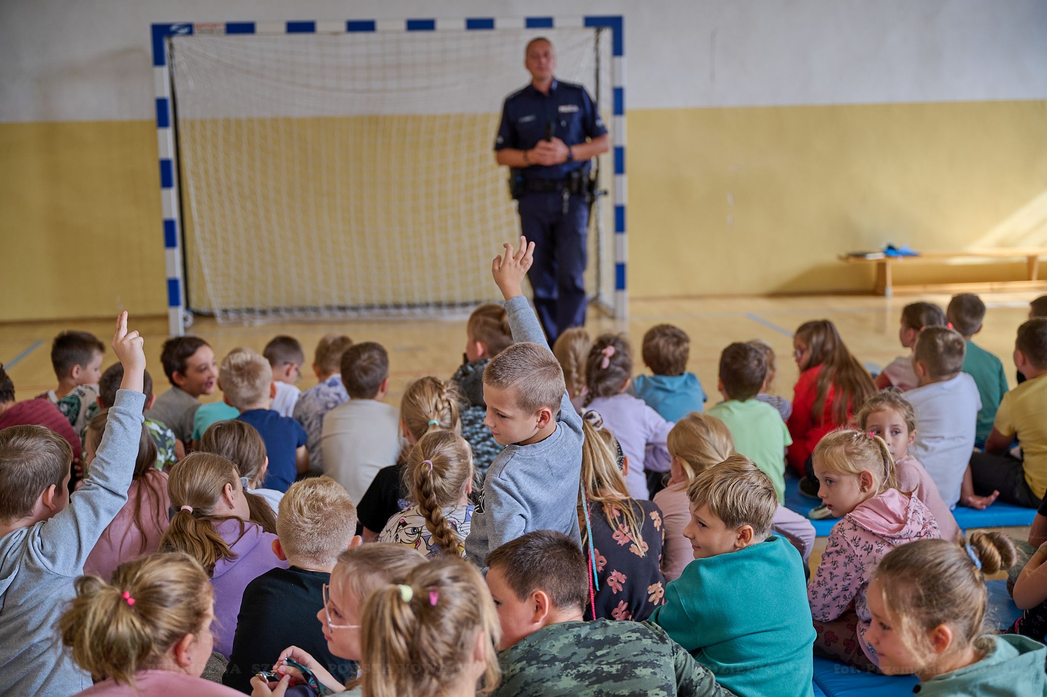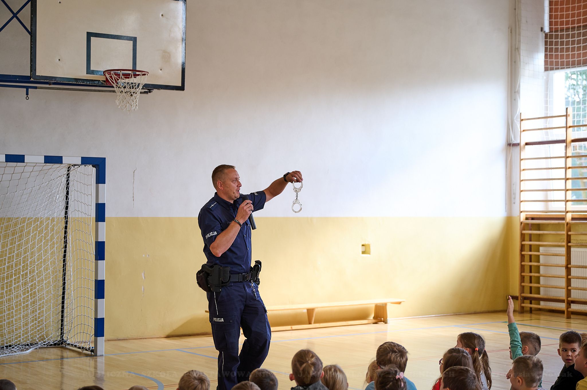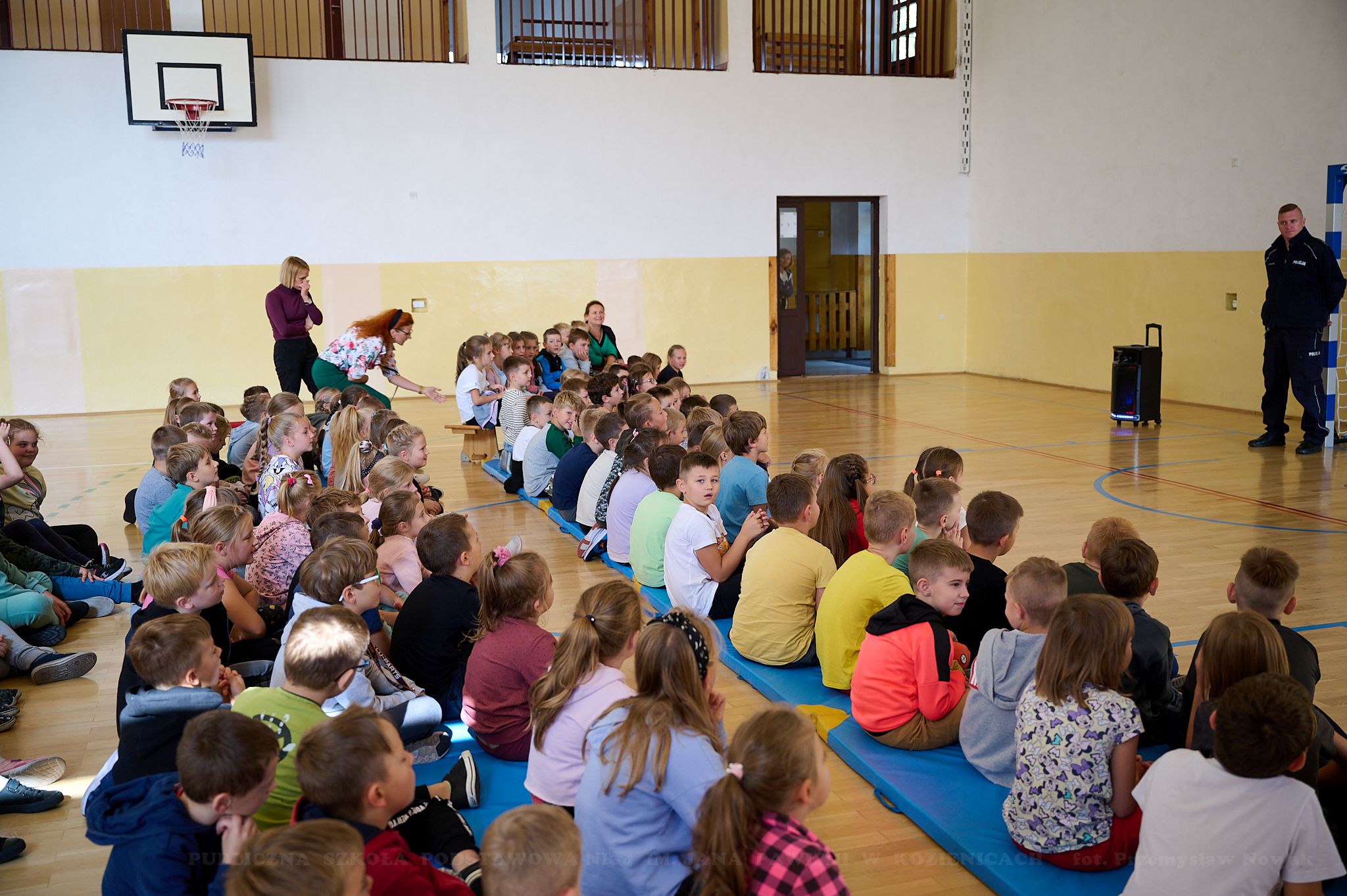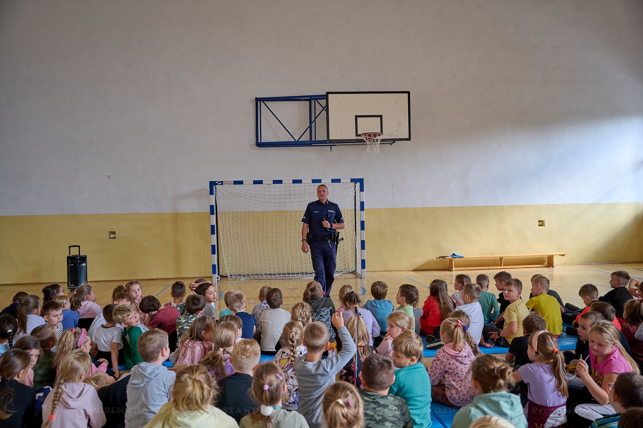 W poniedziałek 19.09.22 r. policjanci z Komendy Powiatowej Policji w Kozienicach przeprowadzili pogadanki z uczniami Szkoły Podstawowej nr 4 w Kozienicach w ramach akcji „Bezpieczna droga do szkoły”. Spotkania z dziećmi były podzielone na 2 grupy, klasy I-III i IV – VIII. Prelekcje miały na celu podniesienie świadomości dzieci na temat zagrożeń, jakie niesie ze sobą niewłaściwe i nieostrożne korzystanie z drogi. Funkcjonariusze wskazali zasady bezpiecznego przechodzenia przez jezdnię oraz jazdy rowerem. Takie zajęcia są dla dzieci zawsze dużą atrakcją, co zachęca je do poznawania zasad ruchu drogowego. Nie do przecenienia jest wiedza funkcjonariuszy , którzy poza omówieniem najważniejszych przepisów, potrafią udzielić dzieciom porad praktycznych oraz wskazać najbardziej niebezpieczne miejsca w rejonie szkoły. Kształtowanie u dzieci właściwych nawyków to żmudna praca, ale opłaca się ją wykonać, bo nawyki te zostają na całe życie .