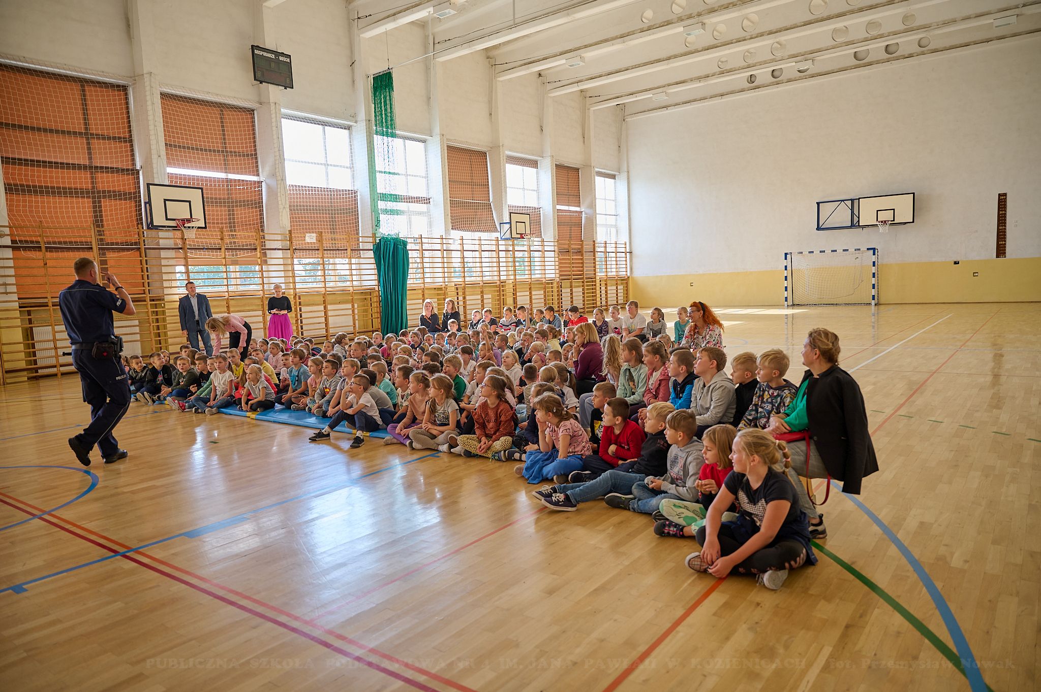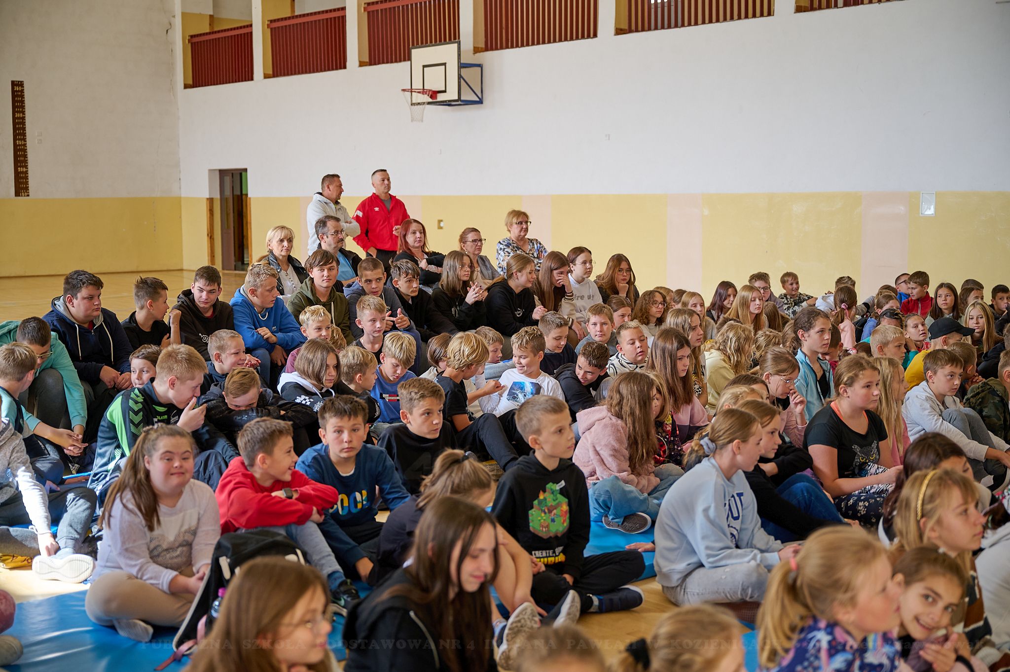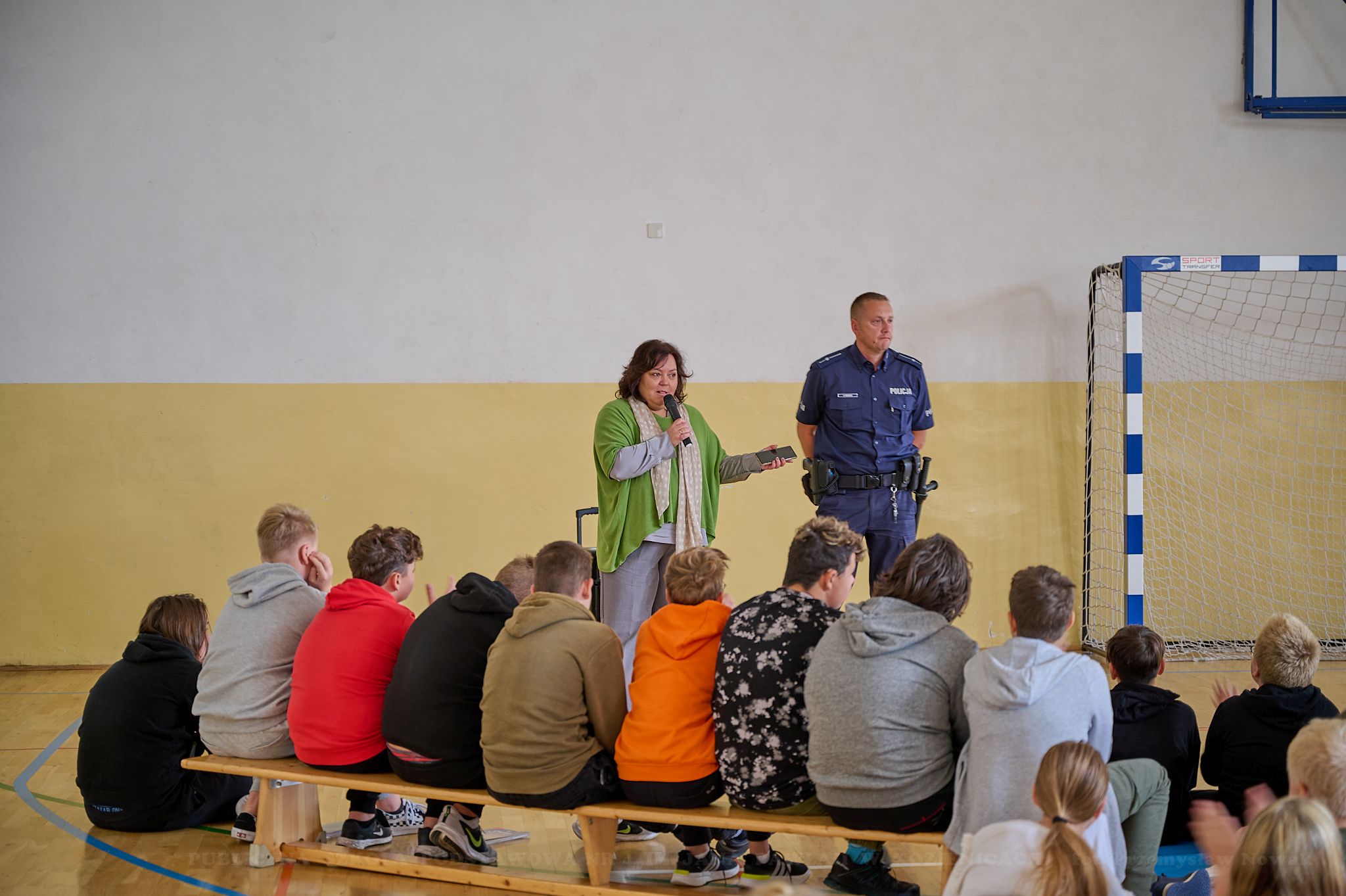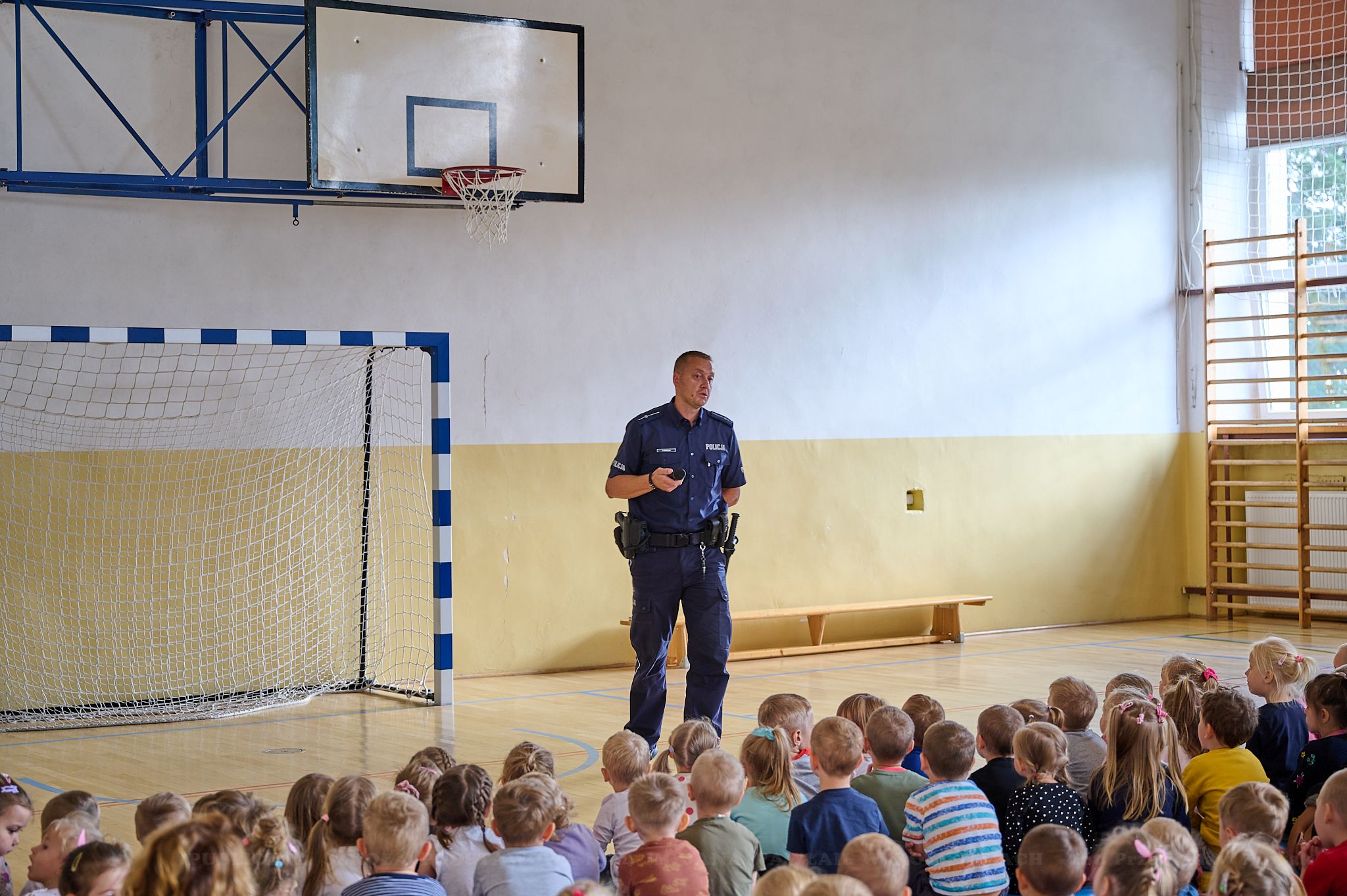 W poniedziałek 19.09.22 r. policjanci z Komendy Powiatowej Policji w Kozienicach przeprowadzili pogadanki z uczniami Szkoły Podstawowej nr 4 w Kozienicach w ramach akcji „Bezpieczna droga do szkoły”. Spotkania z dziećmi były podzielone na 2 grupy, klasy I-III i IV – VIII. Prelekcje miały na celu podniesienie świadomości dzieci na temat zagrożeń, jakie niesie ze sobą niewłaściwe i nieostrożne korzystanie z drogi. Funkcjonariusze wskazali zasady bezpiecznego przechodzenia przez jezdnię oraz jazdy rowerem. Takie zajęcia są dla dzieci zawsze dużą atrakcją, co zachęca je do poznawania zasad ruchu drogowego. Nie do przecenienia jest wiedza funkcjonariuszy , którzy poza omówieniem najważniejszych przepisów, potrafią udzielić dzieciom porad praktycznych oraz wskazać najbardziej niebezpieczne miejsca w rejonie szkoły. Kształtowanie u dzieci właściwych nawyków to żmudna praca, ale opłaca się ją wykonać, bo nawyki te zostają na całe życie .