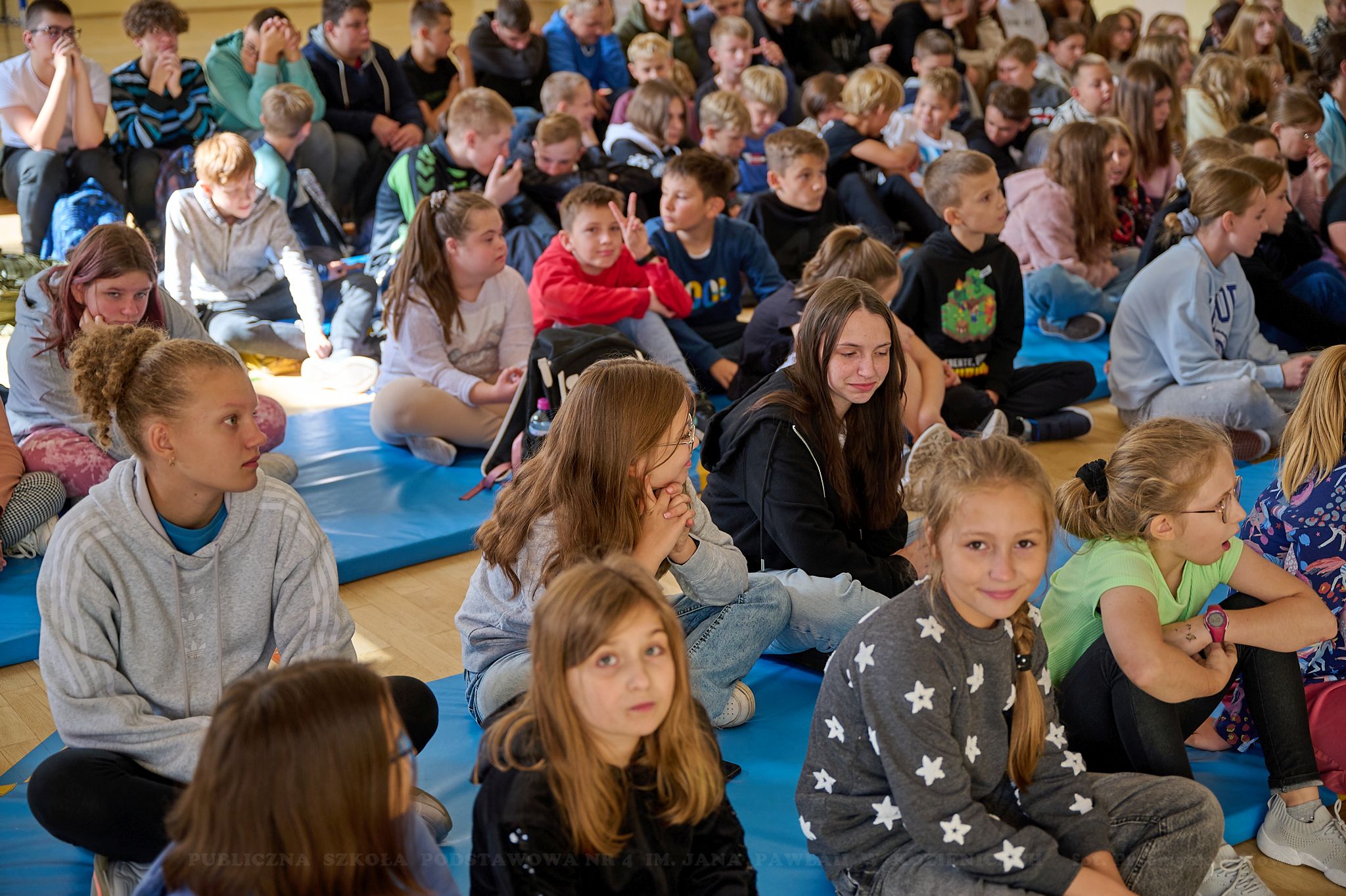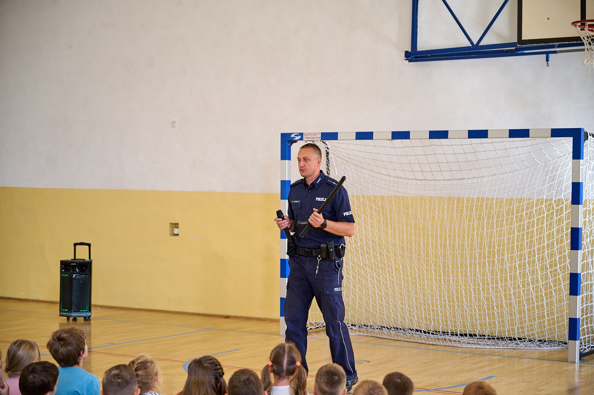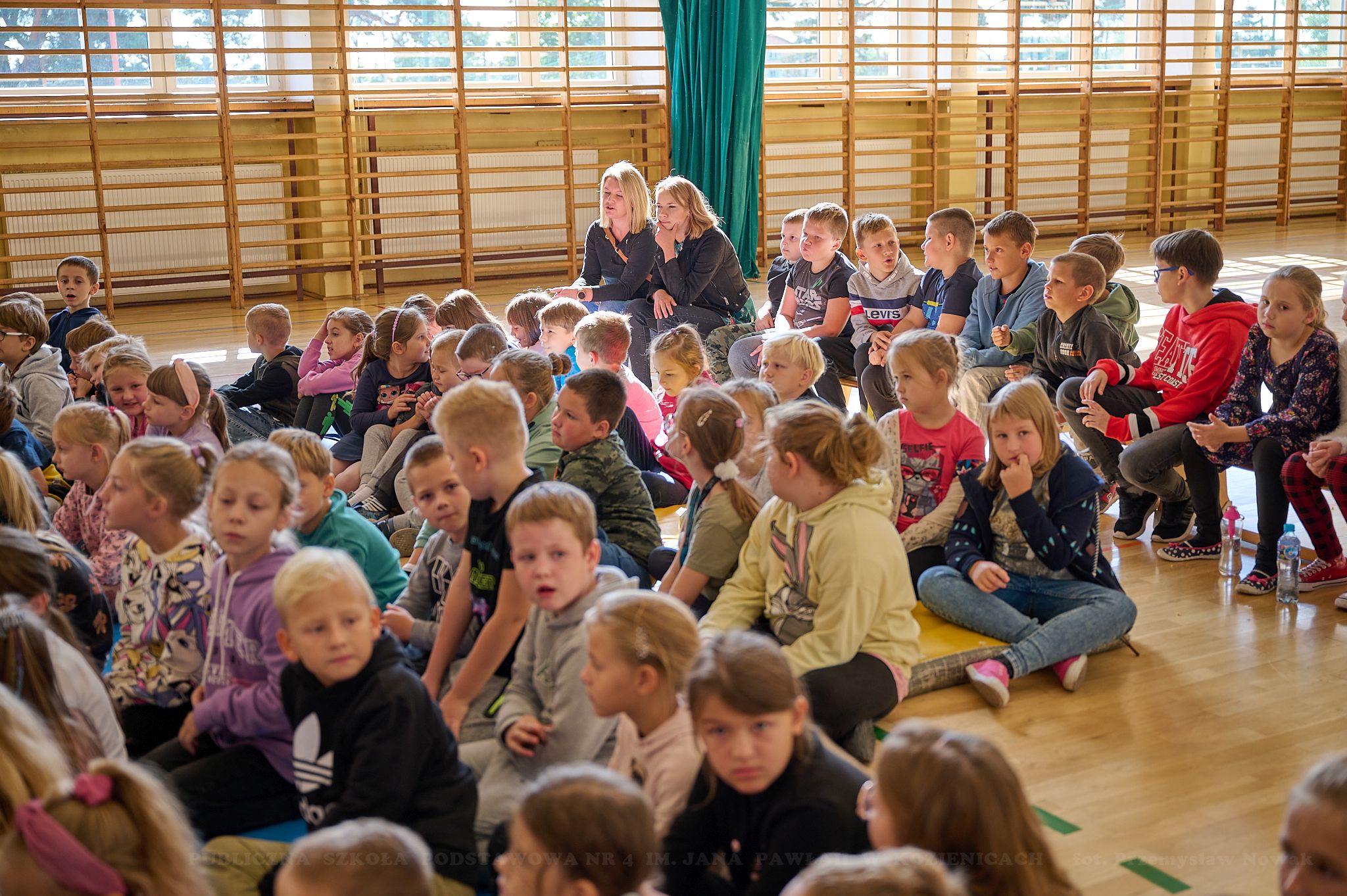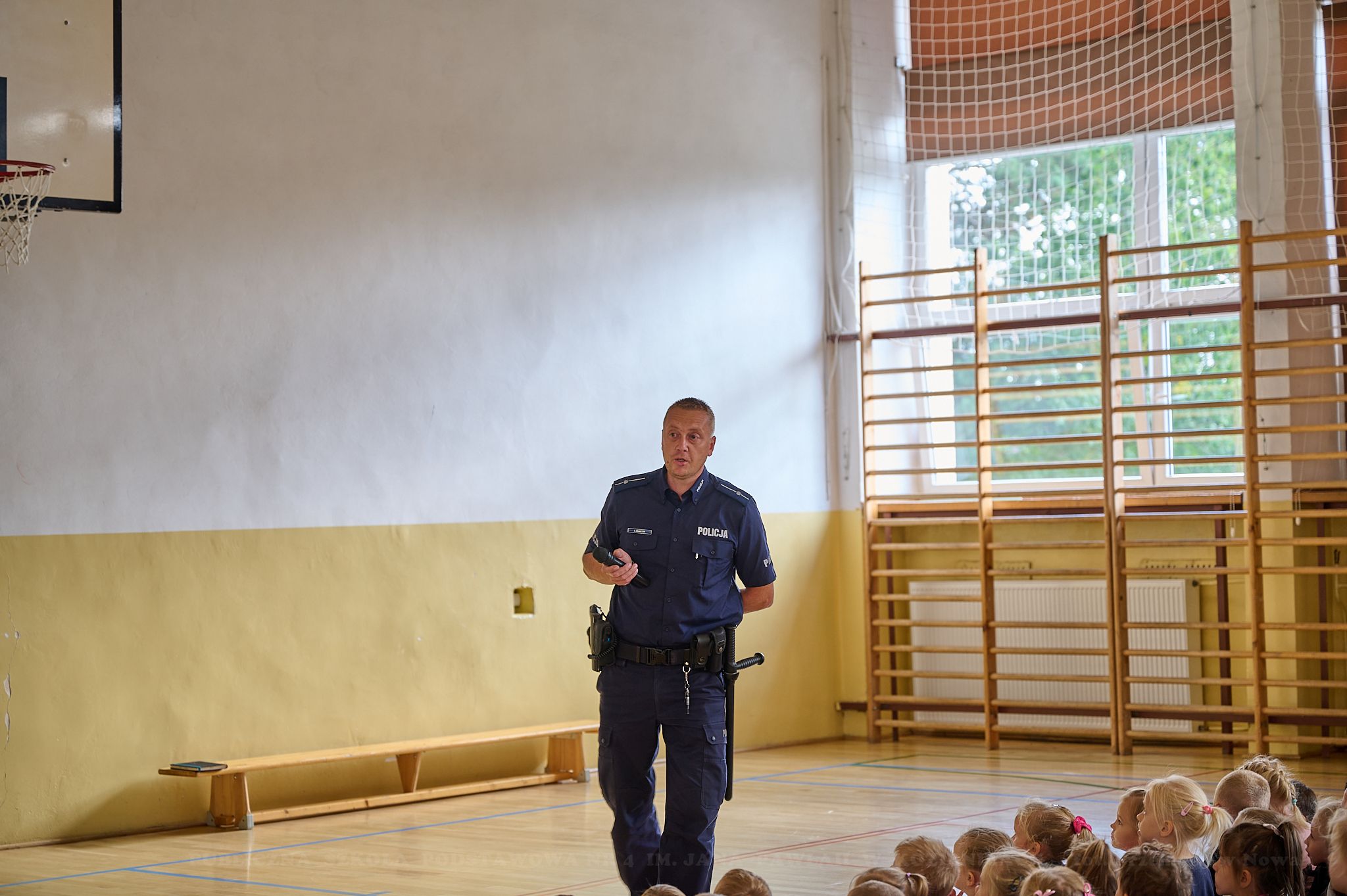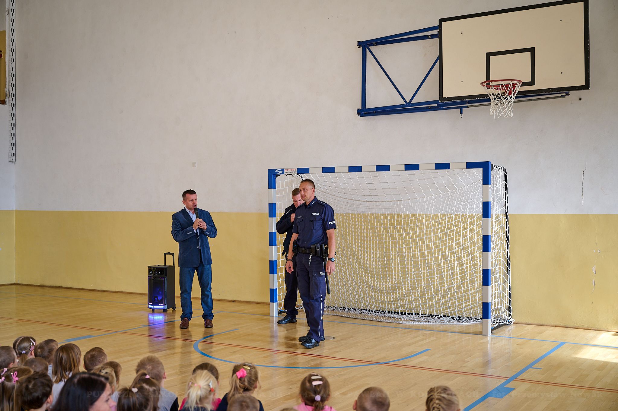 W poniedziałek 19.09.22 r. policjanci z Komendy Powiatowej Policji w Kozienicach przeprowadzili pogadanki z uczniami Szkoły Podstawowej nr 4 w Kozienicach w ramach akcji „Bezpieczna droga do szkoły”. Spotkania z dziećmi były podzielone na 2 grupy, klasy I-III i IV – VIII. Prelekcje miały na celu podniesienie świadomości dzieci na temat zagrożeń, jakie niesie ze sobą niewłaściwe i nieostrożne korzystanie z drogi. Funkcjonariusze wskazali zasady bezpiecznego przechodzenia przez jezdnię oraz jazdy rowerem. Takie zajęcia są dla dzieci zawsze dużą atrakcją, co zachęca je do poznawania zasad ruchu drogowego. Nie do przecenienia jest wiedza funkcjonariuszy , którzy poza omówieniem najważniejszych przepisów, potrafią udzielić dzieciom porad praktycznych oraz wskazać najbardziej niebezpieczne miejsca w rejonie szkoły. Kształtowanie u dzieci właściwych nawyków to żmudna praca, ale opłaca się ją wykonać, bo nawyki te zostają na całe życie .