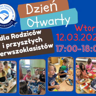 Serdecznie zapraszamy na Dzień otwarty 12 marca br.(wtorek) odbędzie się Dzień Otwarty dla przyszłych pierwszoklasistów oraz Dzień Otwarty dla rodziców obecnych uczniów (z 14 marca na 12 marca ) : 16.30 – 17.30 –...