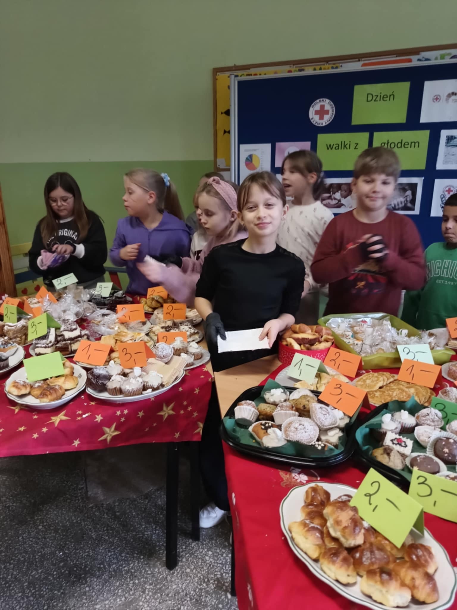 W dniu 02.12.2024 roku, w PSP nr 4, odbył się charytatywny kiermasz ciast w ramach obchodów ,,Dni walki z głodem’’ zorganizowany przez Szkolne Koło PCK. Celem tego wydarzenia było wsparcie działań podejmowanych przez Rejonowy Oddział Polskiego Czerwonego Krzyża z siedzibą w Kozienicach. Kiermasz był owocem wspólnych wysiłków rodziców, uczniów oraz nauczycieli, którzy z ogromnym zaangażowaniem przygotowywali różnorodne smakołyki, aby wesprzeć szlachetny cel. Na stoiskach można było znaleźć rozmaite ciasta, ciasteczka, babeczki i inne pyszności.