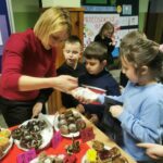 W związku z corocznie odbywającym się Światowym Dniem Żywienia i Walki z Głodem w naszej szkole w dniu 28 listopada przeprowadzona została zorganizowana przez Szkolne Koło PCK akcja pod hasłem ,,Dzień Walki z Głodem’’. Głównym celem, który przyświecał naszemu przedsięwzięciu, było zwrócenie uwagi na fakt, iż problem głodu i niedożywienia, z którym boryka się wiele osób nie tylko na świecie, ale również w naszym lokalnym środowisku, nie jest nam obojętny. Nam…czyli całej społeczności szkolnej – uczniom i rodzicom, bez których pomocy i wsparcia nasza akcja nie odniosłaby aż tak ogromnego sukcesu. Na kiermaszu słodkości zagościły pyszne domowe szarlotki, korzenne pierniczki, kolorowe babeczki, kruche ciasteczka, drożdżowe ślimaczki, francuskie rogaliki i wiele innych niezliczonych domowych wypieków, które przyciągnęły całą rzeszę amatorów łakoci. Słodkości znikały w błyskawicznym tempie i tak samo szybko rosła kwota zbierana ze sprzedaży, która ostatecznie wyniosła 1670 zł. Pozyskane środki zostaną przekazane do Zarządu Rejonowego PCK w Kozienicach i przeznaczone na dożywienie najbiedniejszych dzieci naszego kraju, ze szczególnym uwzględnieniem regionów dotkniętych bezrobociem. Serdeczne podziękowania kierujemy w stronę Rodziców, którzy zechcieli poświęcić swój czas i tak prężnie zaangażowali się w naszą akcję. Dziękujemy również wszystkim, którzy wsparli nas swoją obecnością, wspólnie z nami czynili dobro. Organizatorkami akcji były panie Sylwia Kalbarczyk i Małgorzata Sienkiewicz wspierane prze uczennice klasy 8 b Zosię Lenarczyk, Lenę Wziątek i Dominikę Zaporę.