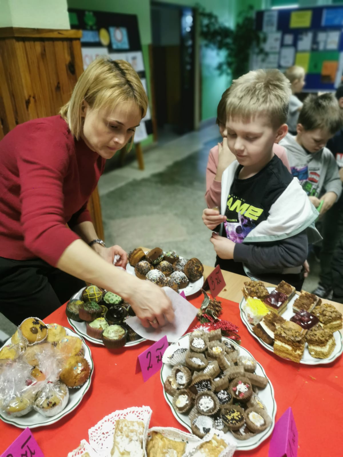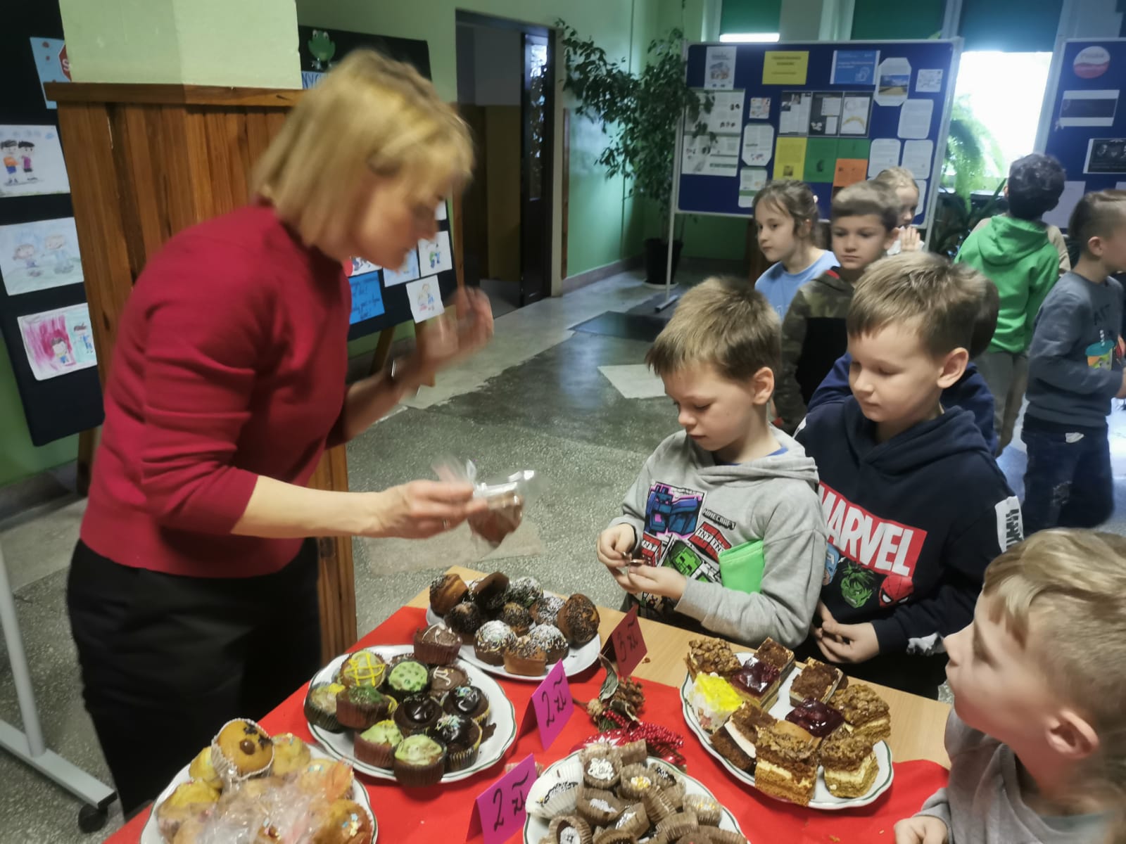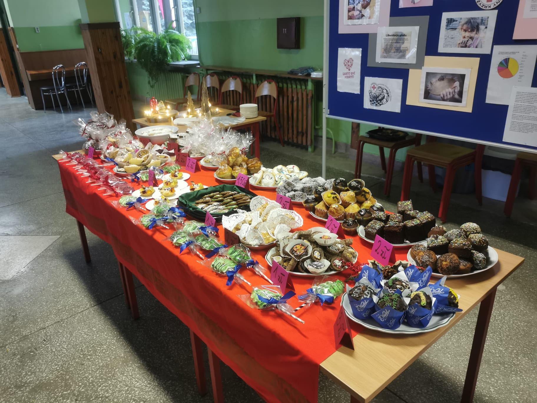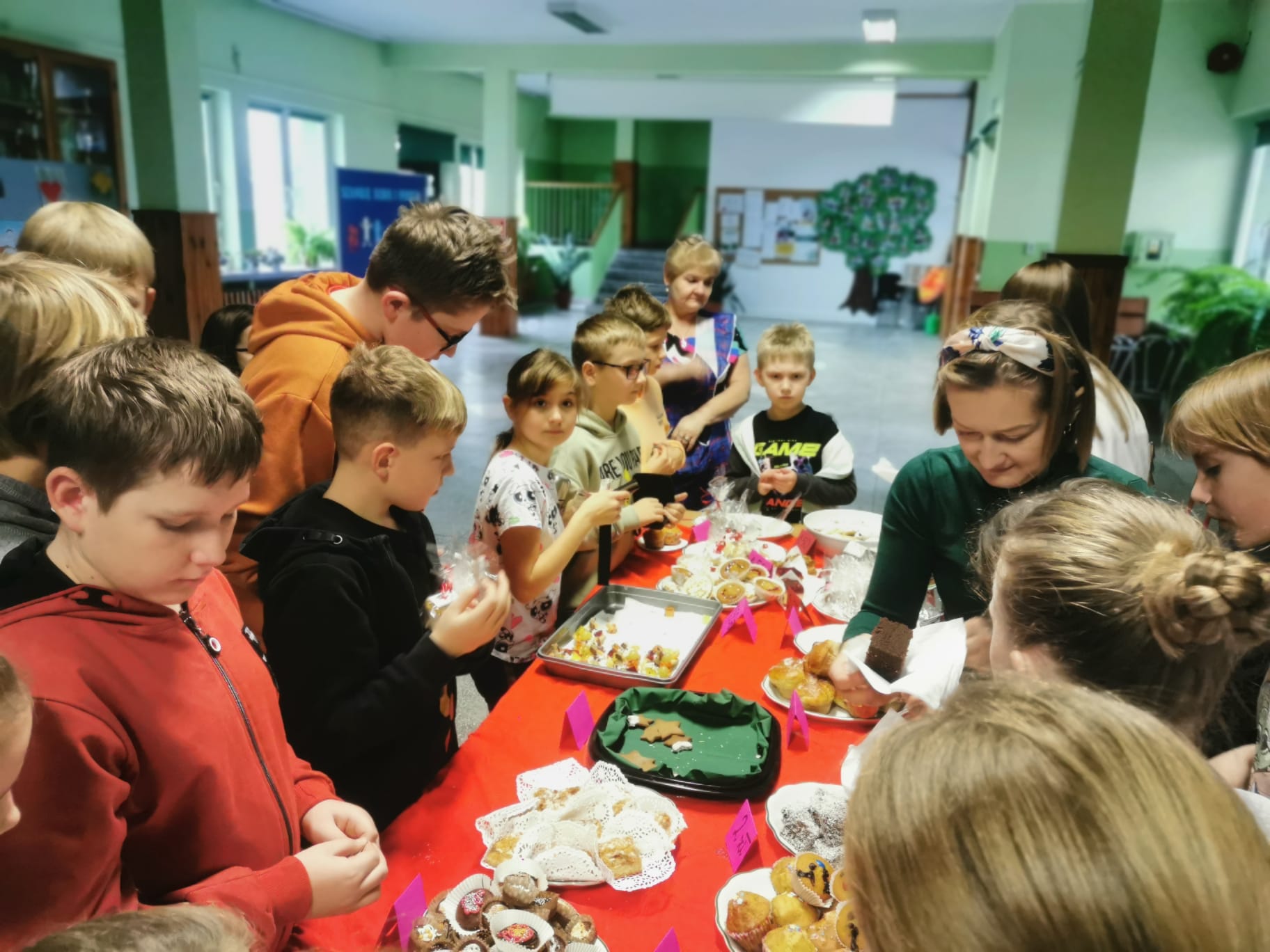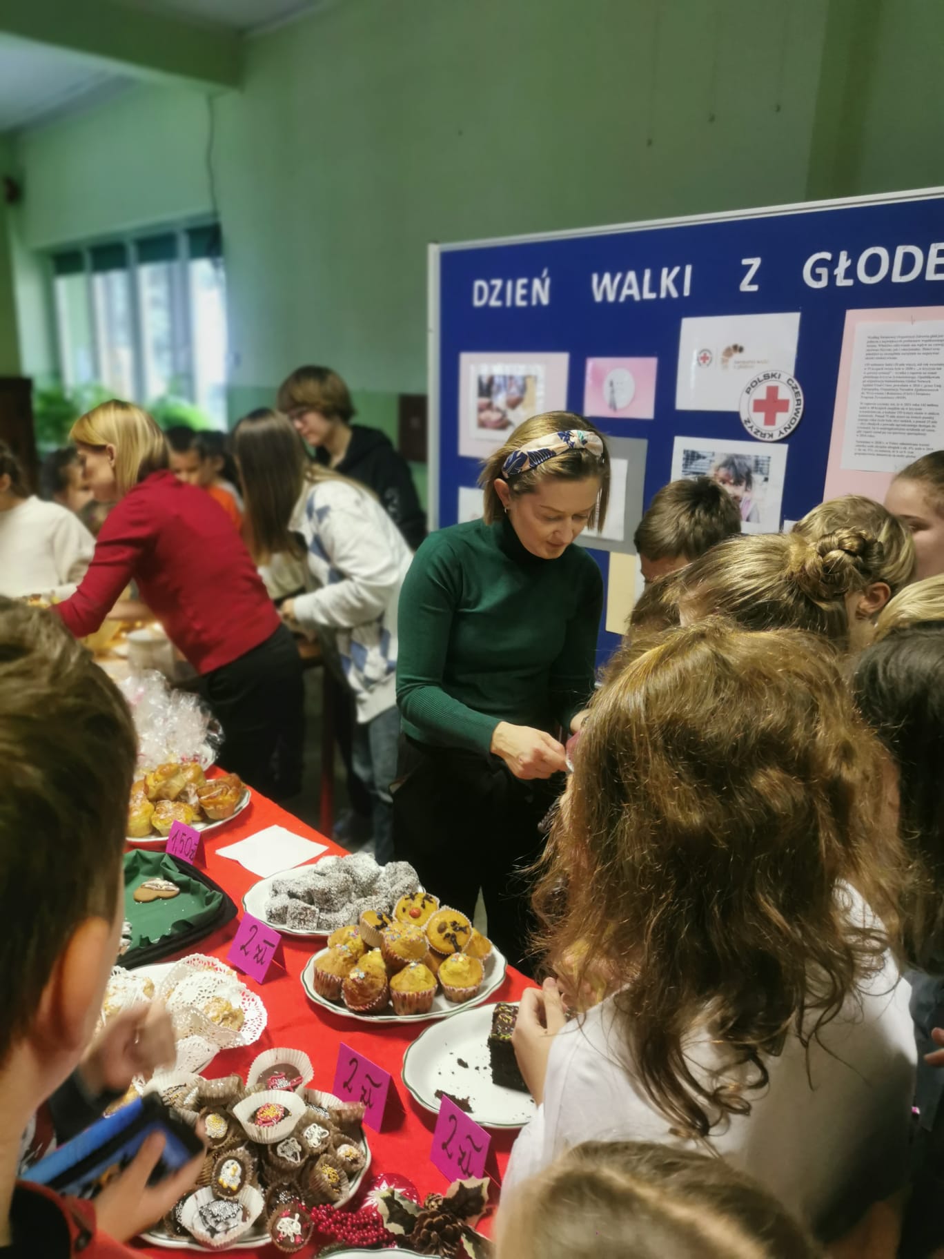 W związku z corocznie odbywającym się Światowym Dniem Żywienia i Walki z Głodem w naszej szkole w dniu 28 listopada przeprowadzona została zorganizowana przez Szkolne Koło PCK akcja pod hasłem ,,Dzień Walki z Głodem’’. Głównym celem, który przyświecał naszemu przedsięwzięciu, było zwrócenie uwagi na fakt, iż problem głodu i niedożywienia, z którym boryka się wiele osób nie tylko na świecie, ale również w naszym lokalnym środowisku, nie jest nam obojętny. Nam…czyli całej społeczności szkolnej – uczniom i rodzicom, bez których pomocy i wsparcia nasza akcja nie odniosłaby aż tak ogromnego sukcesu. Na kiermaszu słodkości zagościły pyszne domowe szarlotki, korzenne pierniczki, kolorowe babeczki, kruche ciasteczka, drożdżowe ślimaczki, francuskie rogaliki i wiele innych niezliczonych domowych wypieków, które przyciągnęły całą rzeszę amatorów łakoci. Słodkości znikały w błyskawicznym tempie i tak samo szybko rosła kwota zbierana ze sprzedaży, która ostatecznie wyniosła 1670 zł. Pozyskane środki zostaną przekazane do Zarządu Rejonowego PCK w Kozienicach i przeznaczone na dożywienie najbiedniejszych dzieci naszego kraju, ze szczególnym uwzględnieniem regionów dotkniętych bezrobociem. Serdeczne podziękowania kierujemy w stronę Rodziców, którzy zechcieli poświęcić swój czas i tak prężnie zaangażowali się w naszą akcję. Dziękujemy również wszystkim, którzy wsparli nas swoją obecnością, wspólnie z nami czynili dobro. Organizatorkami akcji były panie Sylwia Kalbarczyk i Małgorzata Sienkiewicz wspierane prze uczennice klasy 8 b Zosię Lenarczyk, Lenę Wziątek i Dominikę Zaporę.