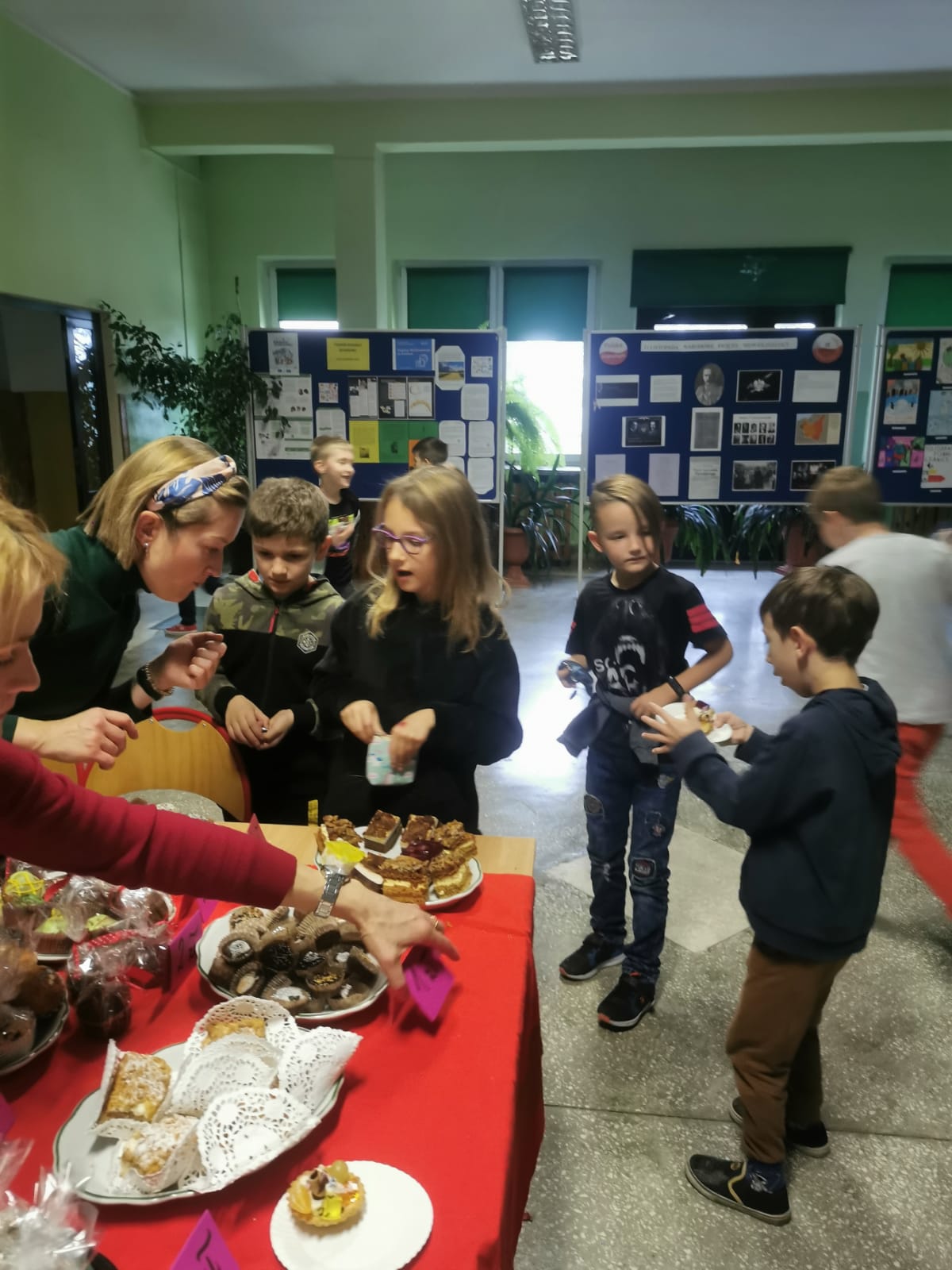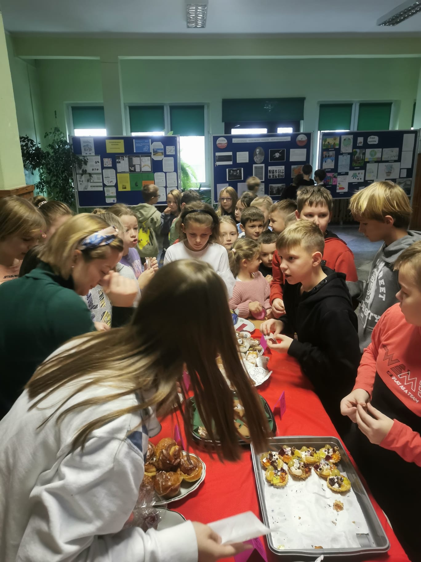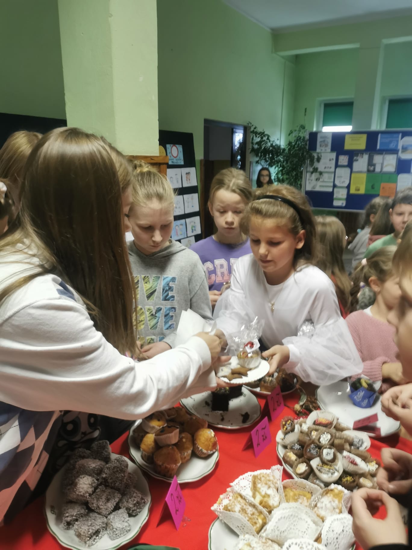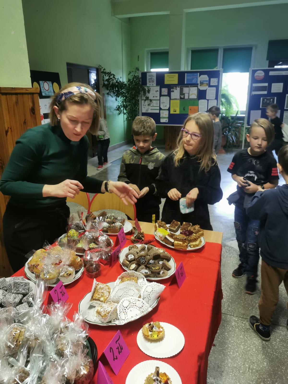 W związku z corocznie odbywającym się Światowym Dniem Żywienia i Walki z Głodem w naszej szkole w dniu 28 listopada przeprowadzona została zorganizowana przez Szkolne Koło PCK akcja pod hasłem ,,Dzień Walki z Głodem’’. Głównym celem, który przyświecał naszemu przedsięwzięciu, było zwrócenie uwagi na fakt, iż problem głodu i niedożywienia, z którym boryka się wiele osób nie tylko na świecie, ale również w naszym lokalnym środowisku, nie jest nam obojętny. Nam…czyli całej społeczności szkolnej – uczniom i rodzicom, bez których pomocy i wsparcia nasza akcja nie odniosłaby aż tak ogromnego sukcesu. Na kiermaszu słodkości zagościły pyszne domowe szarlotki, korzenne pierniczki, kolorowe babeczki, kruche ciasteczka, drożdżowe ślimaczki, francuskie rogaliki i wiele innych niezliczonych domowych wypieków, które przyciągnęły całą rzeszę amatorów łakoci. Słodkości znikały w błyskawicznym tempie i tak samo szybko rosła kwota zbierana ze sprzedaży, która ostatecznie wyniosła 1670 zł. Pozyskane środki zostaną przekazane do Zarządu Rejonowego PCK w Kozienicach i przeznaczone na dożywienie najbiedniejszych dzieci naszego kraju, ze szczególnym uwzględnieniem regionów dotkniętych bezrobociem. Serdeczne podziękowania kierujemy w stronę Rodziców, którzy zechcieli poświęcić swój czas i tak prężnie zaangażowali się w naszą akcję. Dziękujemy również wszystkim, którzy wsparli nas swoją obecnością, wspólnie z nami czynili dobro. Organizatorkami akcji były panie Sylwia Kalbarczyk i Małgorzata Sienkiewicz wspierane prze uczennice klasy 8 b Zosię Lenarczyk, Lenę Wziątek i Dominikę Zaporę.