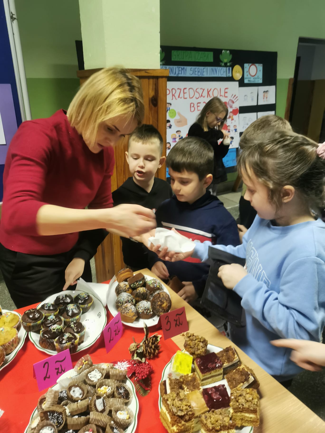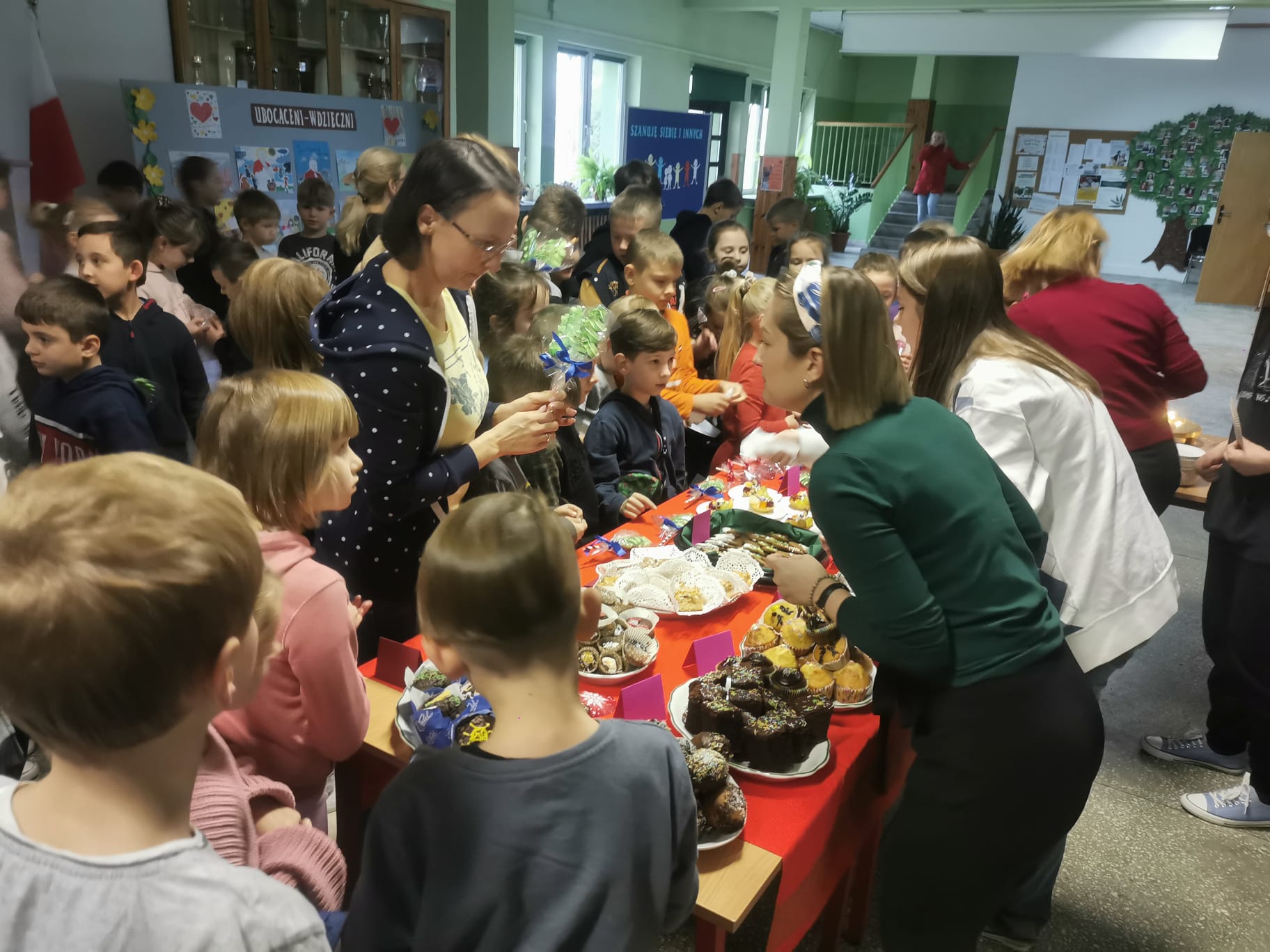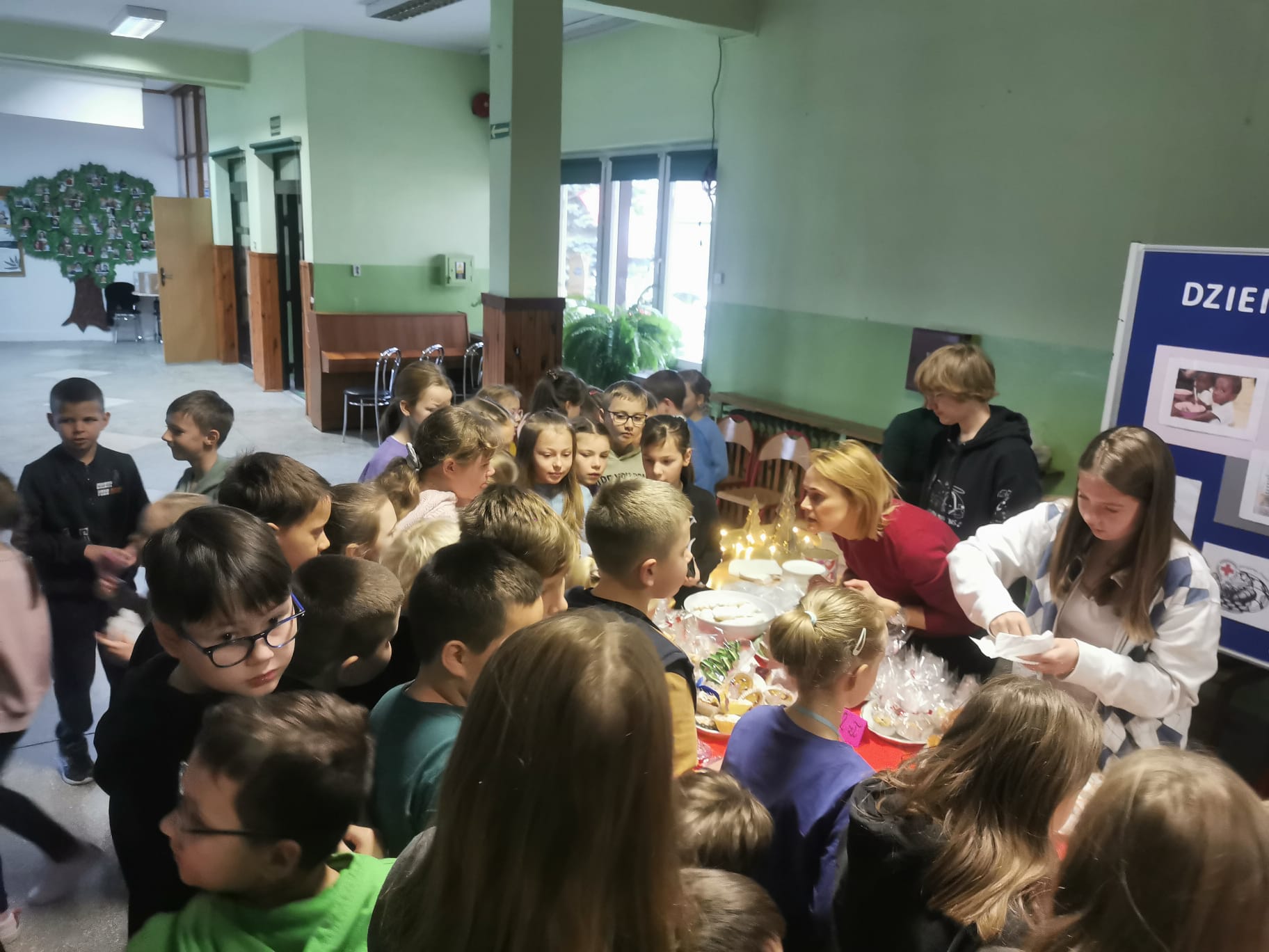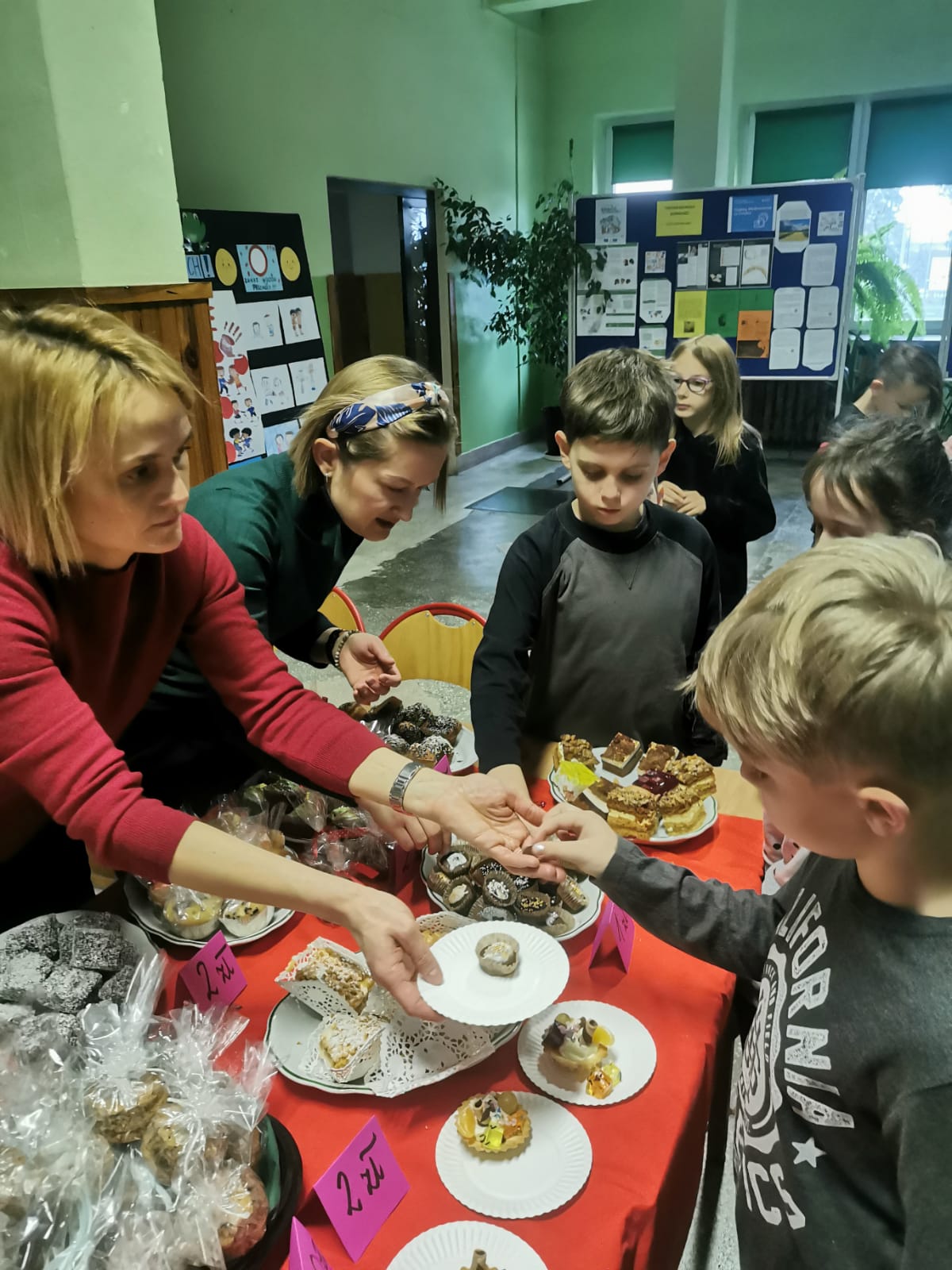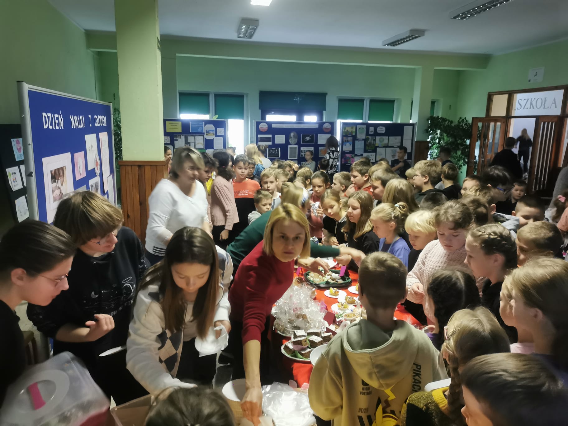 W związku z corocznie odbywającym się Światowym Dniem Żywienia i Walki z Głodem w naszej szkole w dniu 28 listopada przeprowadzona została zorganizowana przez Szkolne Koło PCK akcja pod hasłem ,,Dzień Walki z Głodem’’. Głównym celem, który przyświecał naszemu przedsięwzięciu, było zwrócenie uwagi na fakt, iż problem głodu i niedożywienia, z którym boryka się wiele osób nie tylko na świecie, ale również w naszym lokalnym środowisku, nie jest nam obojętny. Nam…czyli całej społeczności szkolnej – uczniom i rodzicom, bez których pomocy i wsparcia nasza akcja nie odniosłaby aż tak ogromnego sukcesu. Na kiermaszu słodkości zagościły pyszne domowe szarlotki, korzenne pierniczki, kolorowe babeczki, kruche ciasteczka, drożdżowe ślimaczki, francuskie rogaliki i wiele innych niezliczonych domowych wypieków, które przyciągnęły całą rzeszę amatorów łakoci. Słodkości znikały w błyskawicznym tempie i tak samo szybko rosła kwota zbierana ze sprzedaży, która ostatecznie wyniosła 1670 zł. Pozyskane środki zostaną przekazane do Zarządu Rejonowego PCK w Kozienicach i przeznaczone na dożywienie najbiedniejszych dzieci naszego kraju, ze szczególnym uwzględnieniem regionów dotkniętych bezrobociem. Serdeczne podziękowania kierujemy w stronę Rodziców, którzy zechcieli poświęcić swój czas i tak prężnie zaangażowali się w naszą akcję. Dziękujemy również wszystkim, którzy wsparli nas swoją obecnością, wspólnie z nami czynili dobro. Organizatorkami akcji były panie Sylwia Kalbarczyk i Małgorzata Sienkiewicz wspierane prze uczennice klasy 8 b Zosię Lenarczyk, Lenę Wziątek i Dominikę Zaporę.