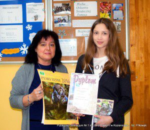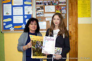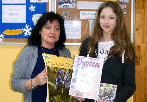 Nasza uczennica Weronika Gołębiowska z klasy II a zdobyła wyróżnienie w etapie regionalnym XXIX edycji Ogólnopolskiego konkursu „Mój Las”. Konkurs ten miał na celu poszerzenie wiedzy przyrodniczo- ekologiczno- leśnej, promowanie walorów przyrodniczo- turystycznych polskich lasów oraz podejmowania działań na rzecz ochrony środowiska. W ramach konkursu należało wykonać pracę na temat: „ Las miejscem pracy, wypoczynku i ostoją dzikiej przyrody”. Praca Weroniki w ciekawy sposób uzupełniona została licznymi fotografiami. Opiekunem pracy była p. Iwona Bitner.