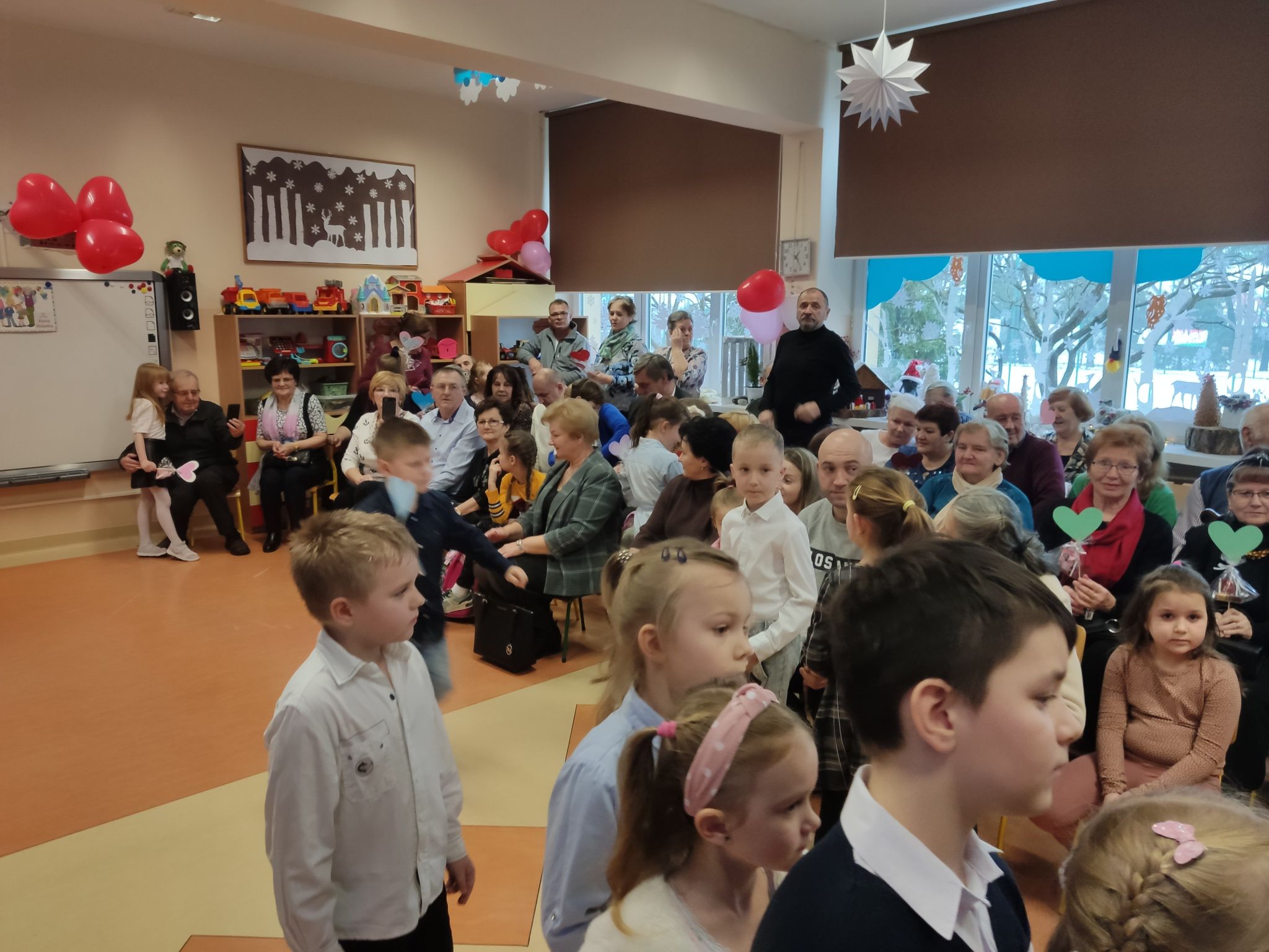 wiersze i montaże słowno-muzyczne ukazujące ich miłość, wdzięczność i życzenia długiego życia dla Dziadków. 4-letnie Słoneczka dodatkowo przygotowały inscenizację o 12 miesiącach. Ich równolatki Biedronki, w tym roku zaprosiły swoje Babcie i Dziadków na Bal Karnawałowy. Podczas jego trwania nasi seniorzy mogli potańczyć z wnukami, ze sobą nawzajem, jak również powrócić wspomnieniami do młodzieńczych lat przy muzyce Krzysztofa Krawczyka, Jerzego Połomskiego, czy Marii Koterbskiej.