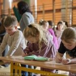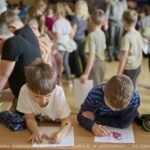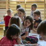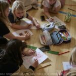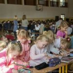 W trakcie trwania akademii dzieci z młodszych klas rysowały hasła dotyczące bezpieczeństwa w internecie