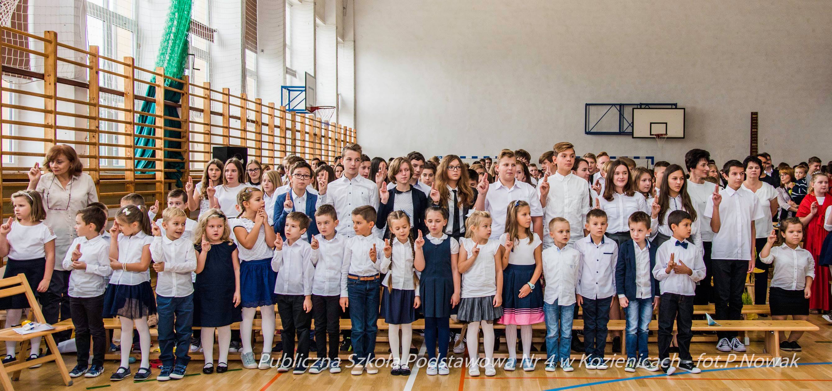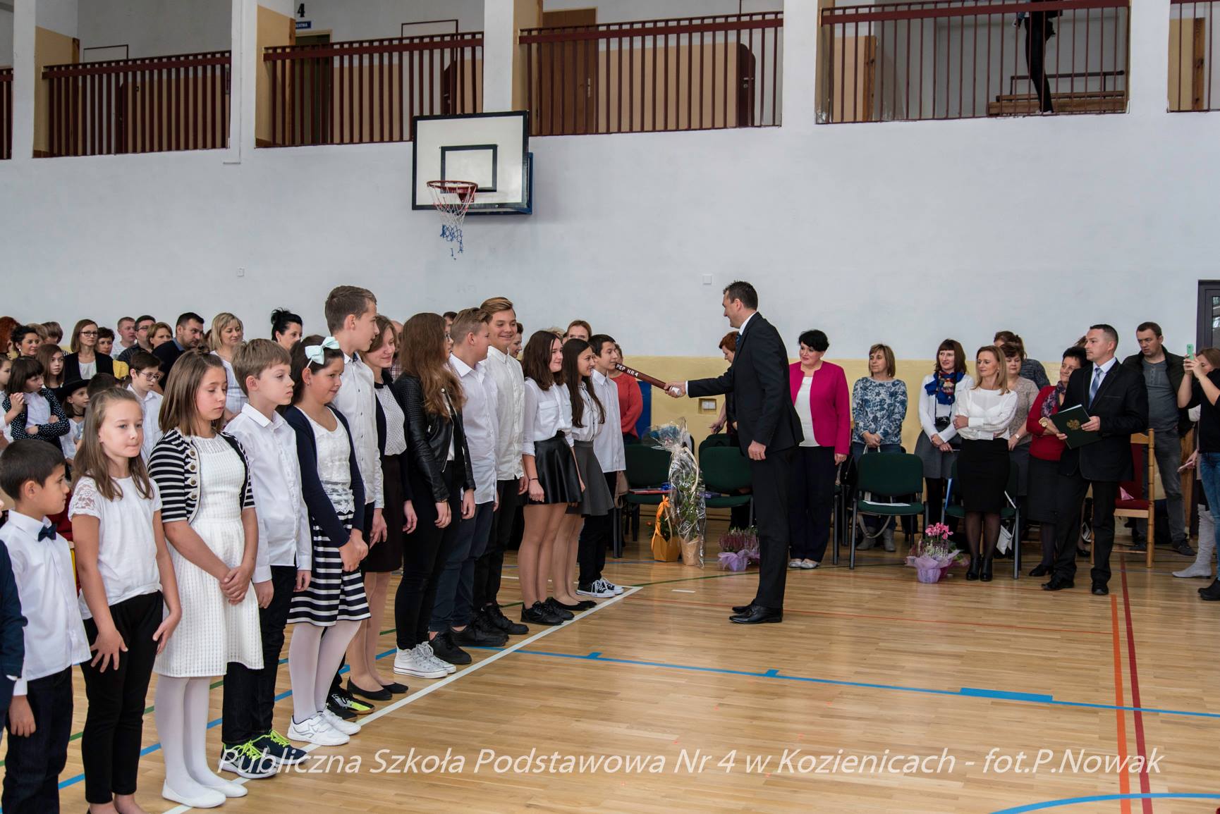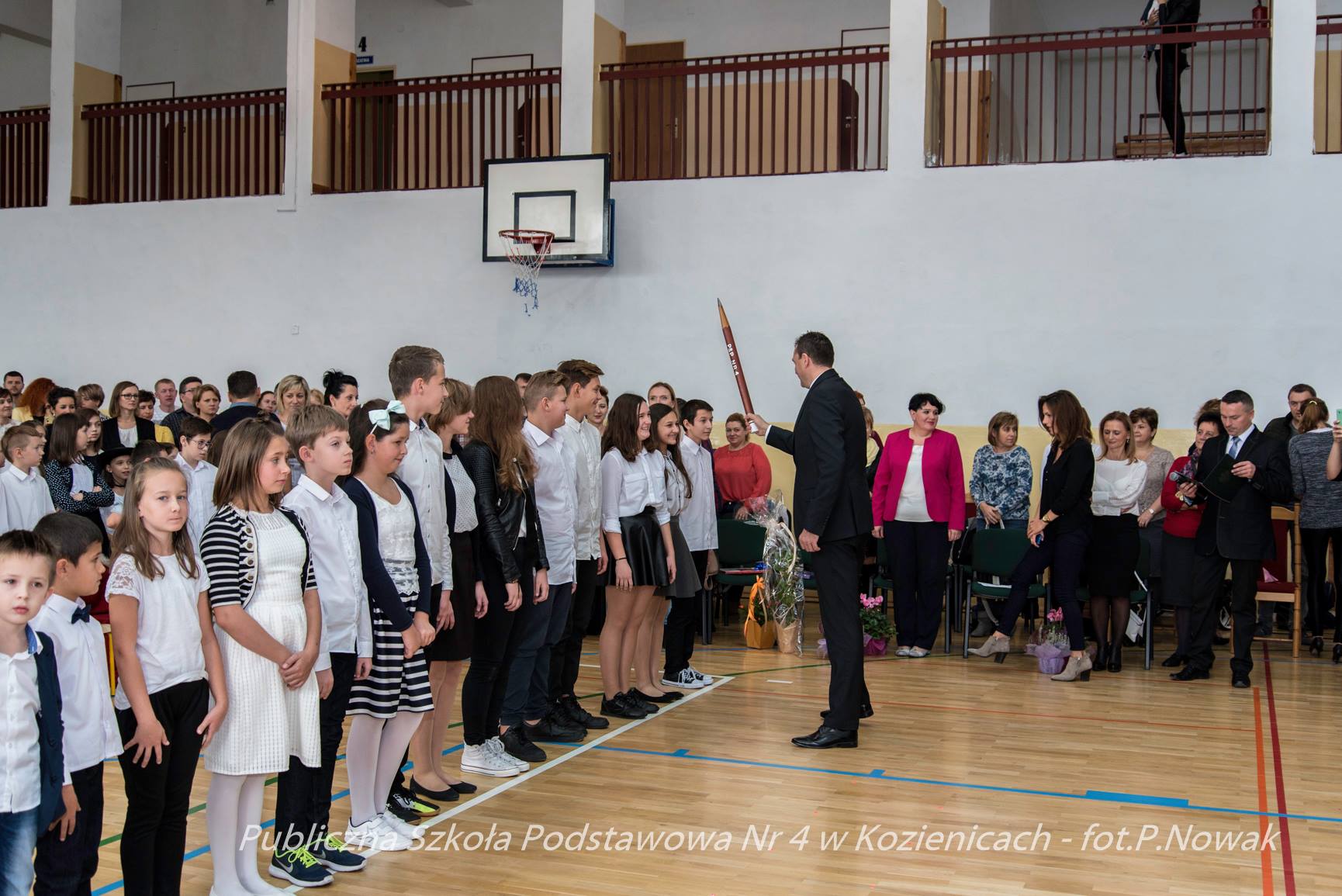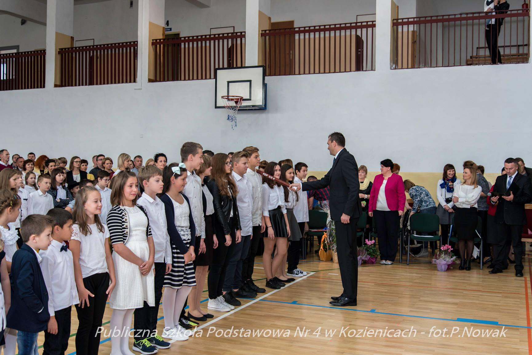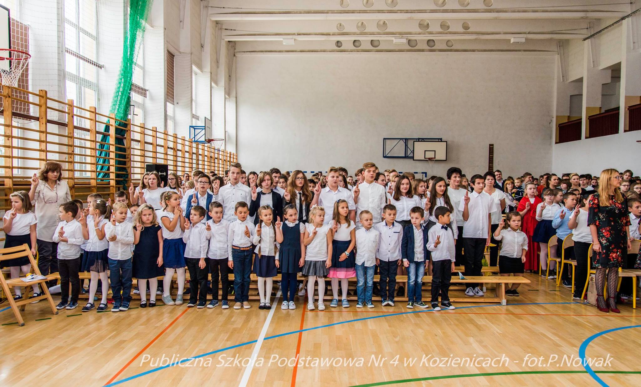 Ważną częścią uroczystości było odebranie przez dyrektora Tomasza Trelę symbolicznego ślubowania klasy pierwszej, klas czwartych i siódmych jako uczniów Publicznej Szkoły Podstawowej Nr 4 im. Jana Pawła II w Kozienicach. Głos zabrał przedstawiciel klas siódmych Piotr Stępień , a następnie odbyło się pasowanie przedstawicieli klas I, IV i VII.