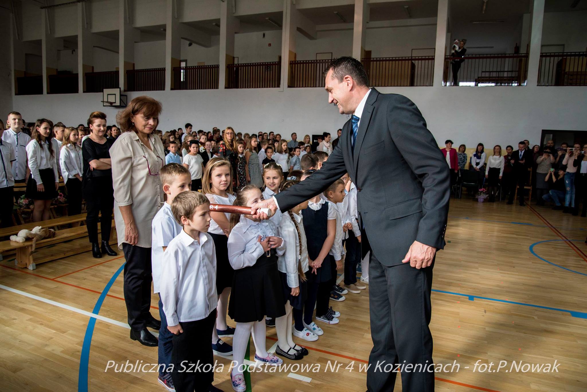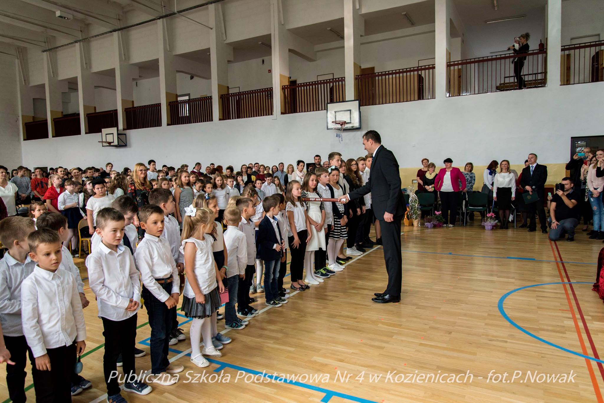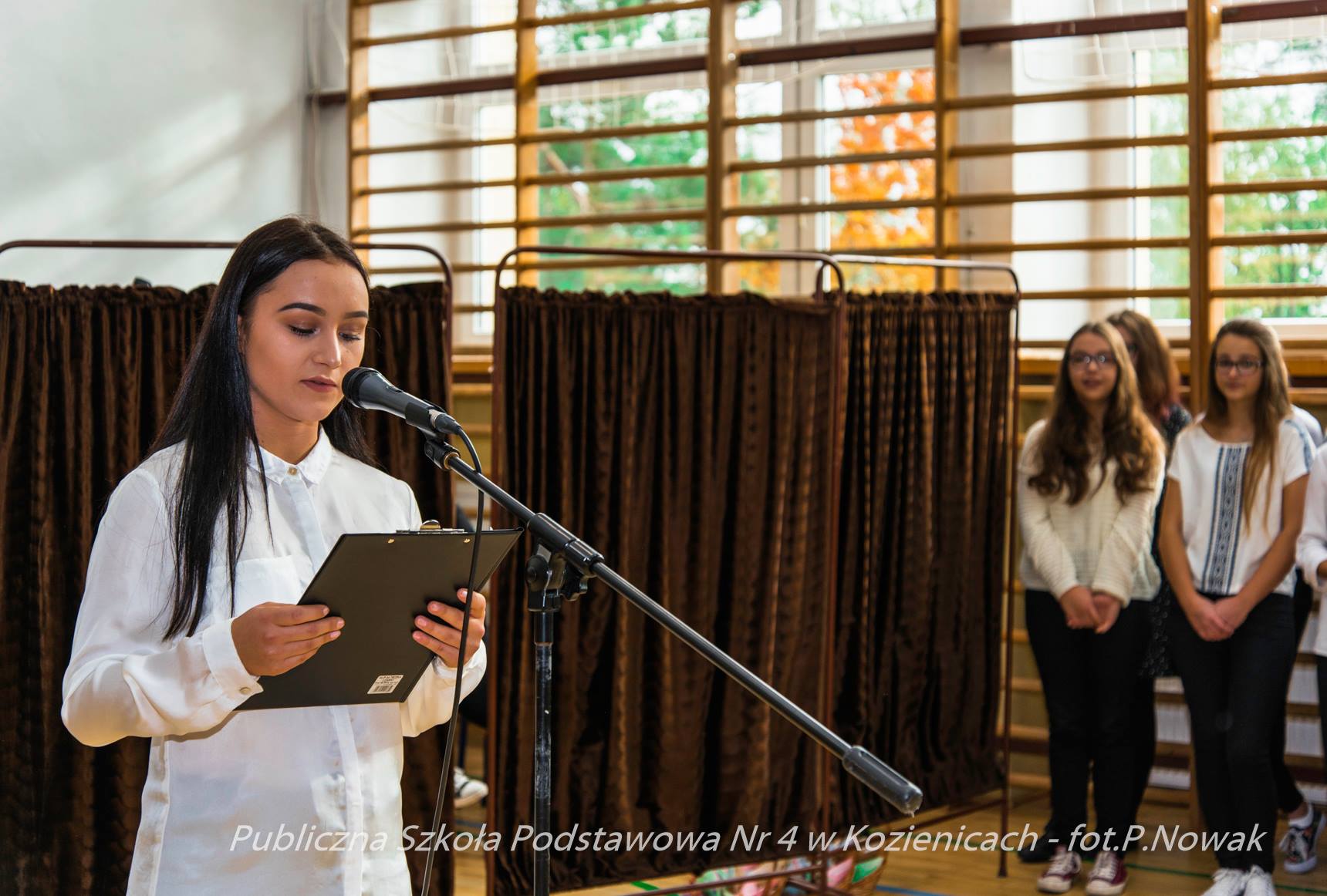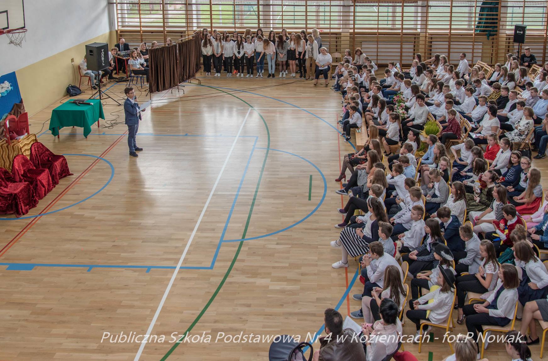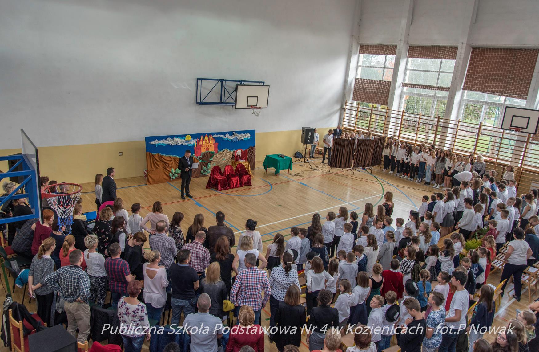 Ważną częścią uroczystości było odebranie przez dyrektora Tomasza Trelę symbolicznego ślubowania klasy pierwszej, klas czwartych i siódmych jako uczniów Publicznej Szkoły Podstawowej Nr 4 im. Jana Pawła II w Kozienicach. Głos zabrał przedstawiciel klas siódmych Piotr Stępień , a następnie odbyło się pasowanie przedstawicieli klas I, IV i VII.