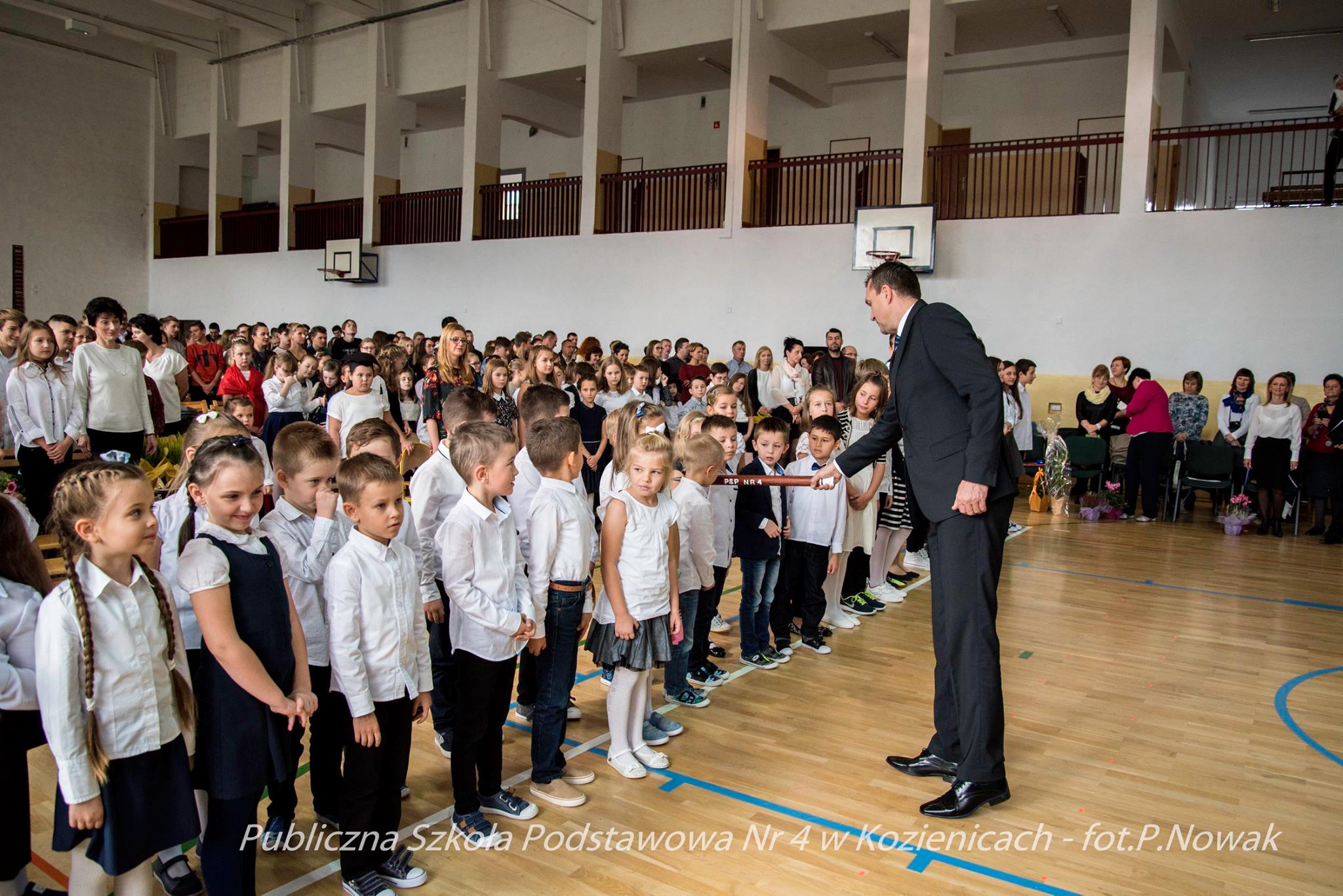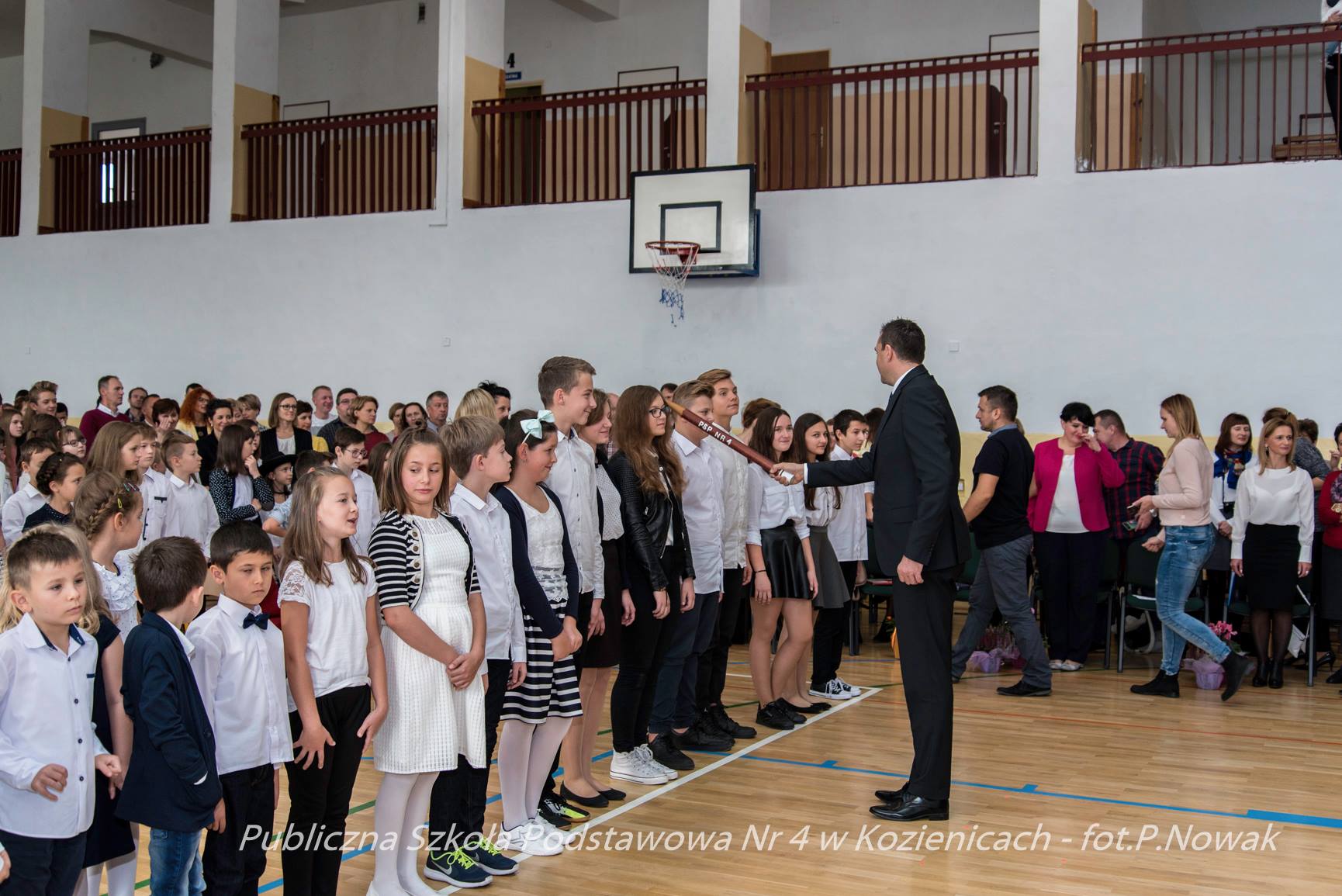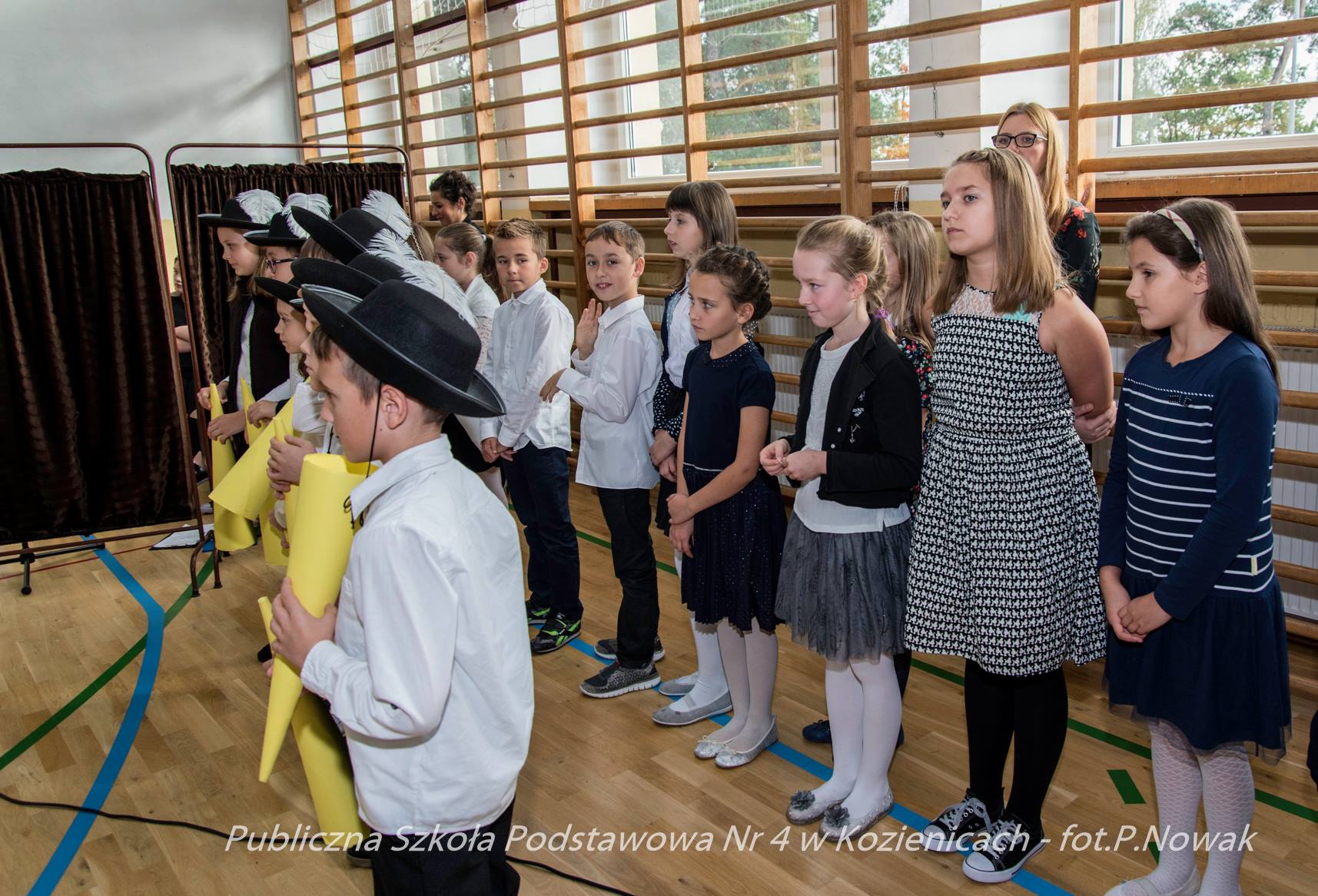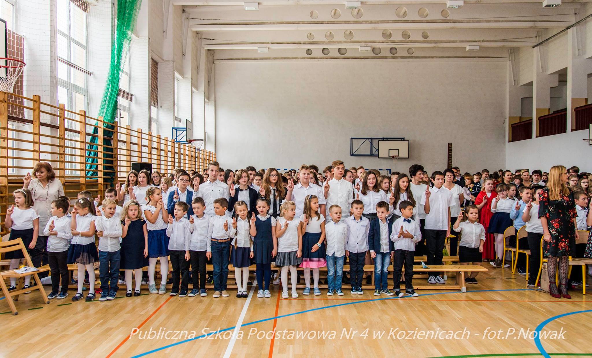 Ważną częścią uroczystości było odebranie przez dyrektora Tomasza Trelę symbolicznego ślubowania klasy pierwszej, klas czwartych i siódmych jako uczniów Publicznej Szkoły Podstawowej Nr 4 im. Jana Pawła II w Kozienicach. Głos zabrał przedstawiciel klas siódmych Piotr Stępień , a następnie odbyło się pasowanie przedstawicieli klas I, IV i VII.