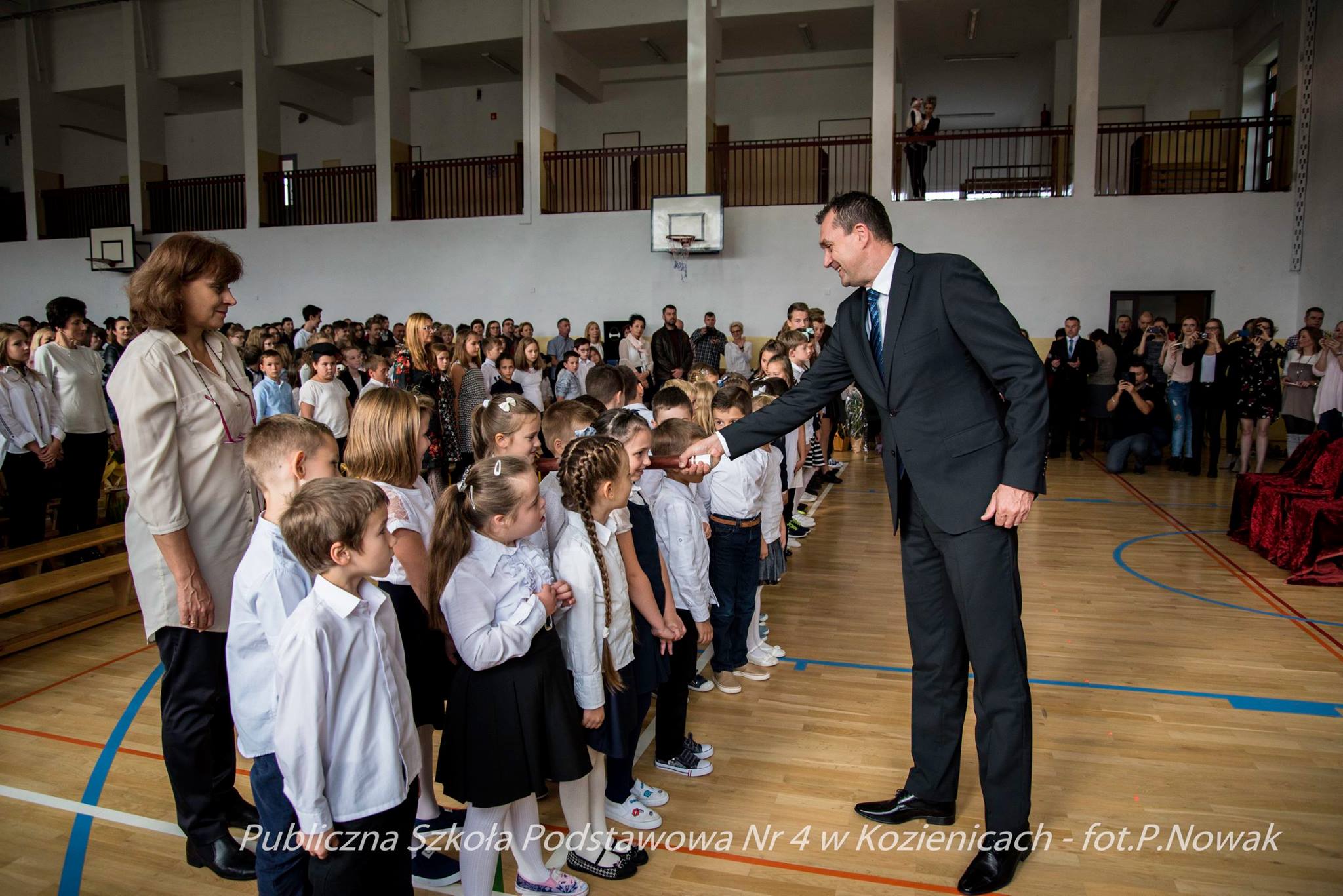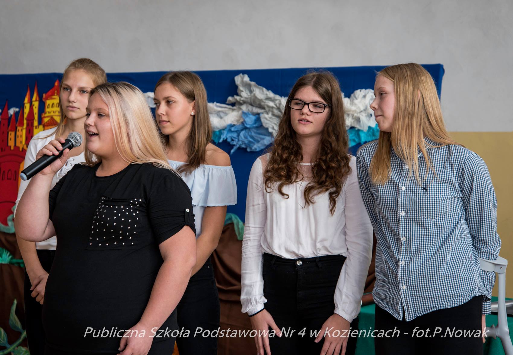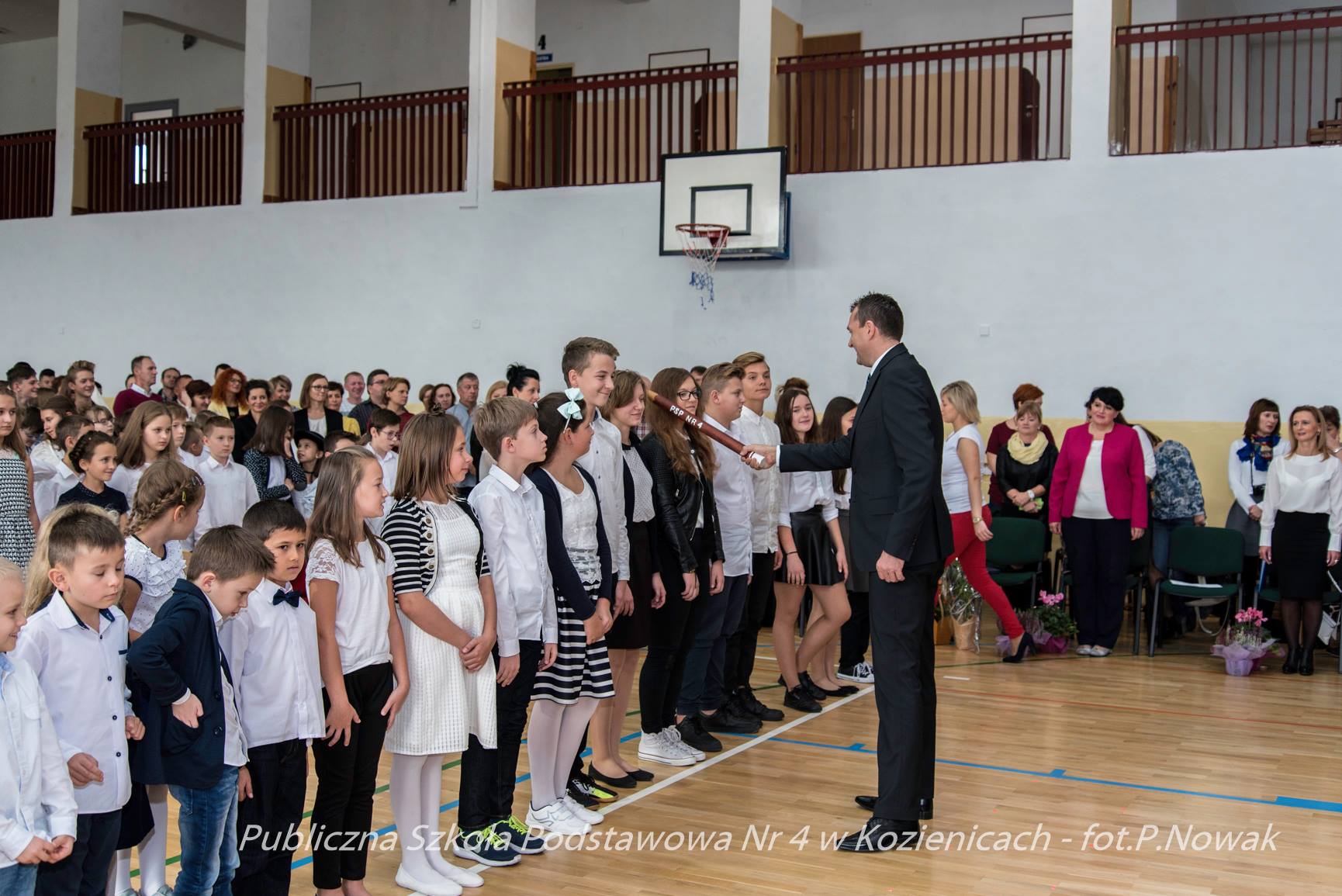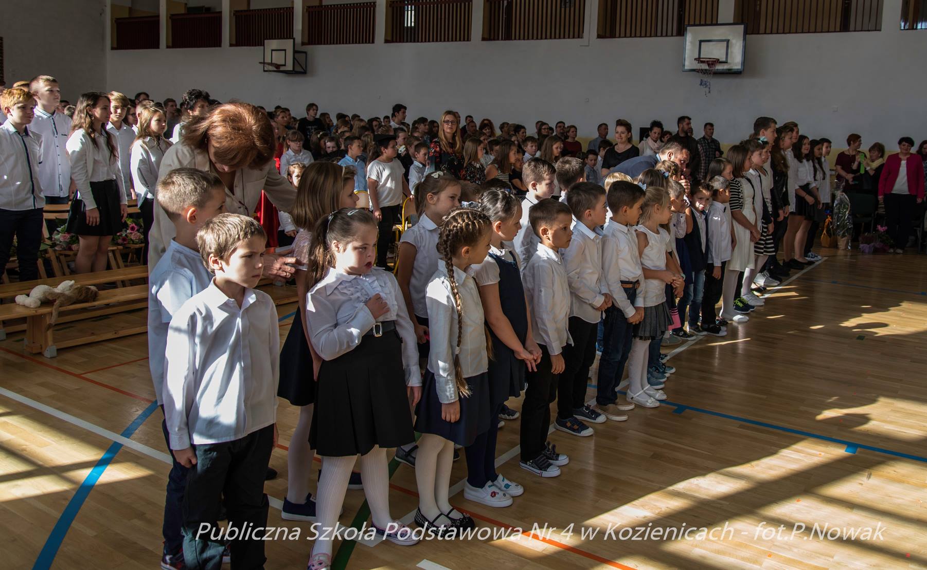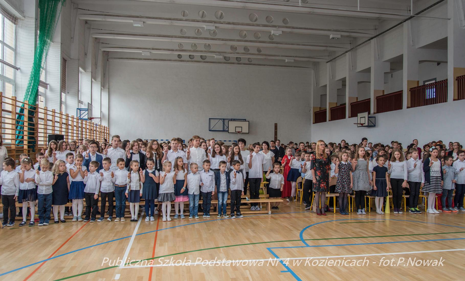 Ważną częścią uroczystości było odebranie przez dyrektora Tomasza Trelę symbolicznego ślubowania klasy pierwszej, klas czwartych i siódmych jako uczniów Publicznej Szkoły Podstawowej Nr 4 im. Jana Pawła II w Kozienicach. Głos zabrał przedstawiciel klas siódmych Piotr Stępień , a następnie odbyło się pasowanie przedstawicieli klas I, IV i VII.