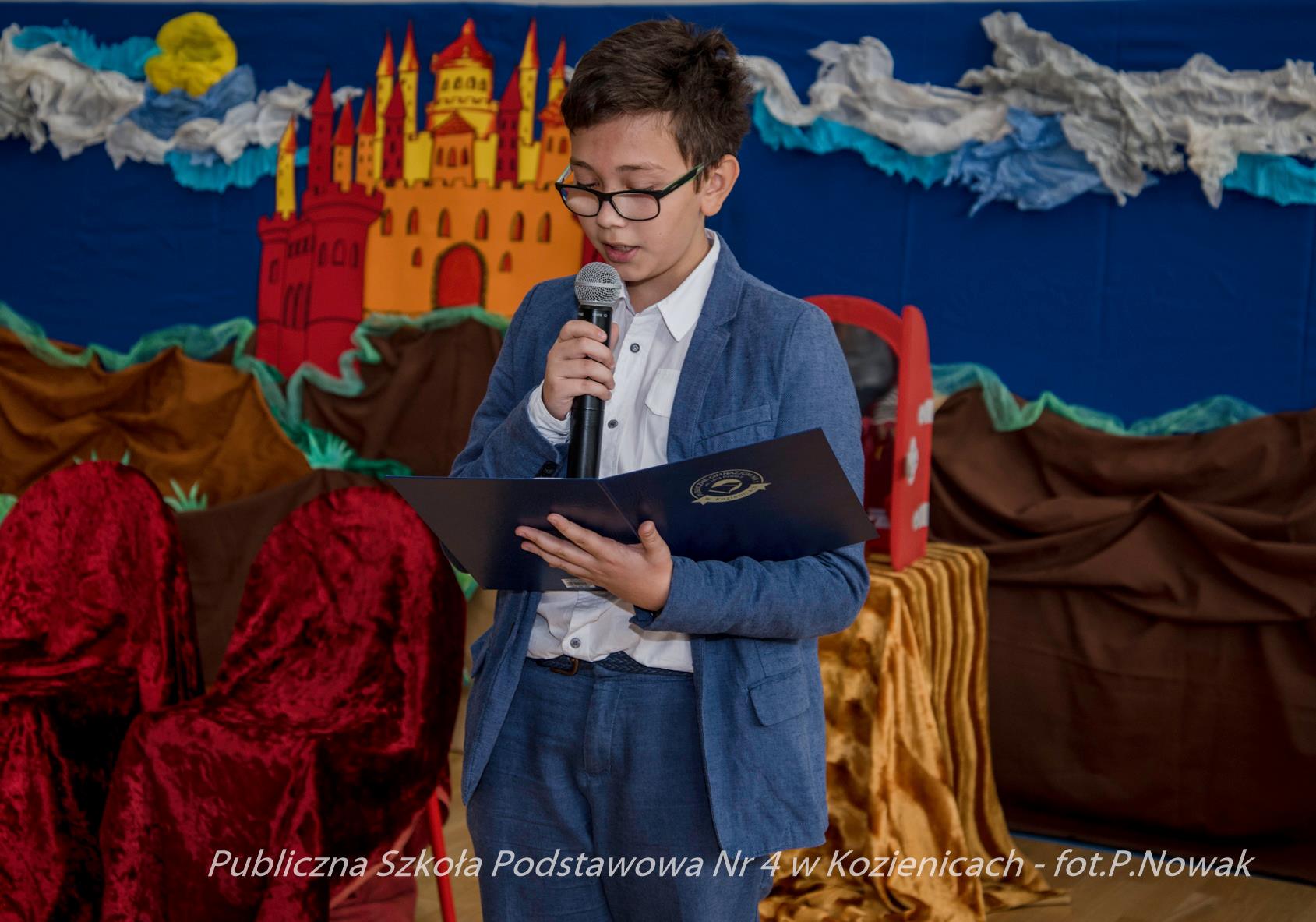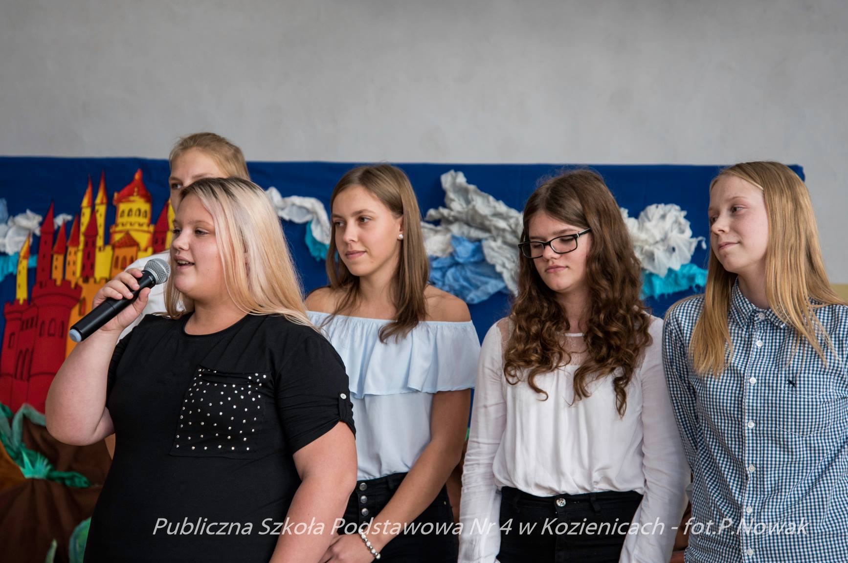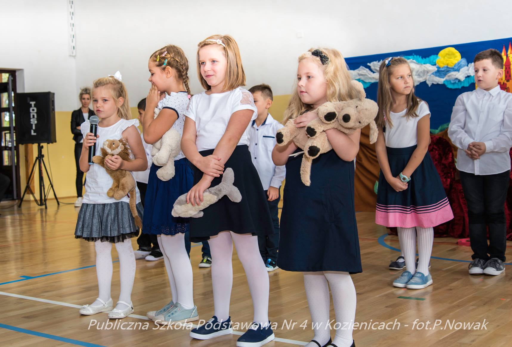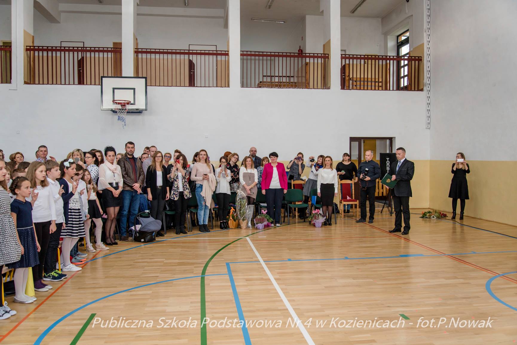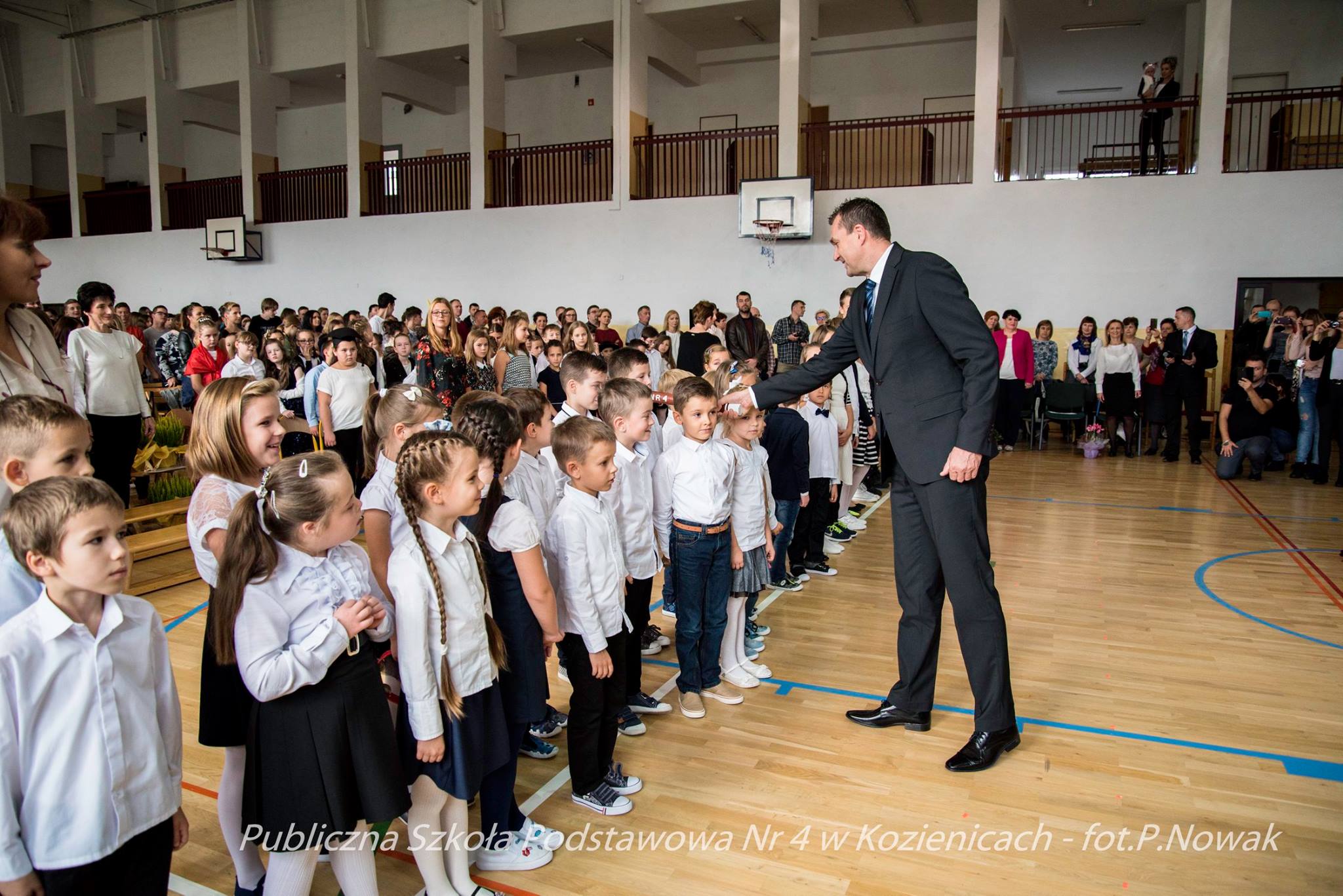 Ważną częścią uroczystości było odebranie przez dyrektora Tomasza Trelę symbolicznego ślubowania klasy pierwszej, klas czwartych i siódmych jako uczniów Publicznej Szkoły Podstawowej Nr 4 im. Jana Pawła II w Kozienicach. Głos zabrał przedstawiciel klas siódmych Piotr Stępień , a następnie odbyło się pasowanie przedstawicieli klas I, IV i VII.