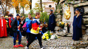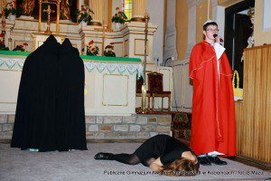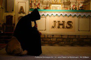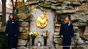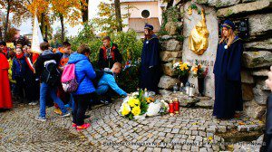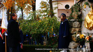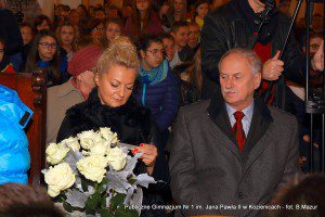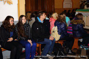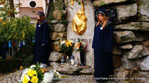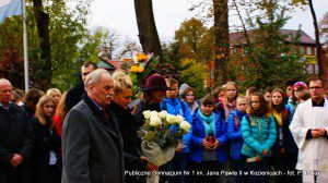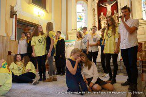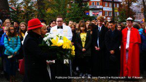 Po przedstawieniu wszyscy udali się do Ogrodu Papieskiego, gdzie modlitwę zainicjował ks. Rafał Kalbarczyk, a chór zaśpiewał ulubioną pieśń Jana Pawła II „Barkę”. Potem delegacje władz samorządowych, rodziców oraz dyrektor Publicznego Gimnazjum Nr 1 im. Jana Pawła II w Kozienicach Tomasz Trela złożyli wiązanki przed pomnikiem Jana Pawła II.