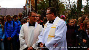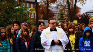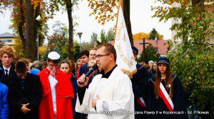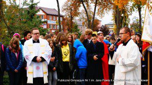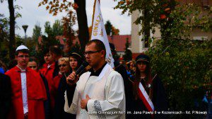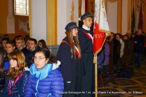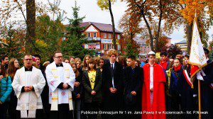 Uroczystości rozpoczęły się 22 października o godz. 1200 Mszą świętą w kościele parafialnym pw. św. Krzyża w Kozienicach. Mszę świętą celebrował ks. Rafał Kalbarczyk, a homilię wygłosił ks. Tomasz Pastuszko. Posługę liturgiczną sprawowali uczniowie gimnazjum /pod kierunkiem Alicji Kucharskiej/, a misterium Mszy św. towarzyszyły pieśni w wykonaniu chóru szkolnego /pod kierunkiem Bożeny Jagiełło/. Po Mszy św. młodzież przedstawiła program artystyczny „Promieniowanie Ojcostwa” przygotowany przez Wiesławę Kucharską i Magdalenę Cichowlas. Przedstawienie nawiązywało do twórczości Karola Wojtyły i Jana Pawła II.
