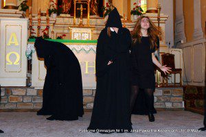 Na wstępie Anna Turek zapoznała uczestników z wierszem „Źródło” /”Tryptyk Rzymski”/. Potem przenieśliśmy się w atmosferę teatru, którym tak bardzo interesował się młody Karol Wojtyła. W pierwszej scenie młodzi aktorzy pokazali problemy współczesnego świata: bezrobocie, kalectwo, uzależnienie, starość oraz brak miłości i przyjaźni. Nad tym wszystkim rozpaczał pierwszy ojciec – Adam /Krystian Jasek/, który stwierdził, iż „nie może udźwignąć ojcostwa”.