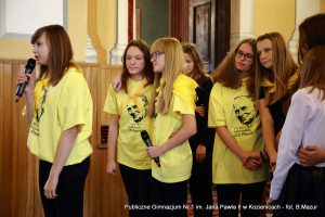Jesteśmy dumni, iż nasze gimnazjum nosi imię tak wielkiego Polaka. To zobowiązuje nas do wytężonej pracy na każdym polu; tak, aby kolejne pokolenia poznawały dorobek Jana Pawła II, Jego wkład w przemiany ustrojowe na świecie, ale przede wszystkim poznawały Boga.