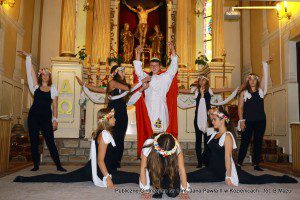 i kolorowe wianki rozjaśniały ciemne kostiumy dziewcząt. Finalny taniec był formą podziękowania naszemu Patronowi za 10 lat opieki.