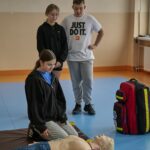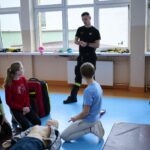 - Pierwsza pomoc przedmedyczna przeprowadzona przez strażaków z Państwowej Straży Pożarnej: st. strażaka Dawida Retmańczyka oraz stażystę Bartłomieja Starzyka.