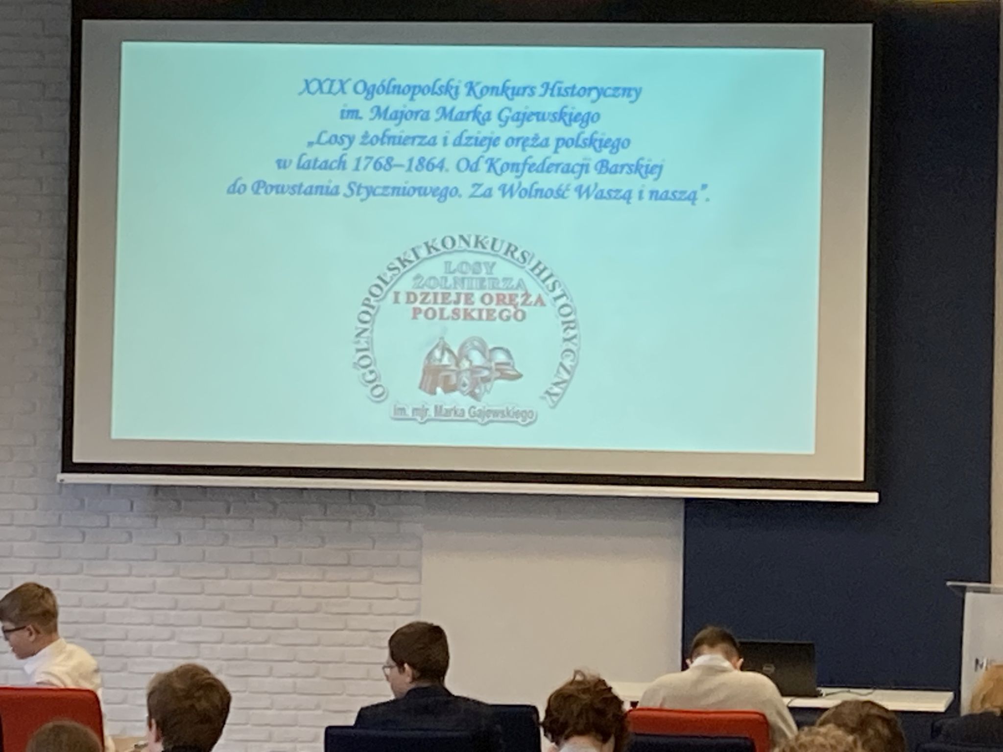 W dniu 14 marca bieżącego roku, w Warszawie miał miejsce trzeci etap III etap ponadwojewódzkiego ogólnopolskiego konkursu „Losy żołnierza i dzieje oręża polskiego w latach 1768–1864. Od konfederacji barskiej do powstania styczniowego. Za Wolność Waszą i naszą”. W eliminacjach wzięło udział 90 uczniów, którzy wcześniej zostali wyłonieni na etapie wojewódzkim. Naszą szkołę reprezentował Mikołaj Gregorczyk z klasy 7a. Jego opiekunem był pan Grzegorz Kocyk . Miło nam poinformować, że test wiedzy został napisany przez niego na 88 % i tym samym uzyskał tytuł laureata i zdobył 7 dodatkowych punktów, które można wpisać na świadectwo kończące szkołę podstawową. Serdecznie gratulujemy!