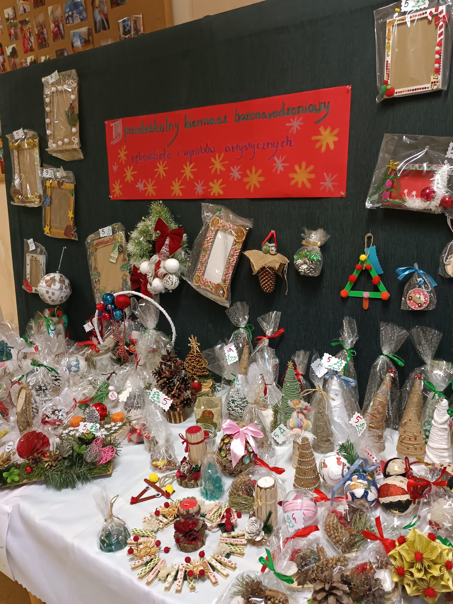 Idą, idą święta… W dniu 20 grudnia w oddziałach przedszkolnych po raz III został zorganizowany kiermasz bożonarodzeniowy rękodzieła i wyrobów artystycznych. W kiermasz, jak co roku, zaangażowała się cała społeczność przedszkolna. Dla każdego coś innego, do wyboru, do koloru, małe, duże, zielone, kolorowe, świecące… To już tradycja, kiedy mogliśmy zorganizować takie przedsięwzięcie dzięki współpracy dzieci, ich rodziców, dziadków i pracowników przedszkola.