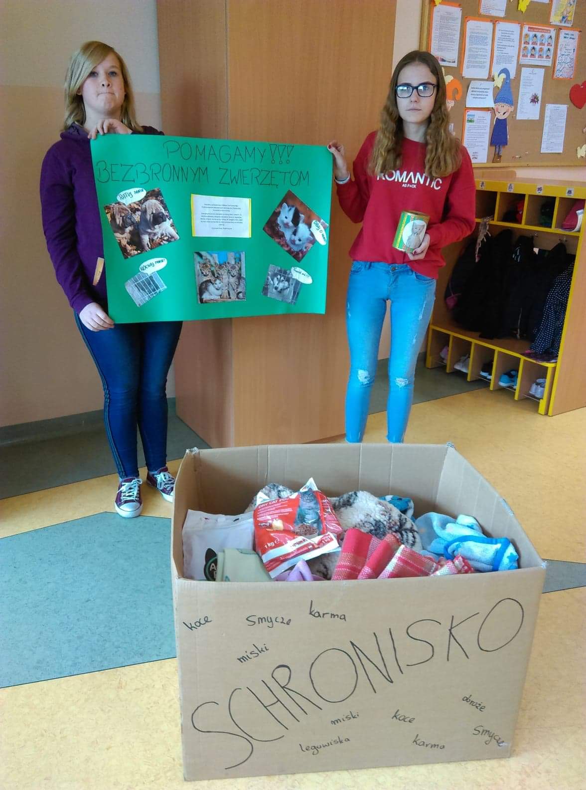 Już po raz trzeci członkowie koła LOP działającego w naszej szkole pod opieką p. Iwony Bitner postanowili pomóc podopiecznym Miejsca Tymczasowego Przetrzymywania Bezdomnych Zwierząt przy KGK w naszym mieście. Rolę koordynatorów wzięli na siebie uczniowie klasy IIIb. To oni zbierali do puszek pieniądze na karmę, koce i pokarm. Liderami akcji były uczennice: Katarzyna Węgrzyn, Zuzanna Tokarczyk, Emilia Popis, Wiktoria Łukasiewicz i Martyna Górniak. Wspólnym wysiłkiem udało się zebrać kilka kilogramów karmy, koce, a zebrane pieniądze przeznaczono na zakup mat, szelek, smyczy i 70 kg pokarmu. W tym roku do akcji włączyły się również Odziały Przedszkolne. To dzięki nim udało się zebra