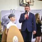 Następnie głos zabrał Dyrektor Szkoły, pan Andrzej Suwała, który podziękował uczniom za przygotowanie występu oraz złożył wszystkim obecnym świąteczne życzenia spokoju, miłości i radości. Również Pan Wiceburmistrz Robert Boryczka podziękował organizatorom i przekazał serdeczne życzenia wielkanocne dla wszystkich zgromadzonych i ich rodzin. Życzenia złożyła też Pani Wicedyrektor Magdalena Prygiel, która życzyła, aby przedstawione przez uczniów tradycje wywołały podczas nadchodzących świąt uśmiech i radość, ale żeby nie przysłaniały prawdziwej ich istoty, jaką jest zwycięstwo dobra nad złem, życia nad śmiercią.