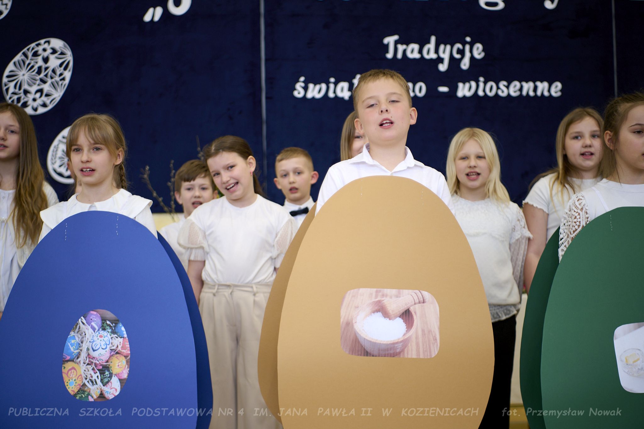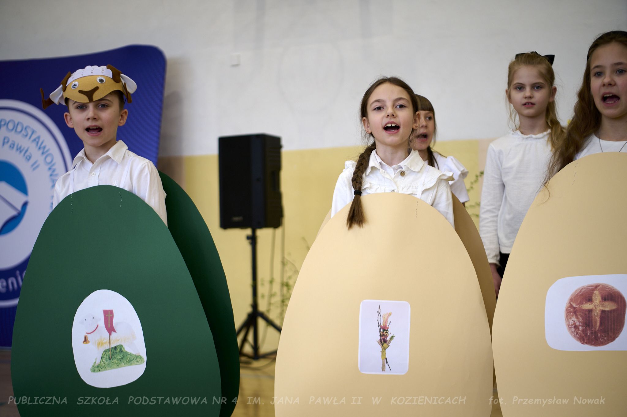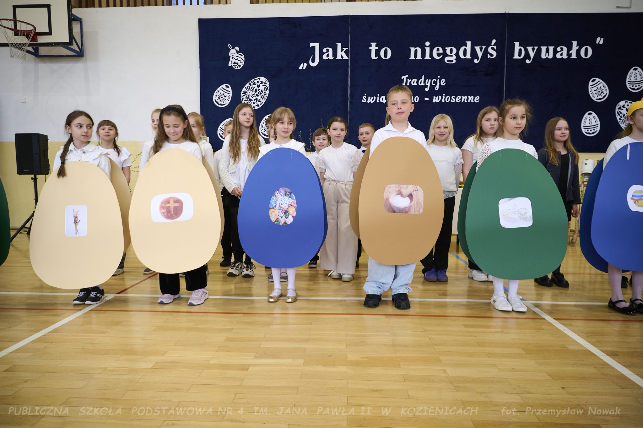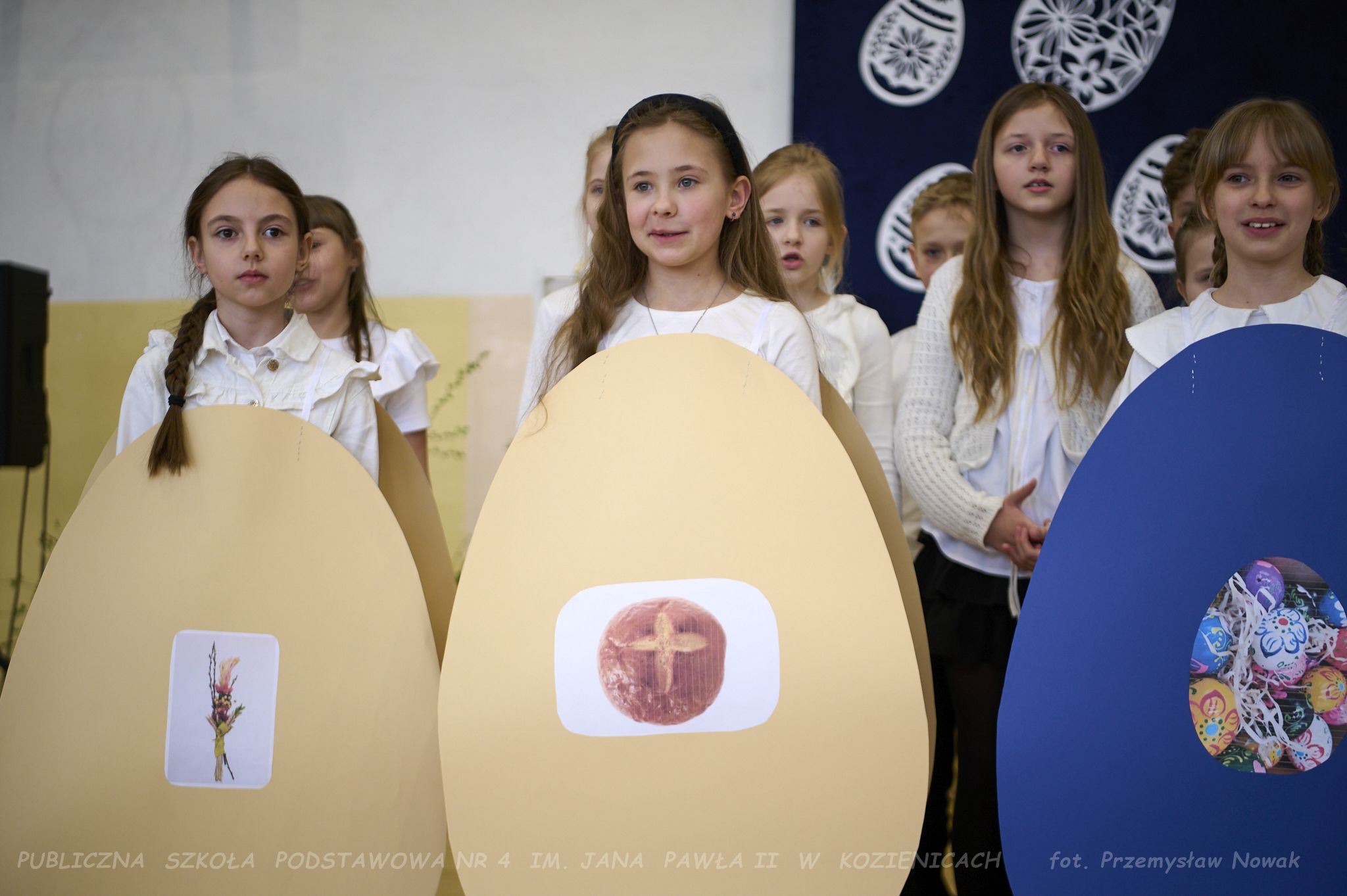 Święta Wielkanocne mają bogatą tradycję, są niezwykle barwne, towarzyszy im wiele obrzędów, które pamiętamy do dzisiaj. Program artystyczny obejmował prezentację tradycji i zwyczajów związanych z Wielkim Tygodniem. Występ miał charakter zarówno artystyczny, jak i edukacyjny. Na zakończenie akademii głos zabrał ksiądz Adam Głuszek, który nawiązał do Patrona Szkoły – św. Jana Pawła II. Podkreślił znaczenie pokory oraz wartości moralnych, zachęcając społeczność szkolną do podążania jego śladem i kierowania się zasadą zwyciężania zła dobrem. Na koniec udzielił zgromadzonym błogosławieństwa.