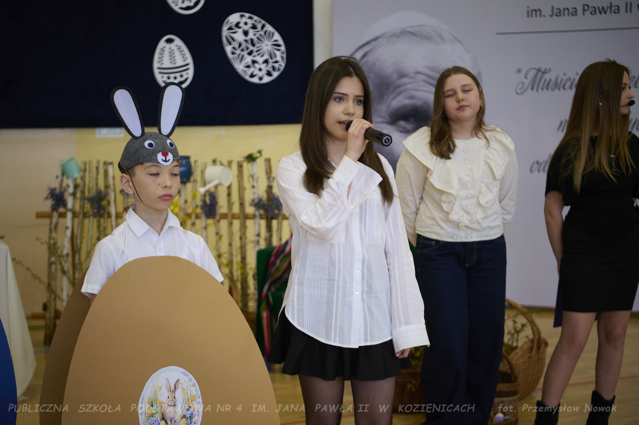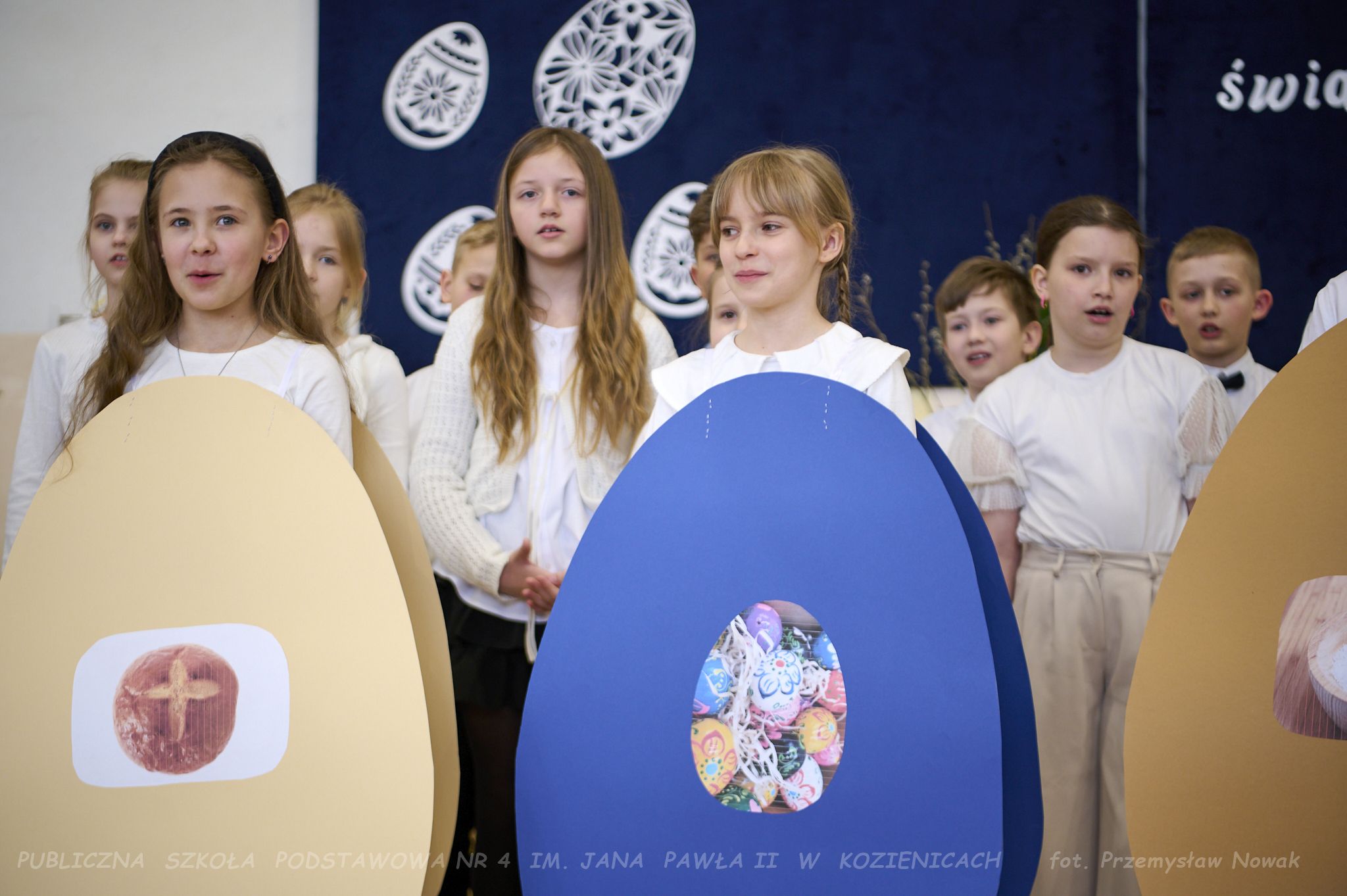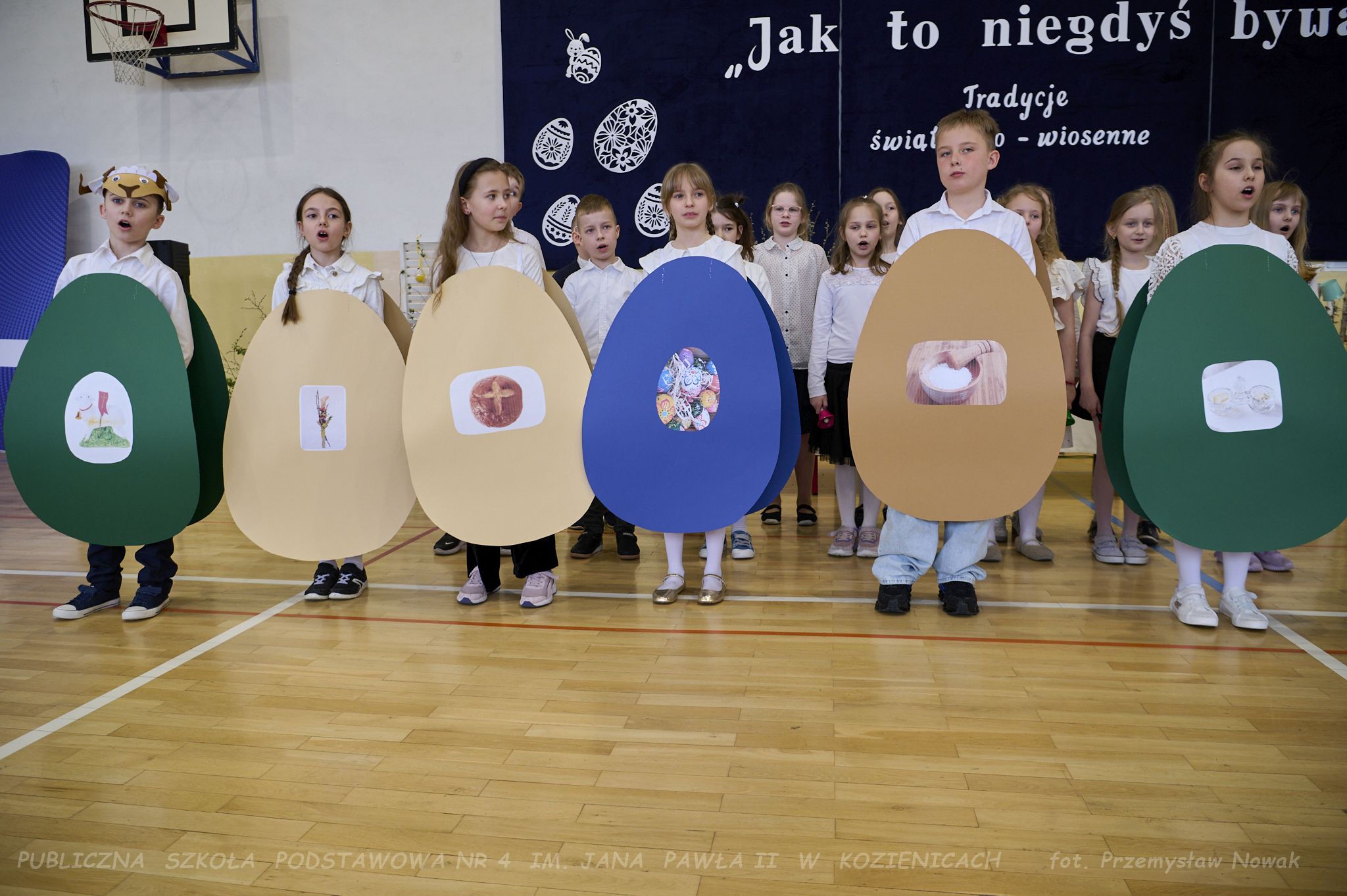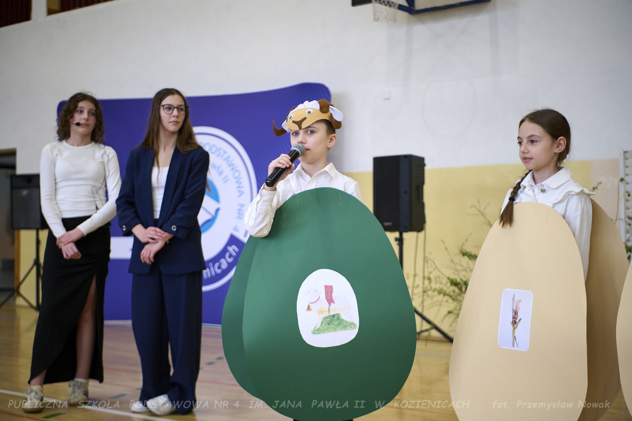 Święta Wielkanocne mają bogatą tradycję, są niezwykle barwne, towarzyszy im wiele obrzędów, które pamiętamy do dzisiaj. Program artystyczny obejmował prezentację tradycji i zwyczajów związanych z Wielkim Tygodniem. Występ miał charakter zarówno artystyczny, jak i edukacyjny. Na zakończenie akademii głos zabrał ksiądz Adam Głuszek, który nawiązał do Patrona Szkoły – św. Jana Pawła II. Podkreślił znaczenie pokory oraz wartości moralnych, zachęcając społeczność szkolną do podążania jego śladem i kierowania się zasadą zwyciężania zła dobrem. Na koniec udzielił zgromadzonym błogosławieństwa.