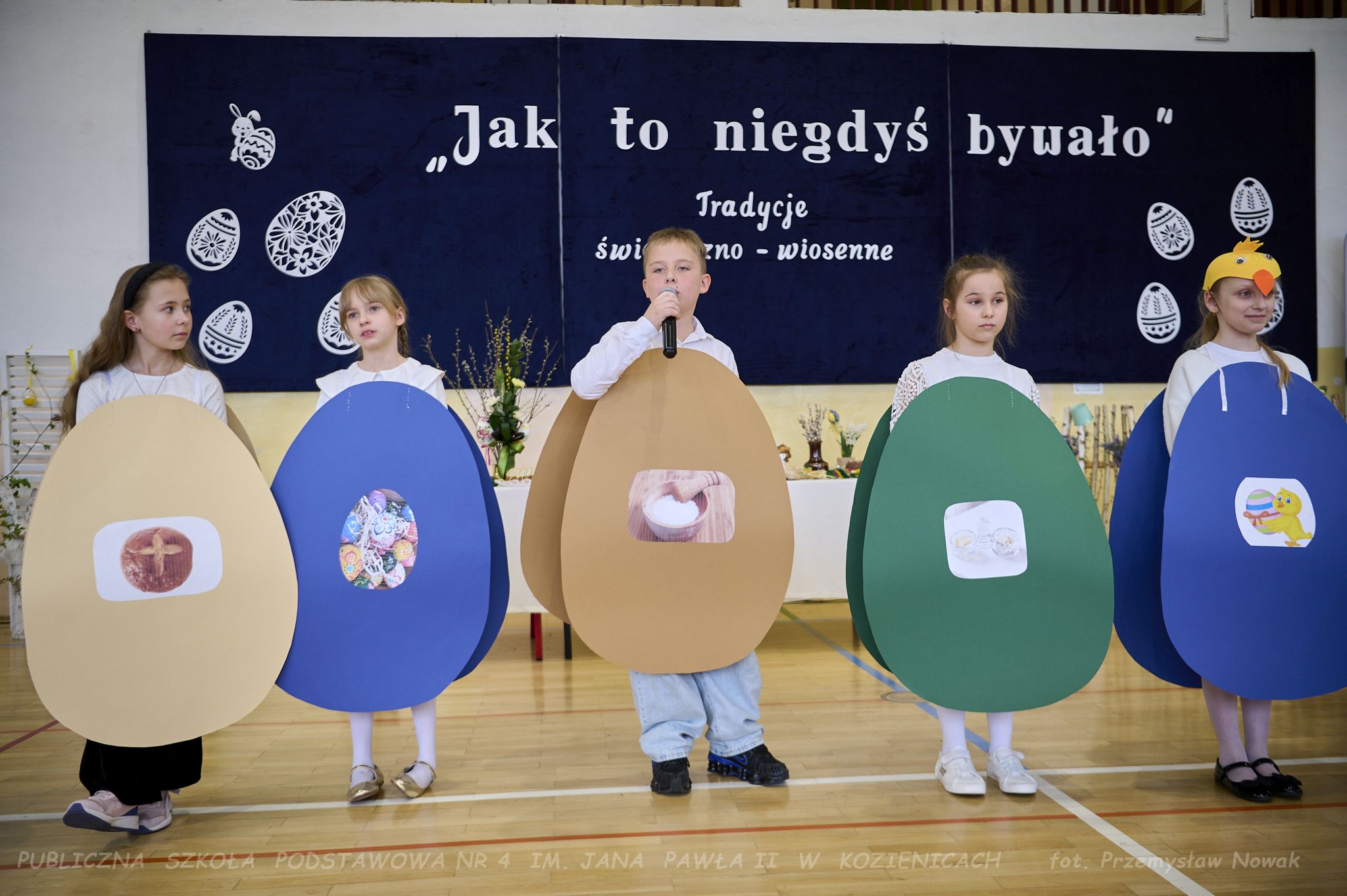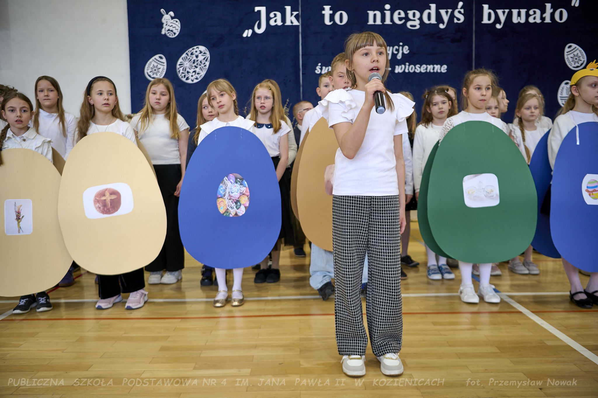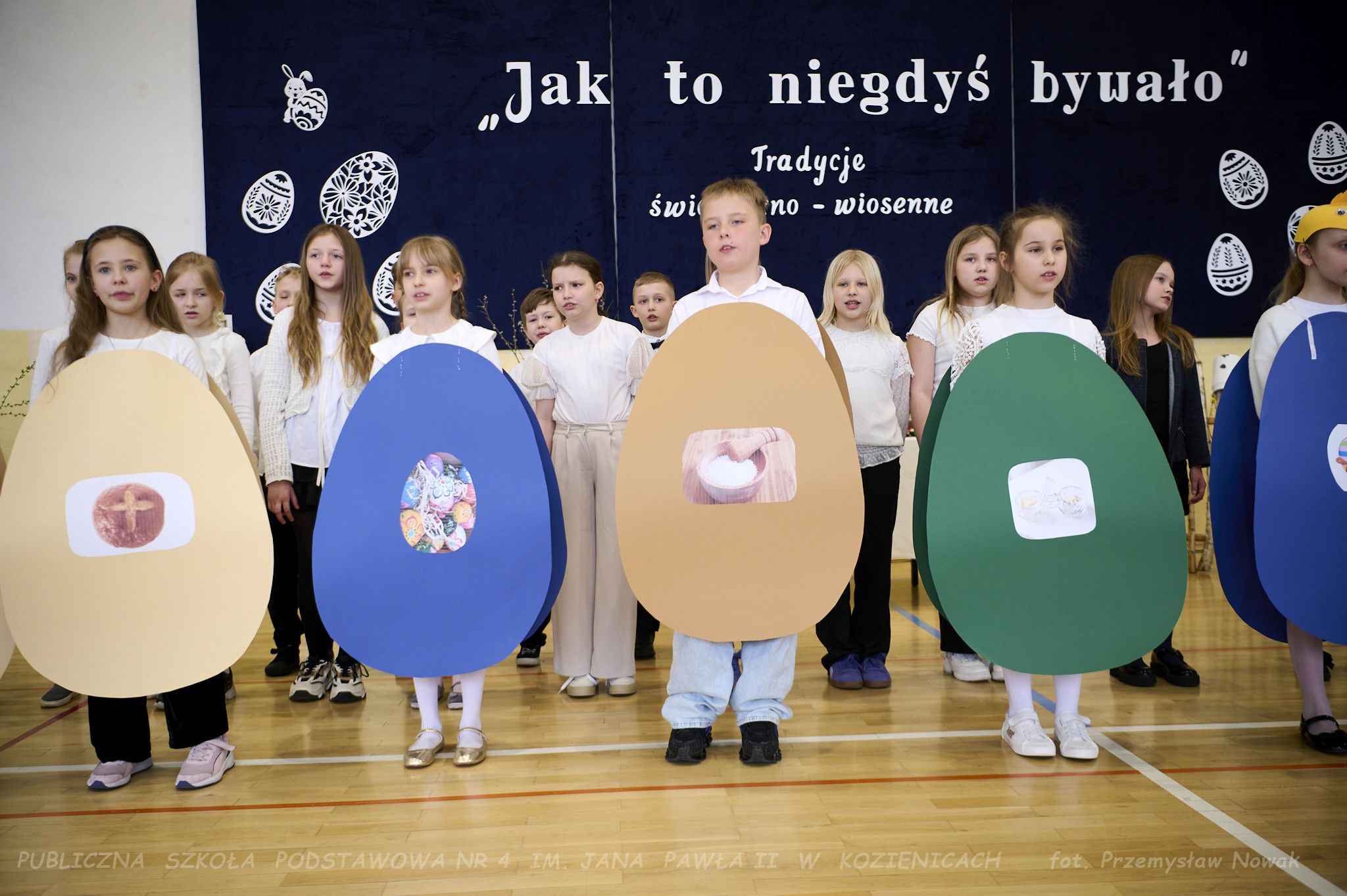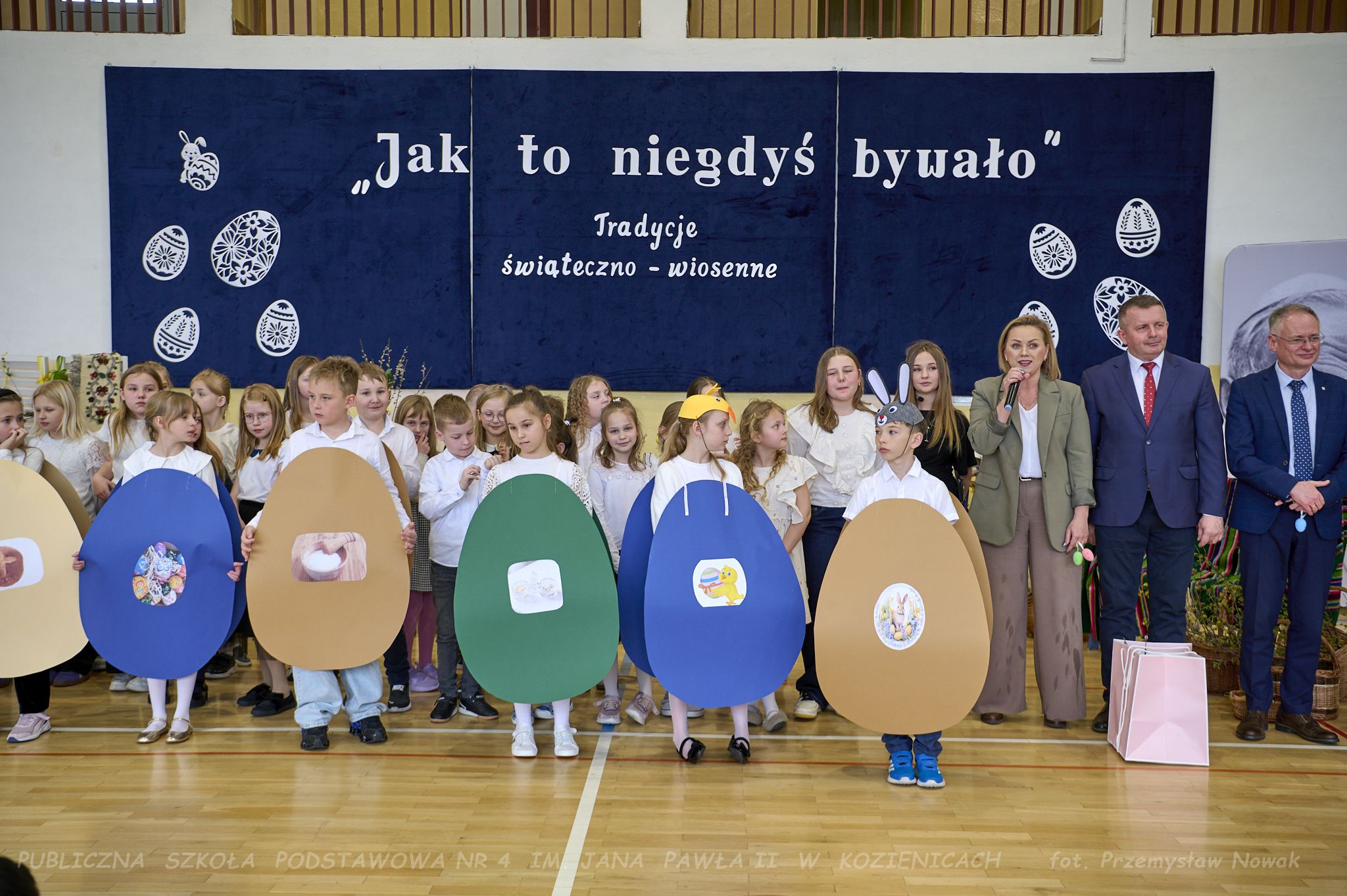 Święta Wielkanocne mają bogatą tradycję, są niezwykle barwne, towarzyszy im wiele obrzędów, które pamiętamy do dzisiaj. Program artystyczny obejmował prezentację tradycji i zwyczajów związanych z Wielkim Tygodniem. Występ miał charakter zarówno artystyczny, jak i edukacyjny. Na zakończenie akademii głos zabrał ksiądz Adam Głuszek, który nawiązał do Patrona Szkoły – św. Jana Pawła II. Podkreślił znaczenie pokory oraz wartości moralnych, zachęcając społeczność szkolną do podążania jego śladem i kierowania się zasadą zwyciężania zła dobrem. Na koniec udzielił zgromadzonym błogosławieństwa.
