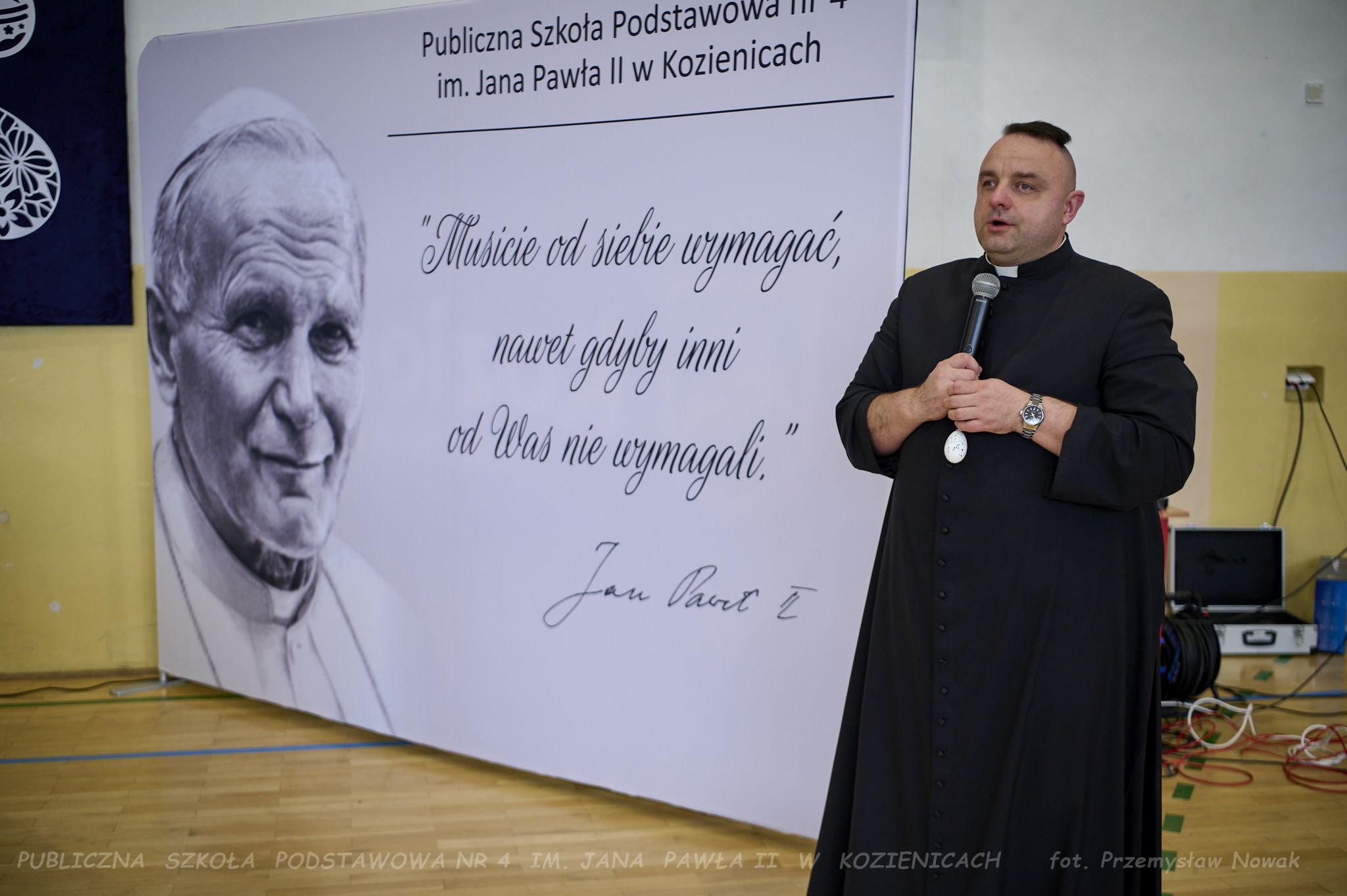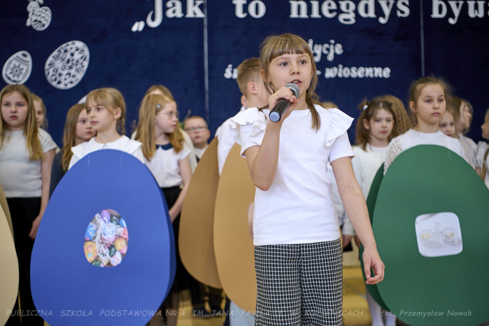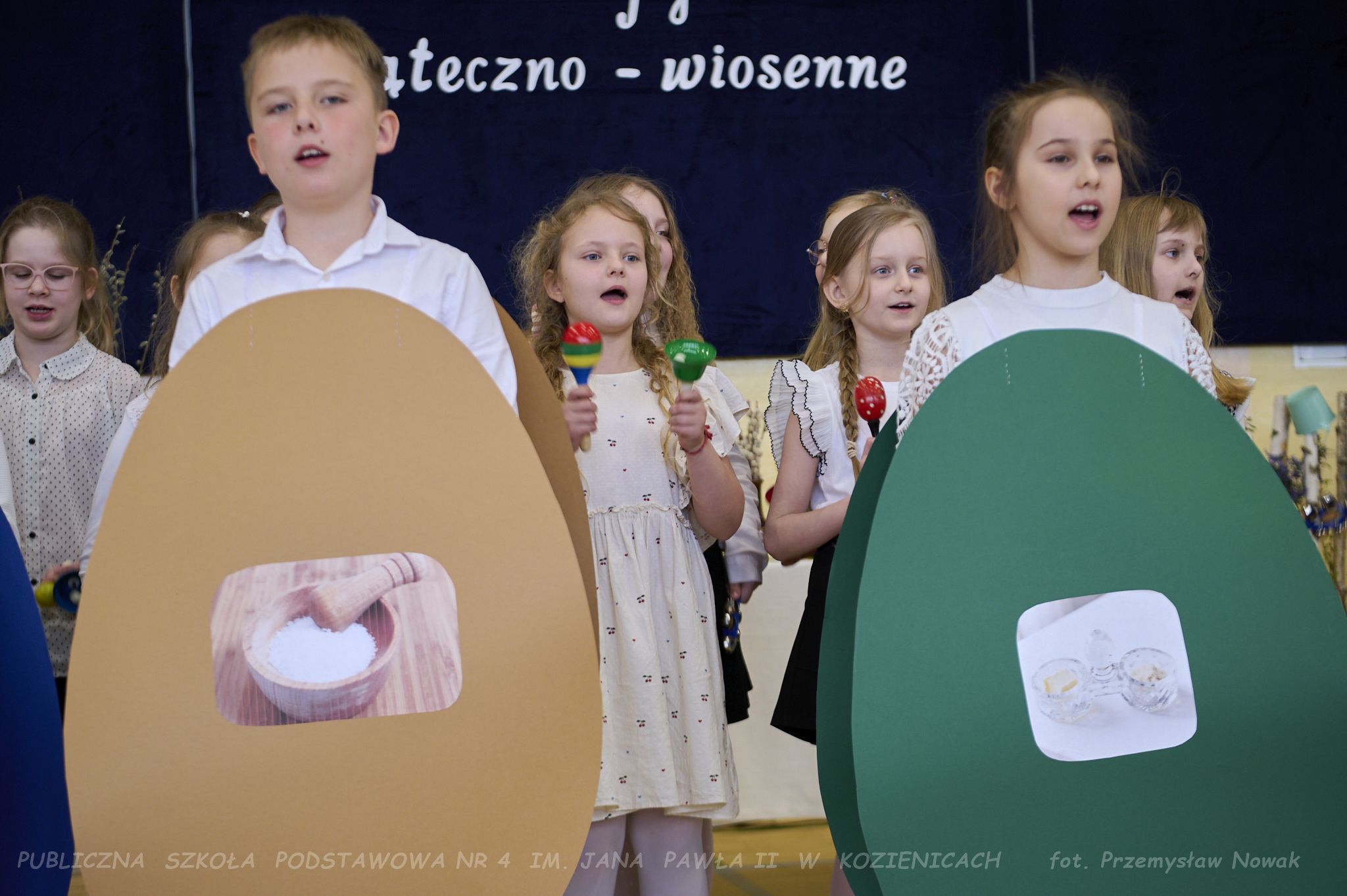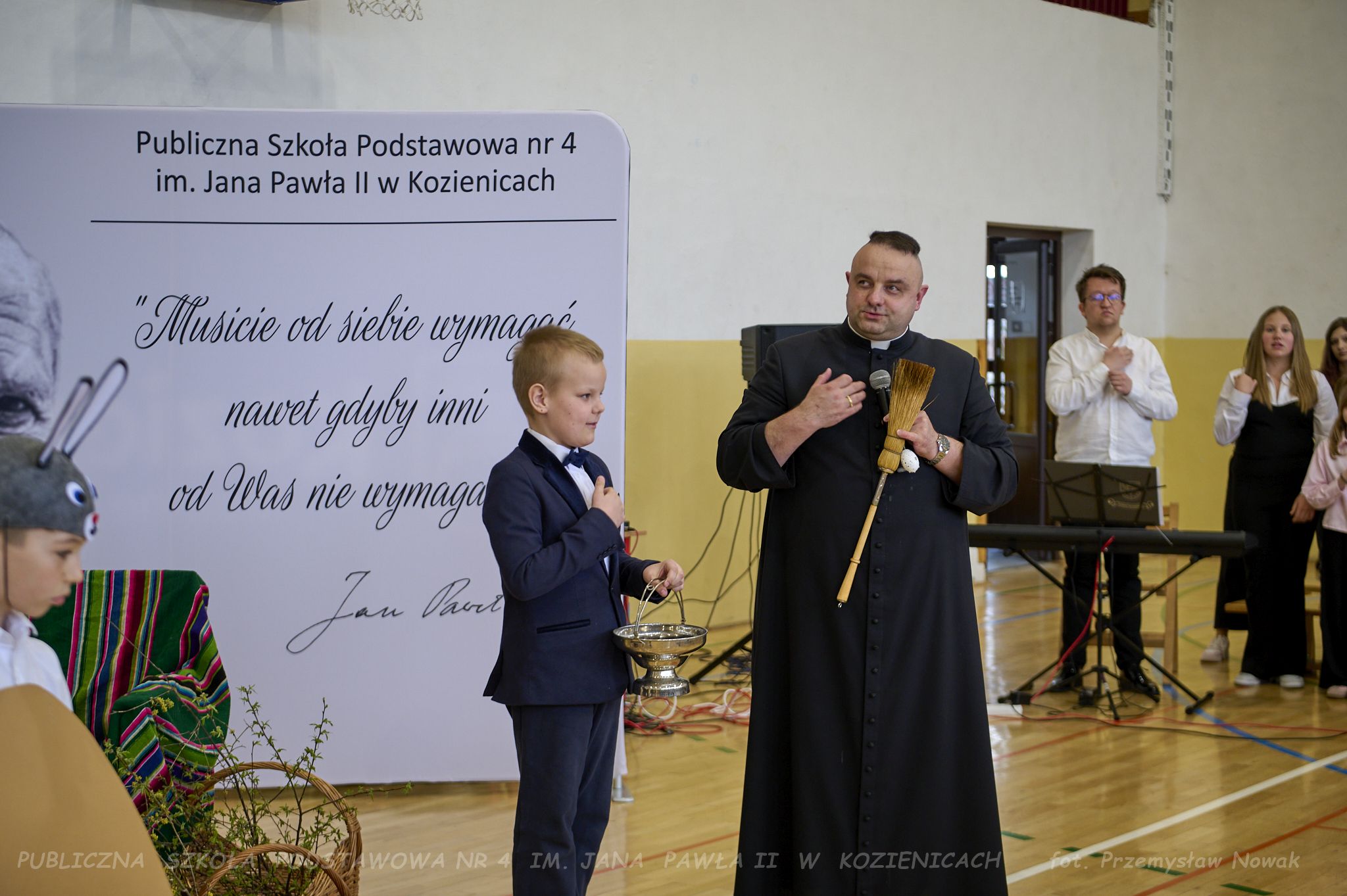 Święta Wielkanocne mają bogatą tradycję, są niezwykle barwne, towarzyszy im wiele obrzędów, które pamiętamy do dzisiaj. Program artystyczny obejmował prezentację tradycji i zwyczajów związanych z Wielkim Tygodniem. Występ miał charakter zarówno artystyczny, jak i edukacyjny. Na zakończenie akademii głos zabrał ksiądz Adam Głuszek, który nawiązał do Patrona Szkoły – św. Jana Pawła II. Podkreślił znaczenie pokory oraz wartości moralnych, zachęcając społeczność szkolną do podążania jego śladem i kierowania się zasadą zwyciężania zła dobrem. Na koniec udzielił zgromadzonym błogosławieństwa.