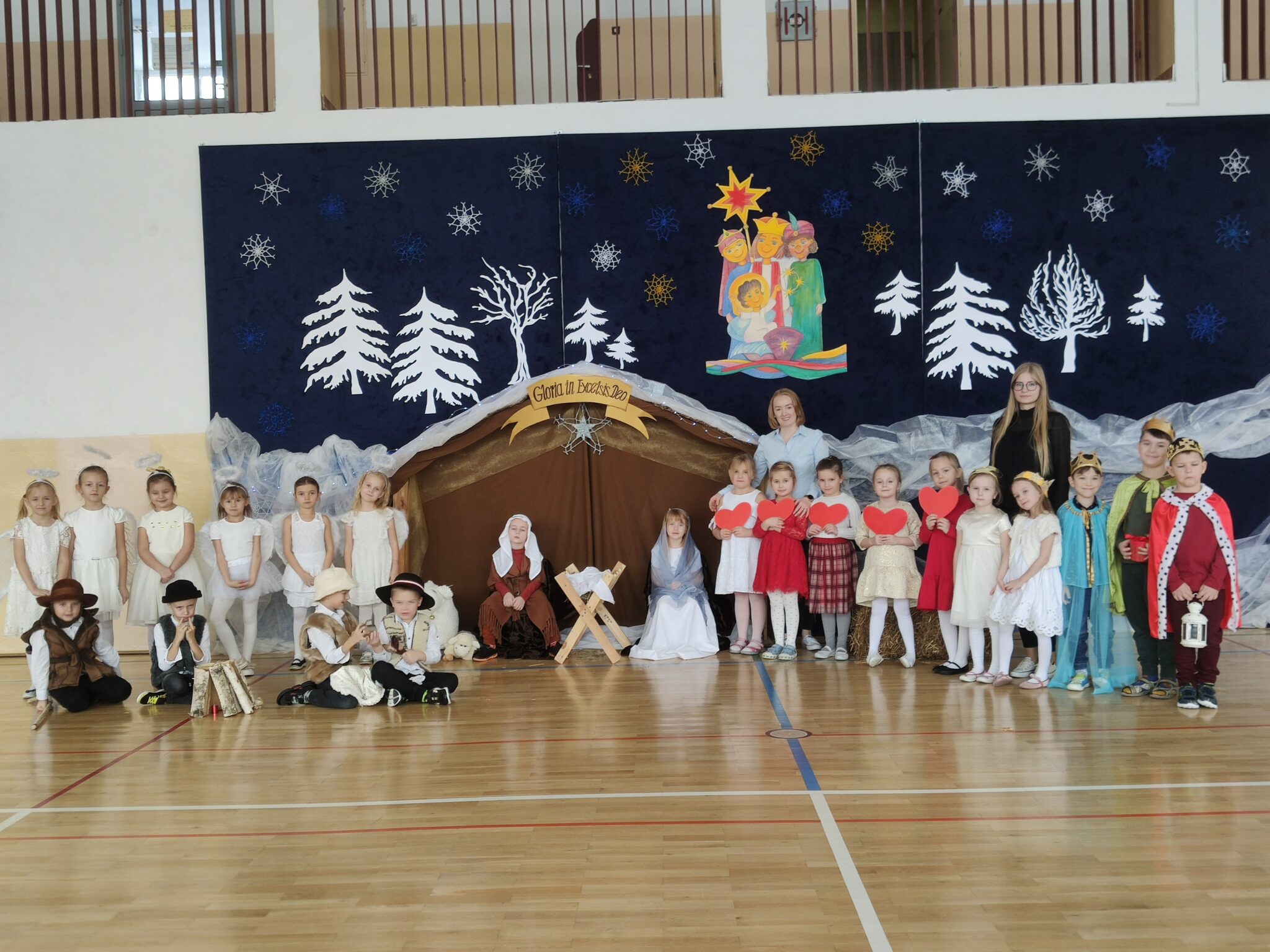 21.12.2022 mali aktorzy przedstawili Jasełka dla swoich młodszych kolegów, dyrekcji oraz pracowników przedszkola. Z wielkim przejęciem wygłaszali swoje role i z radością śpiewali kolędy i pastorałki. Dzieci we wspaniałych strojach przygotowanych przez rodziców i nauczycieli prezentowały się wspaniale.