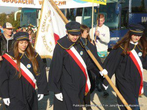 8 października 2015r. 49 uczniów naszej szkoły pod opieką pań: Alicji Kucharskiej, Iwony Bitner, Agnieszki Szymańskiej- Grześka i ks. Rafała Kalbarczyka wzięło udział w XV pielgrzymce Rodziny Szkół im. Jana Pawła II do Częstochowy. Dla nas to spotkanie miało szczególne znaczenie, bowiem 27 października mija 10 lat od nadania naszemu gimnazjum imienia Jana Pawła II. W tym roku przeżywaliśmy również 10. rocznicę śmierci umiłowanego Patrona, który zawołaniem „Totus tuus” zawierzył swe życie Czarnej Madonnie. Na jubileuszowe spotkanie przybyło ponad 20 tys. osób reprezentujących ok. 500 szkół z całej Polski, a także przedstawiciele szkół z Wilna. Na Jasnej Górze zgromadzili się uczniowie, nauczyciele a także rodzice, by pod przewodnictwem duszpasterza Rodziny księdza biskupa Henryka Tomasika, w łączności z papieżem Franciszkiem i uczestnikami Synodu o rodzinie wspólnie modlić się, za swoje rodziny oraz dziękować za owoce pontyfikatu św. Jana Pawła II, swojego patrona, prosić o dobre przygotowanie do XXXI Światowego Dnia Młodzieży. W homilii Biskup Radomski wzywał do wsłuchiwania się w słowa Jana Pawła II, Patrona Rodziny, który mówił o miłości i odpowiedzialności: