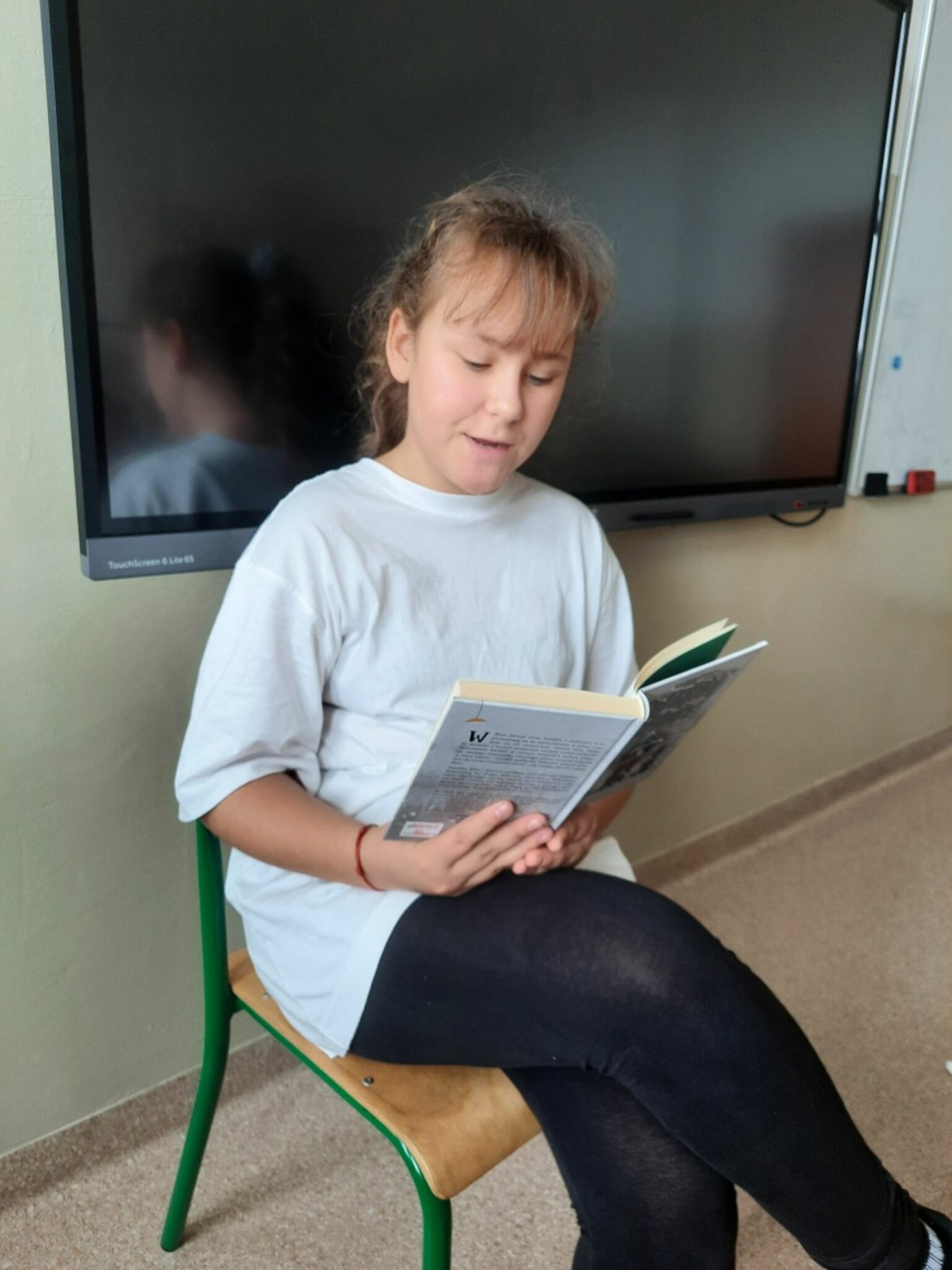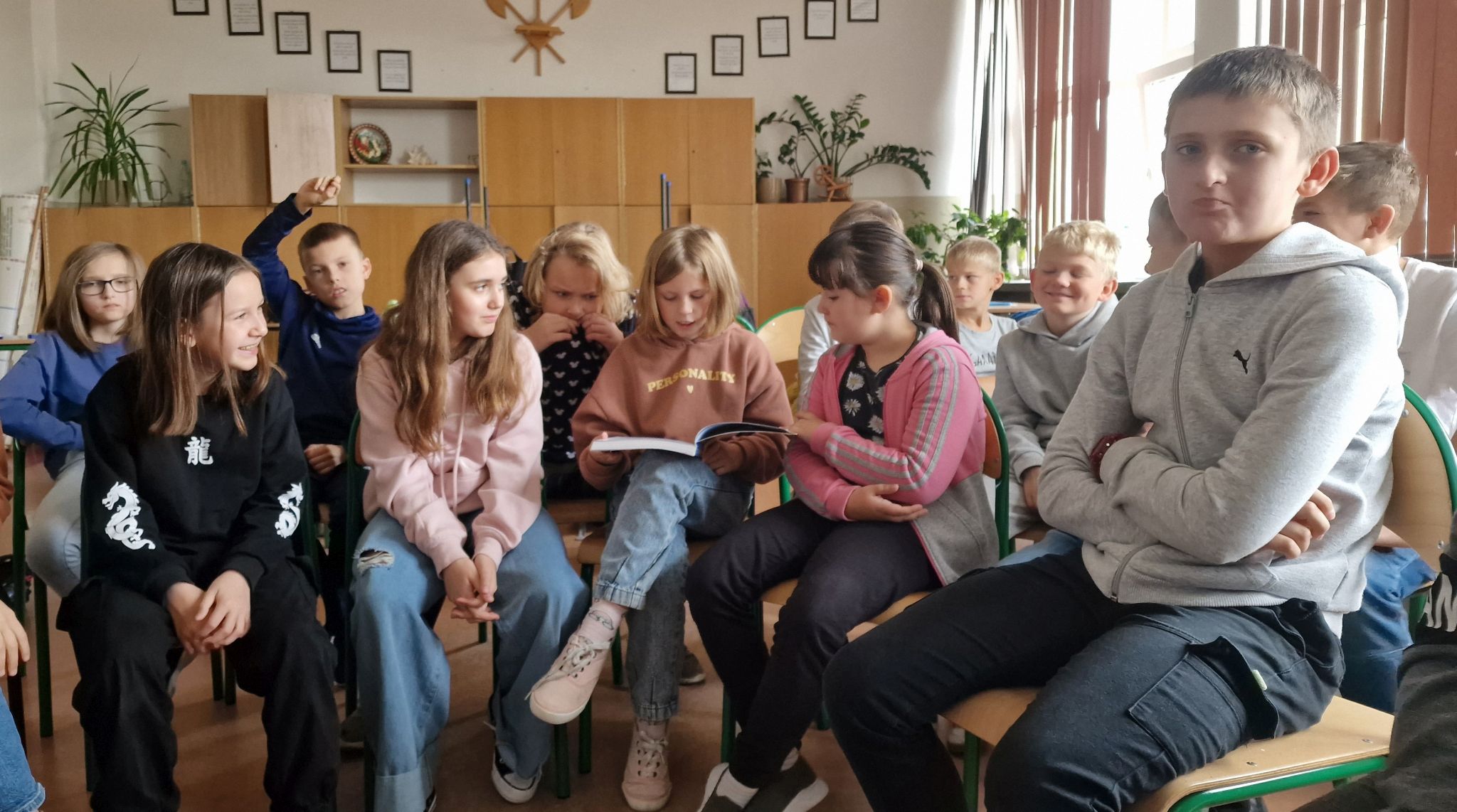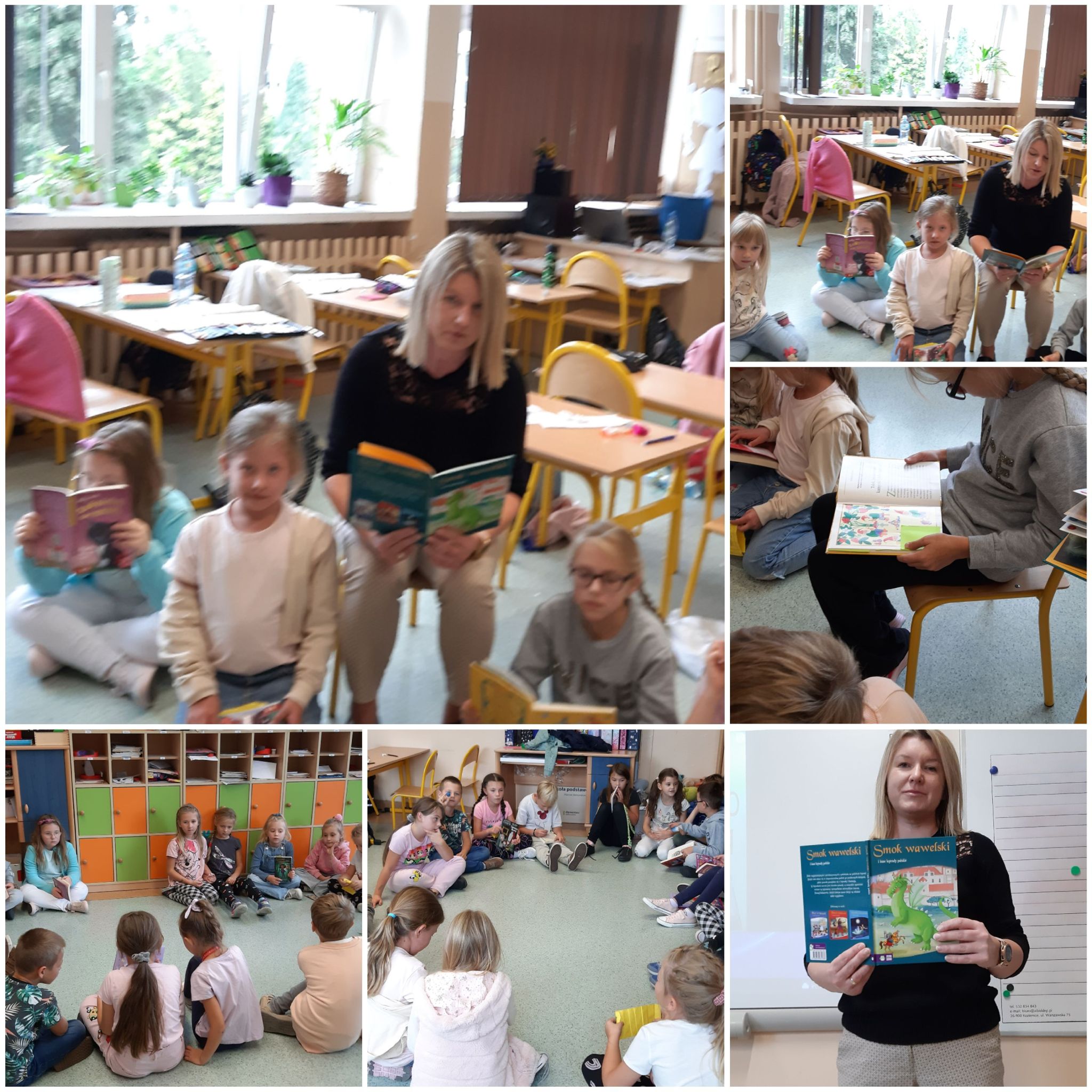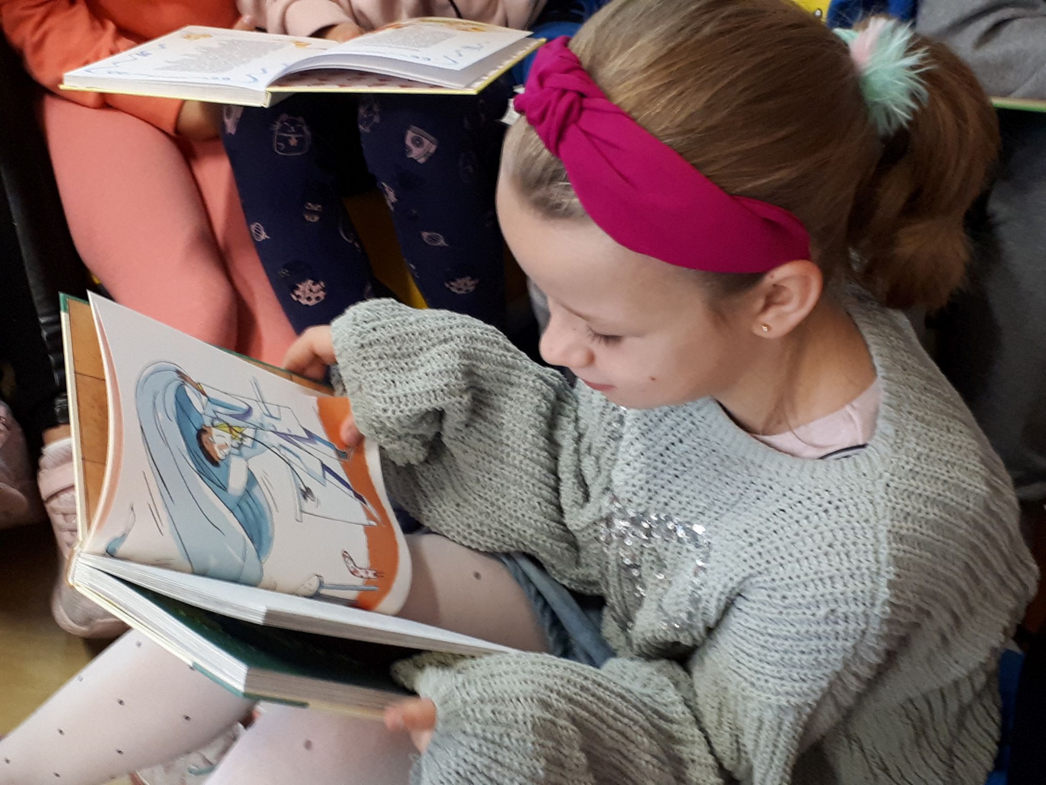W klasie 2a zaproszony rodzic interpretował drugą część najnowszej książki Waldemara Cichonia „Jeśli się zgadzasz, zaszczekaj dwukrotnie !”. Polecamy tę książkę młodszym dzieciom. Fragmenty ulubionej literatury przedstawili uczniowie klasy 3 c. Natomiast z biografią Roberta Lewandowskiego zapoznawali się uczniowie klasy 4a. Klasa 5a zaciekawiła się literaturą klasyczną „Ania z Zielonego Wzgórza” Lucy Montgomery, a 5b zgłębiała fantastyczne przygody w książce „Srebrny chłopiec” Kristina Ohlssona.