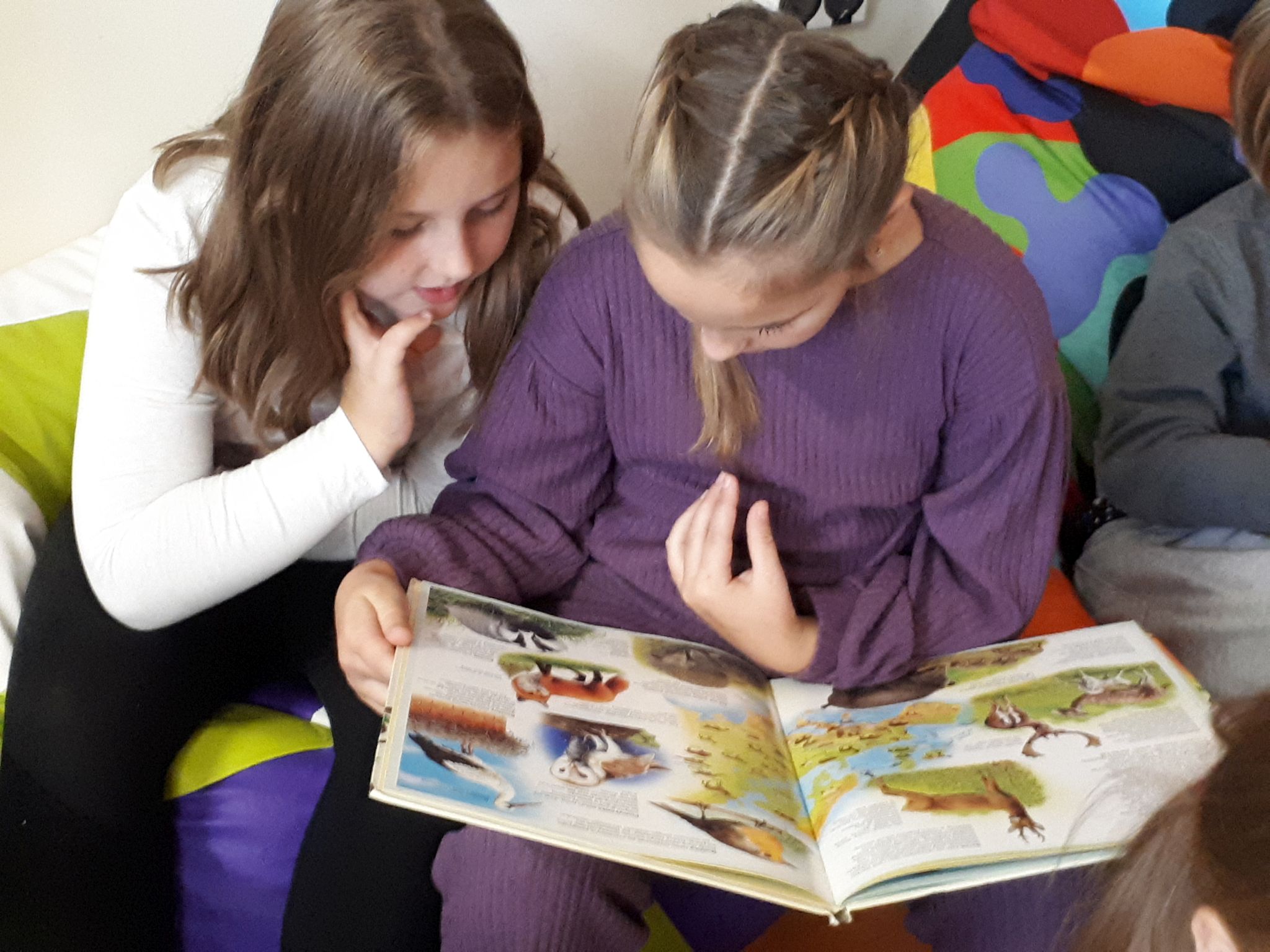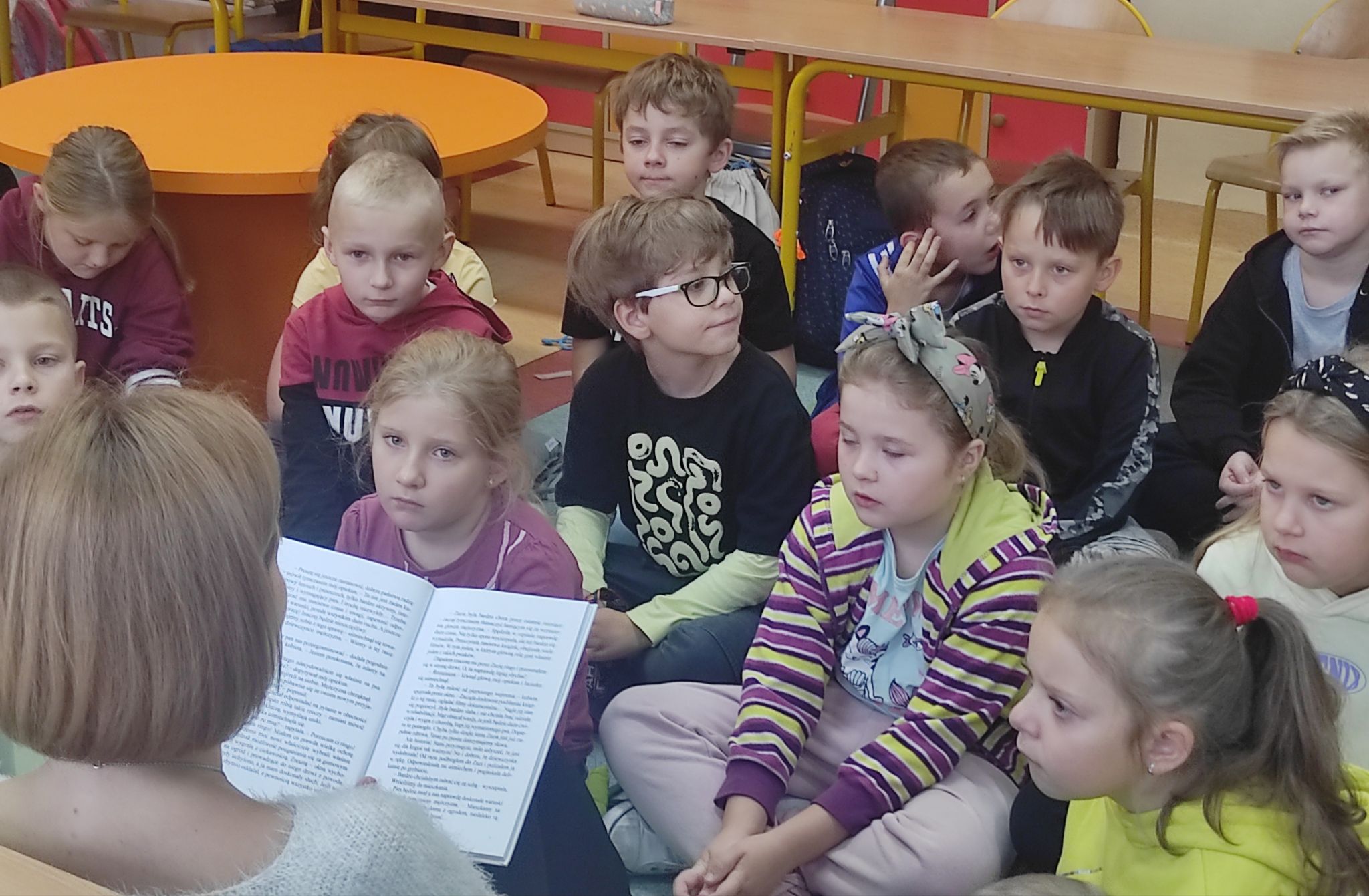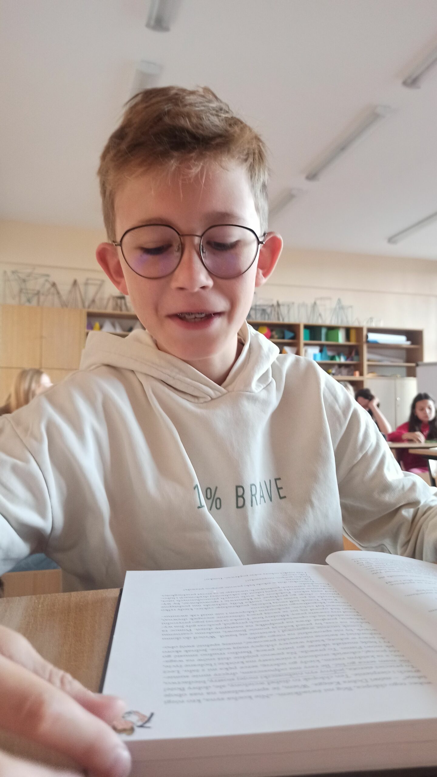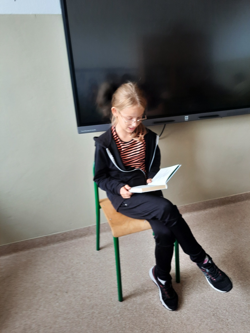 W klasie 2a zaproszony rodzic interpretował drugą część najnowszej książki Waldemara Cichonia „Jeśli się zgadzasz, zaszczekaj dwukrotnie !”. Polecamy tę książkę młodszym dzieciom. Fragmenty ulubionej literatury przedstawili uczniowie klasy 3 c. Natomiast z biografią Roberta Lewandowskiego zapoznawali się uczniowie klasy 4a. Klasa 5a zaciekawiła się literaturą klasyczną „Ania z Zielonego Wzgórza” Lucy Montgomery, a 5b zgłębiała fantastyczne przygody w książce „Srebrny chłopiec” Kristina Ohlssona.